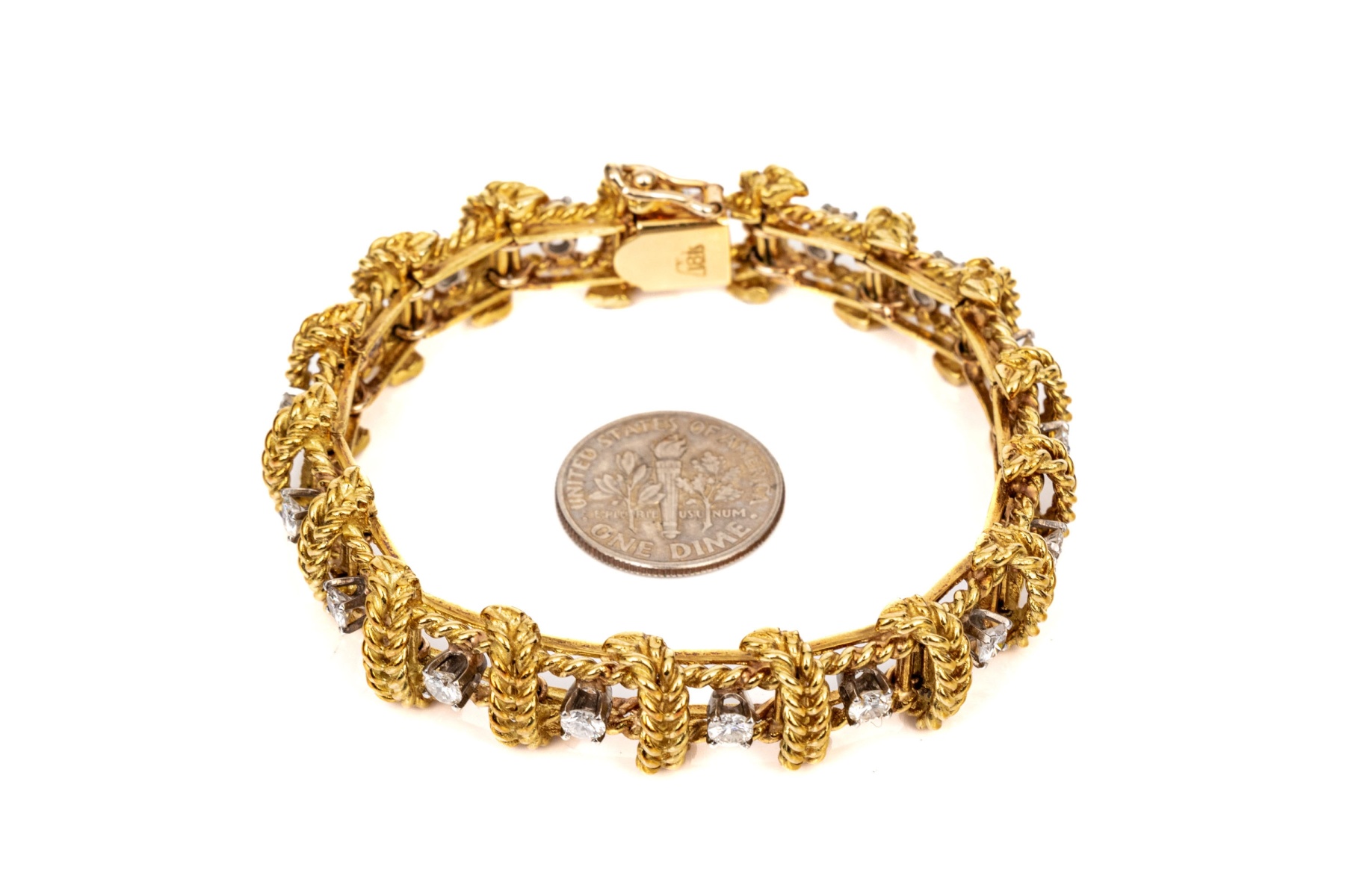 18k Yellow Gold Stunning Vintage Diamond Set Rope Motif Bracelet, App. 2.38 TCW #448909. Black Rock Galleries provides high end estate liquidation services through online estate auctions and a 50,000 sq ft designer showroom. estate liquidator, estate sale, online auction, antiques, fine art, liquidation, clean outs, auction, consignment, interior design, fine jewelry, collectibles, appraisals, estate appraisals, estate services, decor, furniture, furniture consignment, antique center, consignment shop. We offer appraisal services and specialize in fine art, jewelry, antiques and decorative arts. Sell with us. Black Rock Galleries is the tri-state's largest estate liquidator serving New England and the greater New York City area. We are the trusted source for expert appraisals, auction services, estate sales, and consignments. Black Rock Galleries is the east coast's largest and most trusted estate liquidator, with locations in Connecticut, greater Boston, MA and Raleigh, NC, Fairfield, Southport, Apex, TX. We are the best source for expert appraisals, auction services, estate sales and consignments. We have served thousands of families and estates with compassion, professionalism and expertise. BRG works with attorneys, executors, realtors and families to bring the greatest return on personal and estate property in the current market. Our unique combination of services make us the easy choice to get the job done in a timely and stress-free manner. We are with you from the initial consultation to the final clean out. Our house-built online auction software platform offers clients a dynamic approach to liquidating their personal property. This venue is most successful in bringing the best return with the least amount of disruption for our clients. See our services page for a complete description of this offering. 18k Yellow Gold Stunning Vintage Diamond Set Rope Motif Bracelet, App. 2.38 TCW #448909