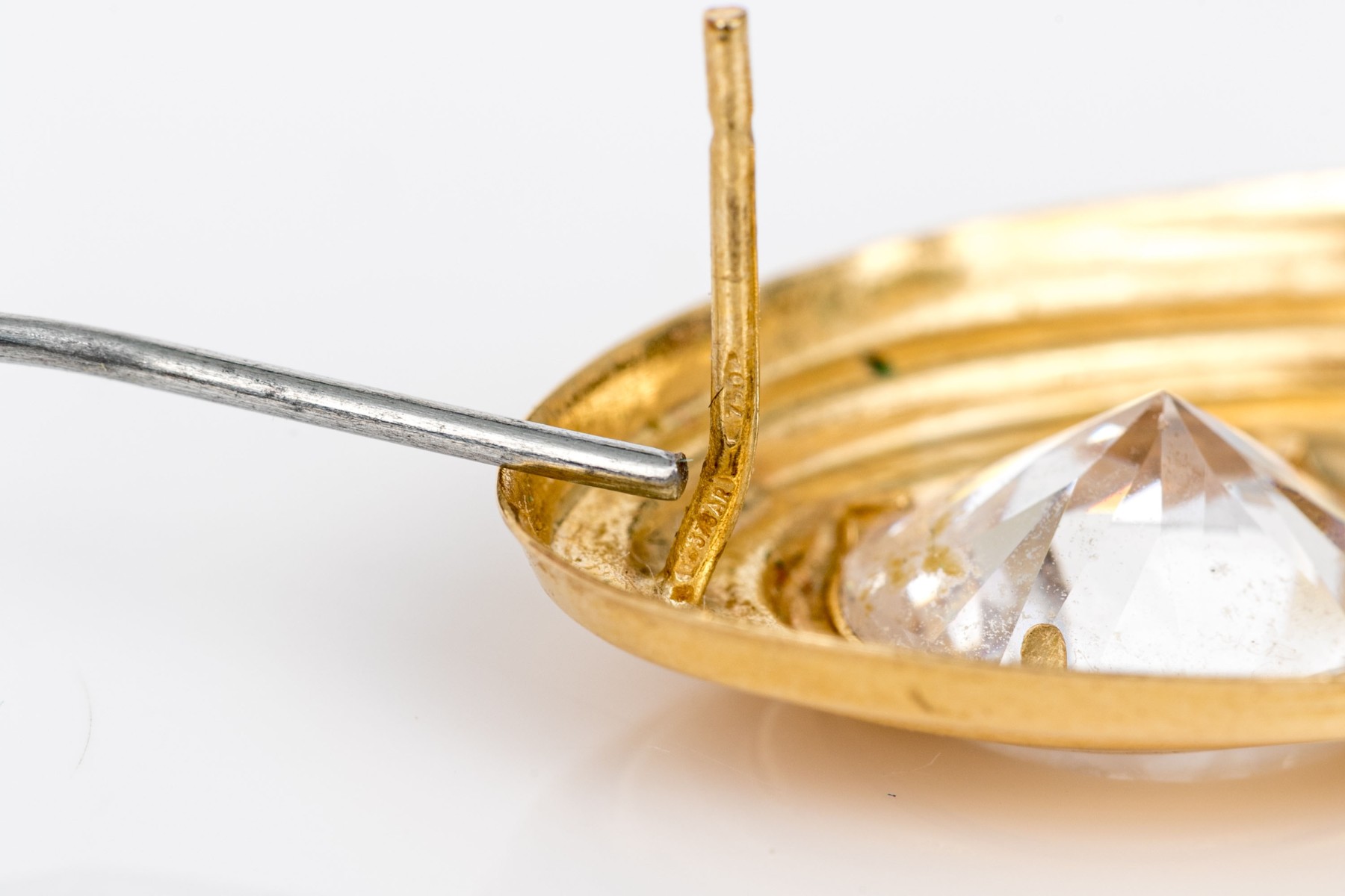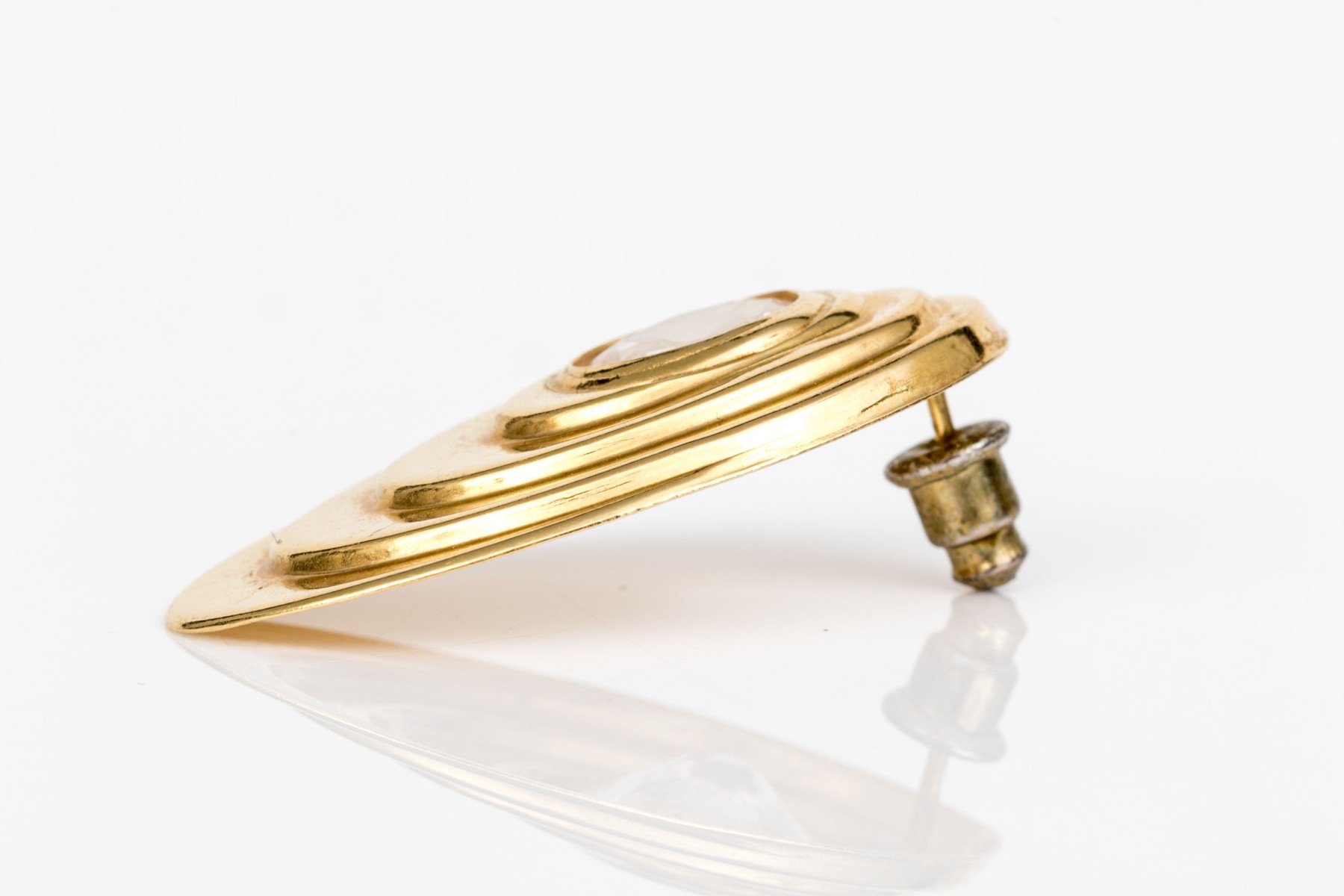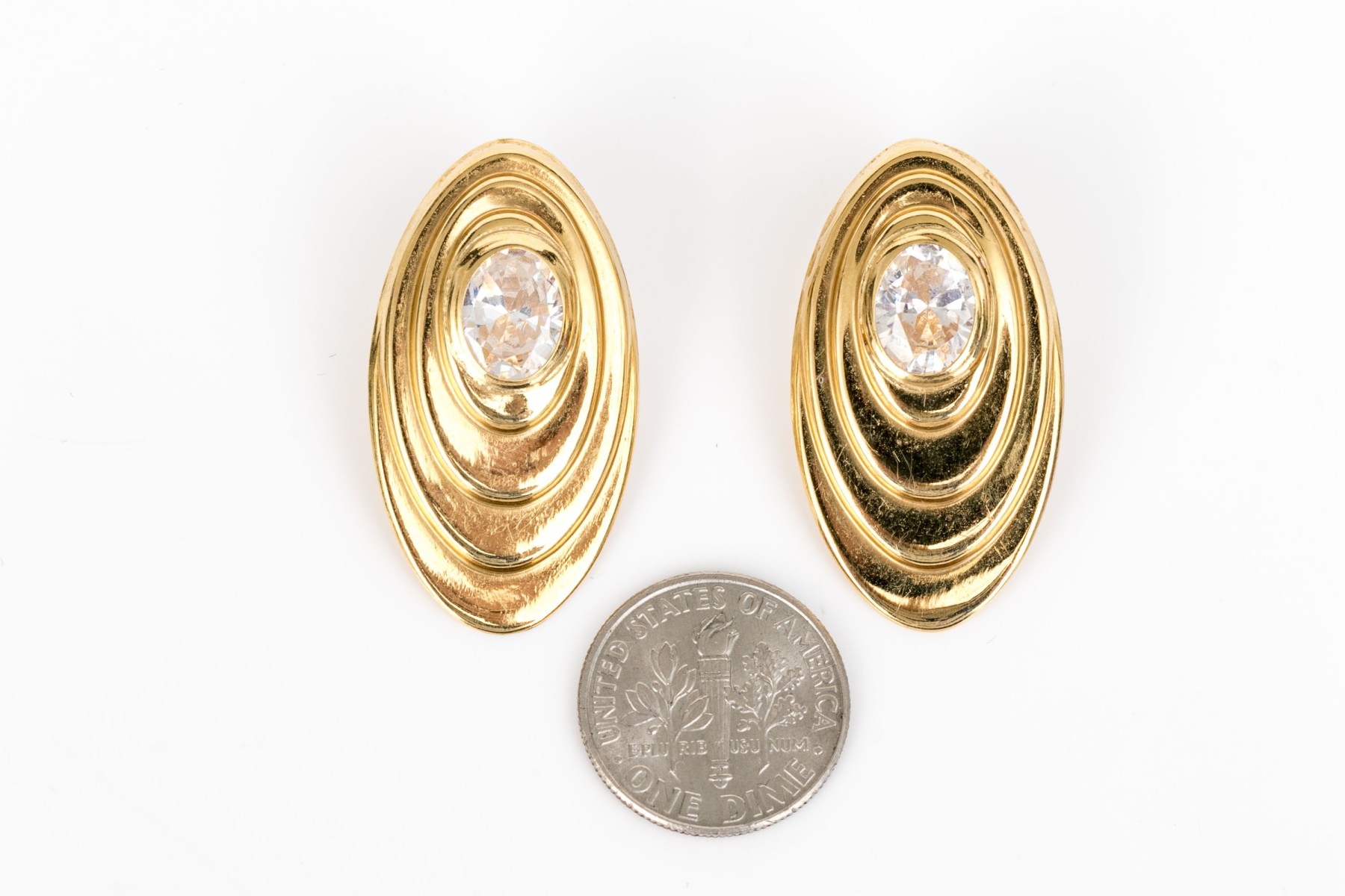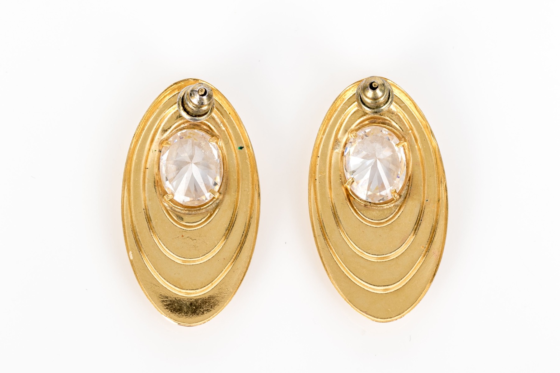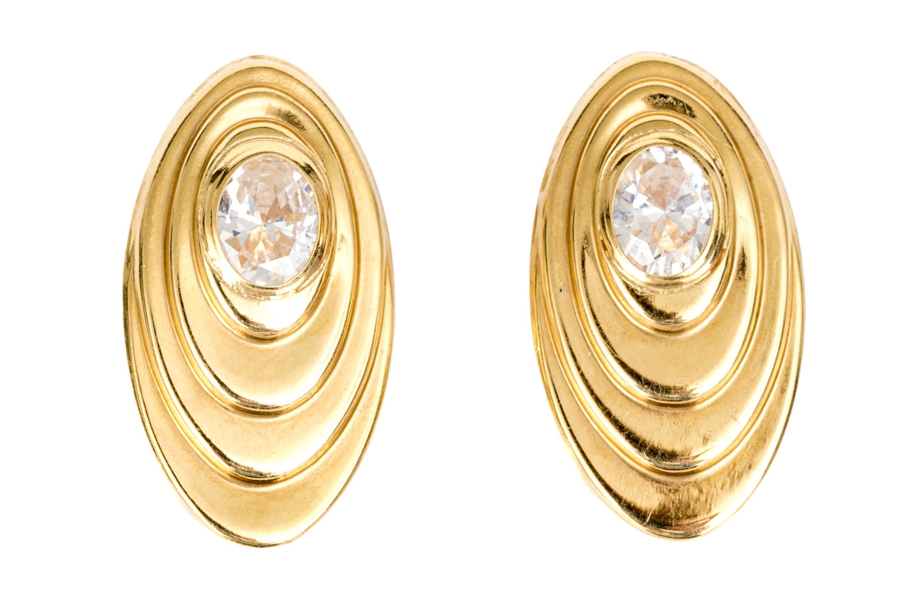 18k yellow gold vintage large oval cz set stepped earrings, finished with posts and steel clutch style backs