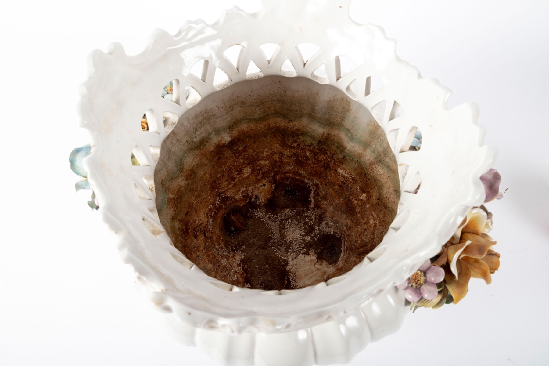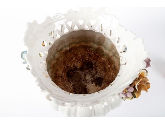 Ceramic flower decorations are partially chipped in multiple areas. Overall in good condition.