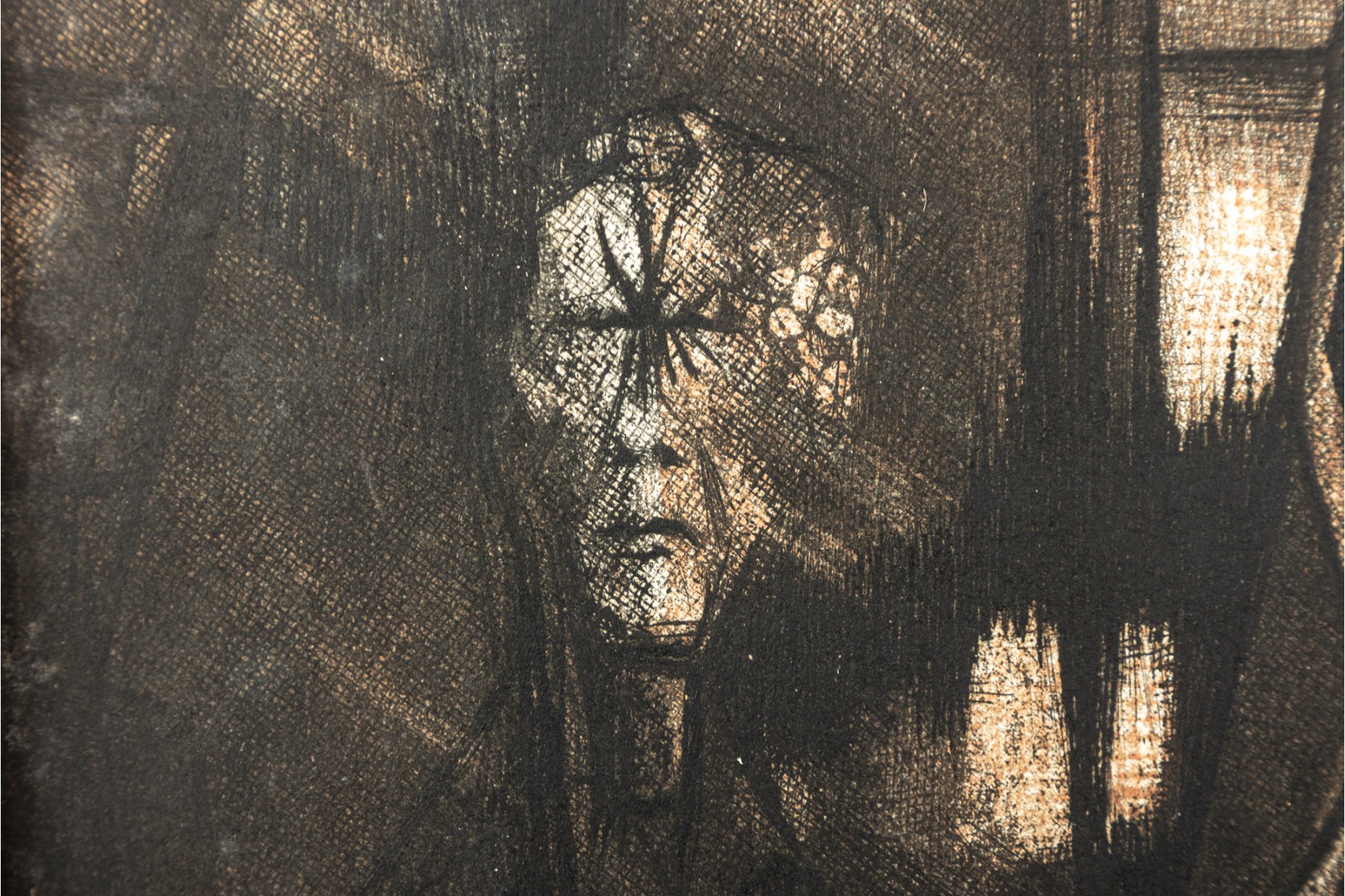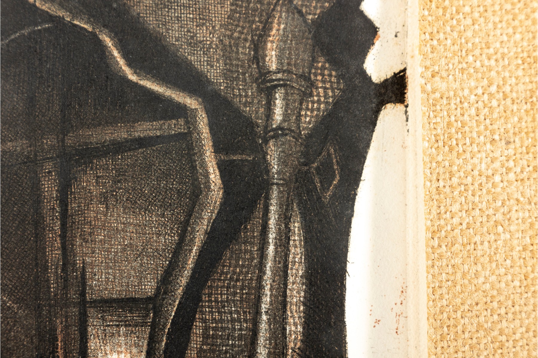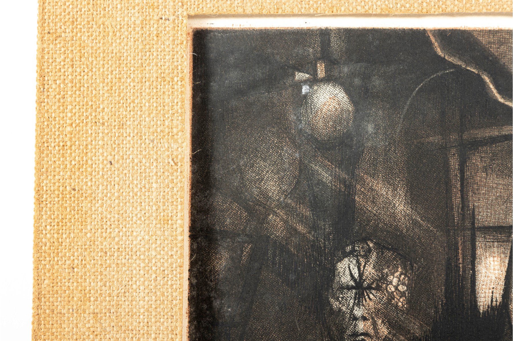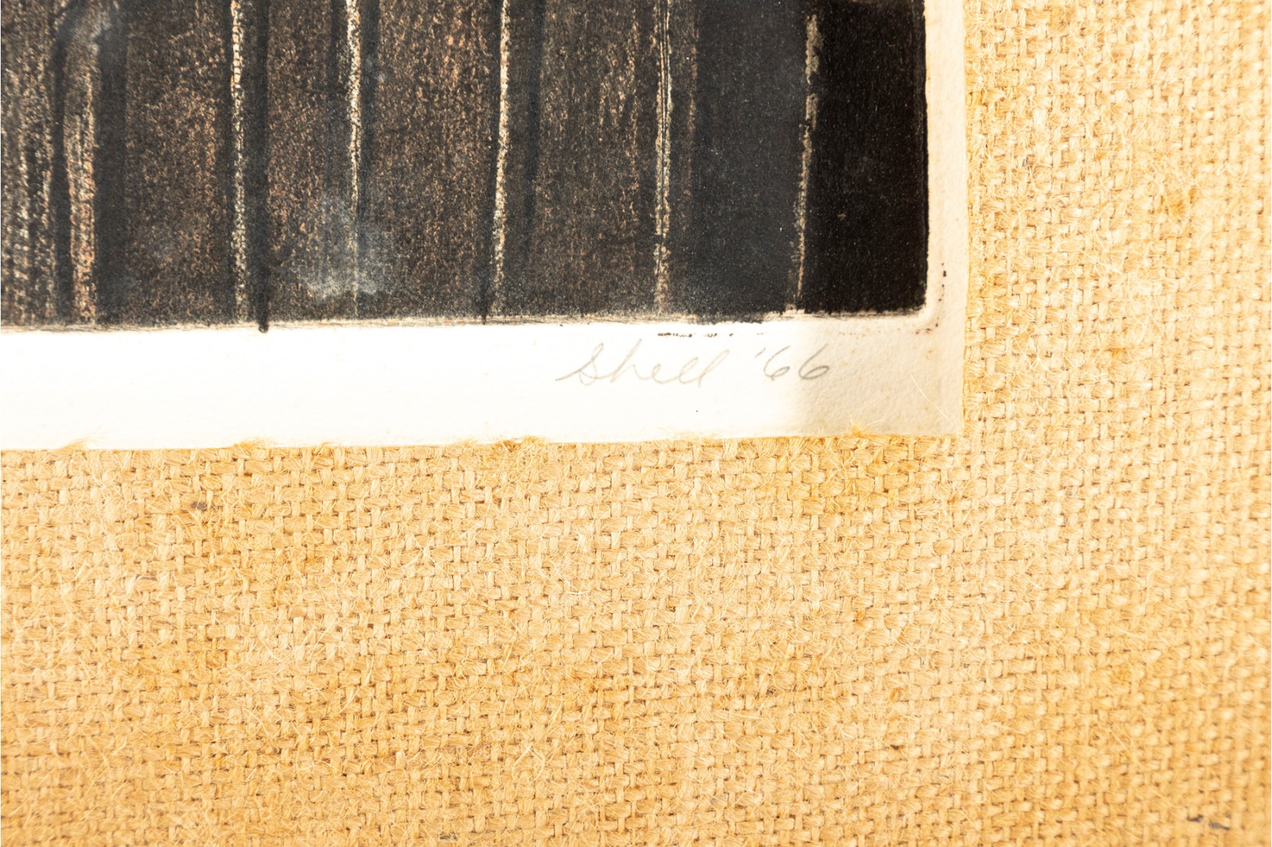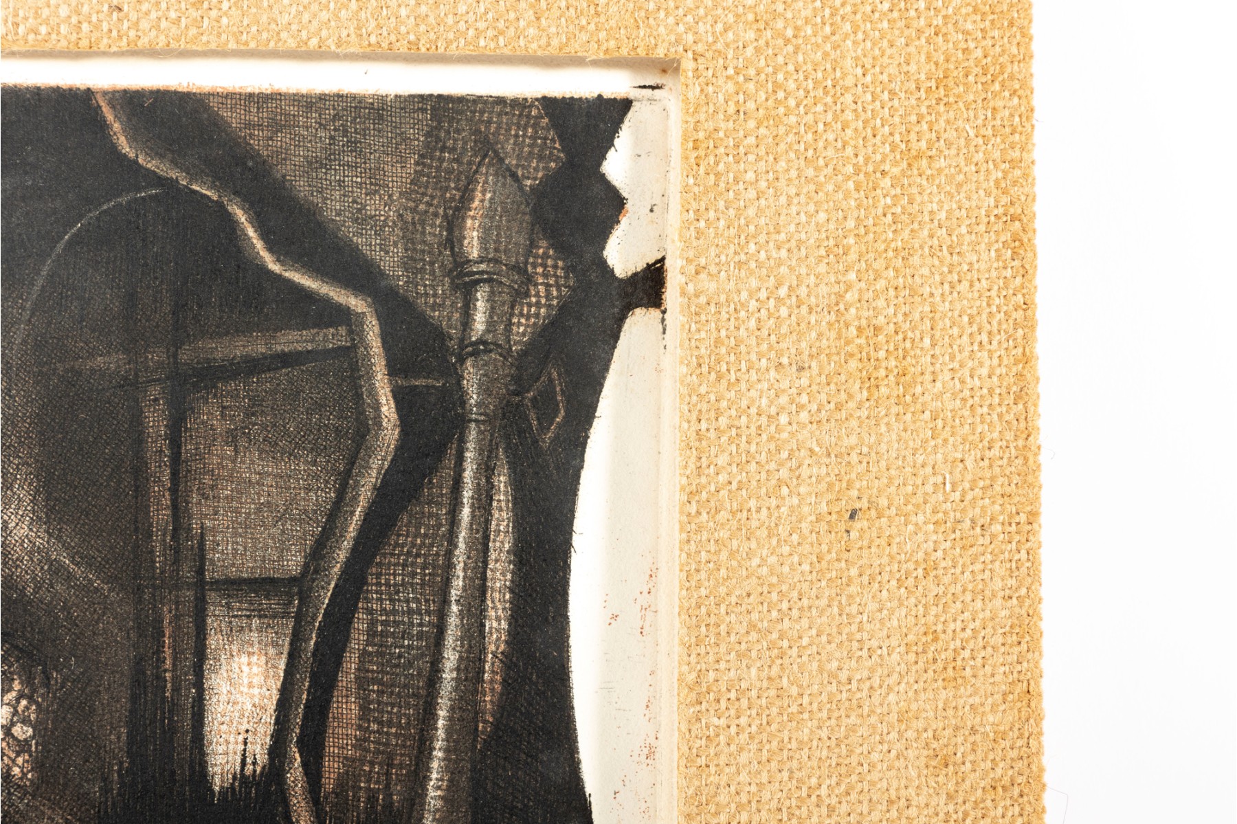 A lithograph print of James Shell's "I am Thy Bold Believer" -- 1966, numbered 2 / 8. Signed and titled in graphite on lower half. The print is unframed with a burlap mat border.