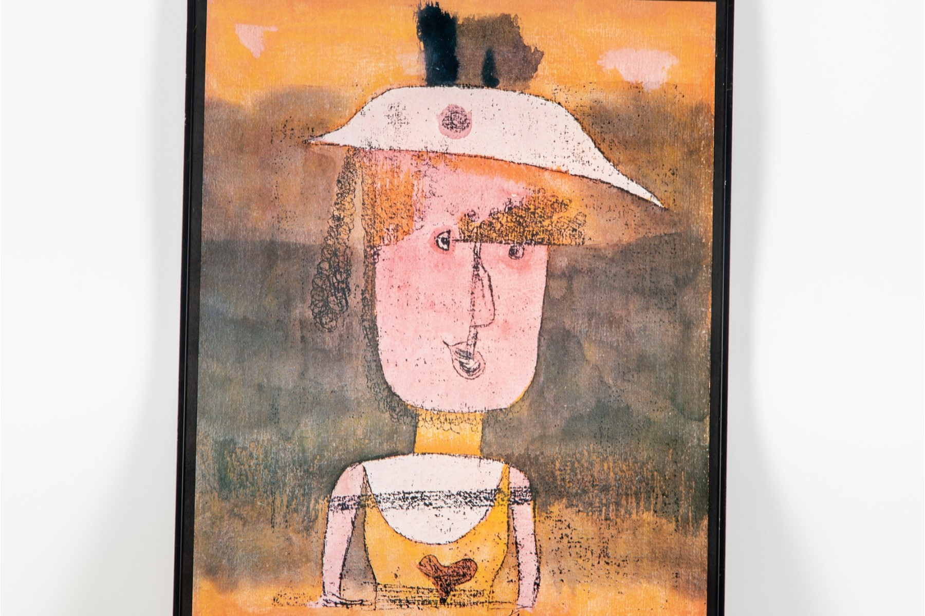 Exhibition poster from the 1974 Paul Klee show held in Paris, presented by the Peggy Guggenheim Foundation. Showcasing one of Klee’s iconic abstract compositions, the poster blends bold color blocks with whimsical, geometric forms to form a portrait.