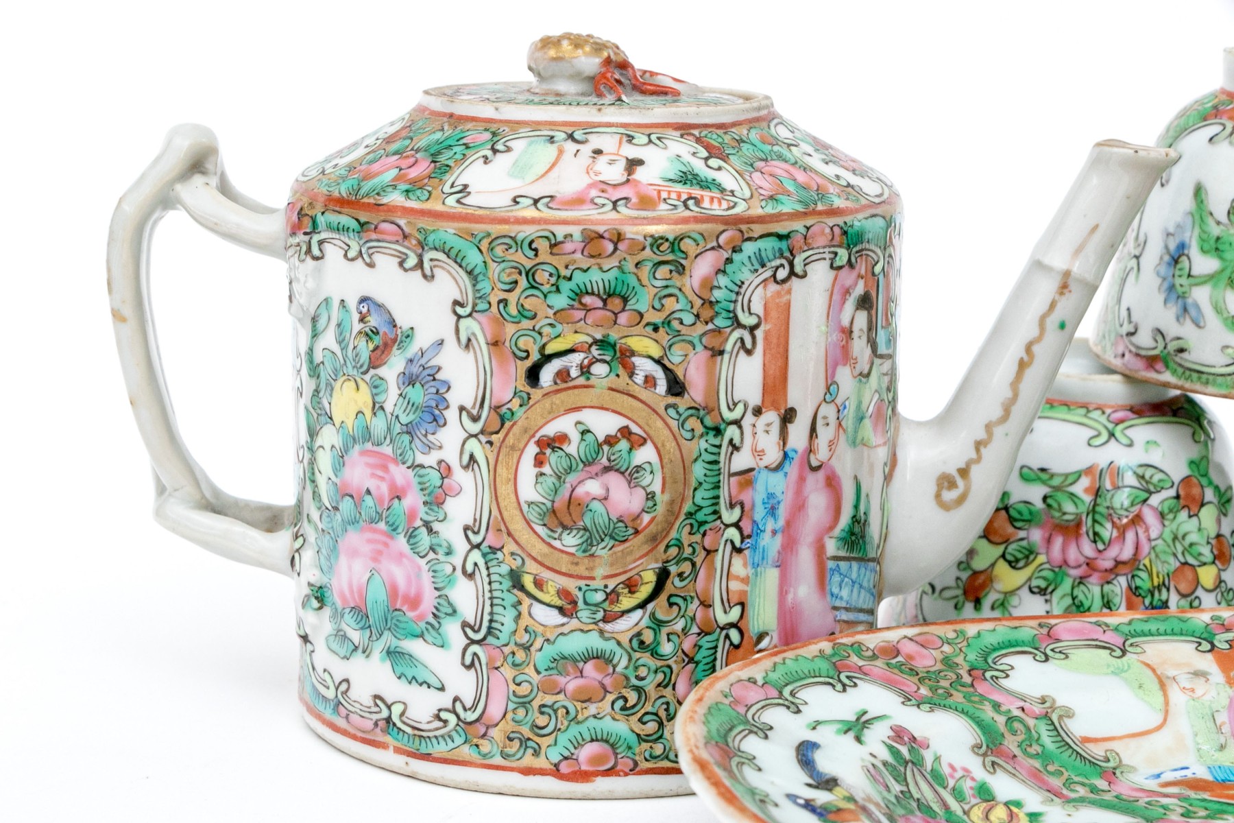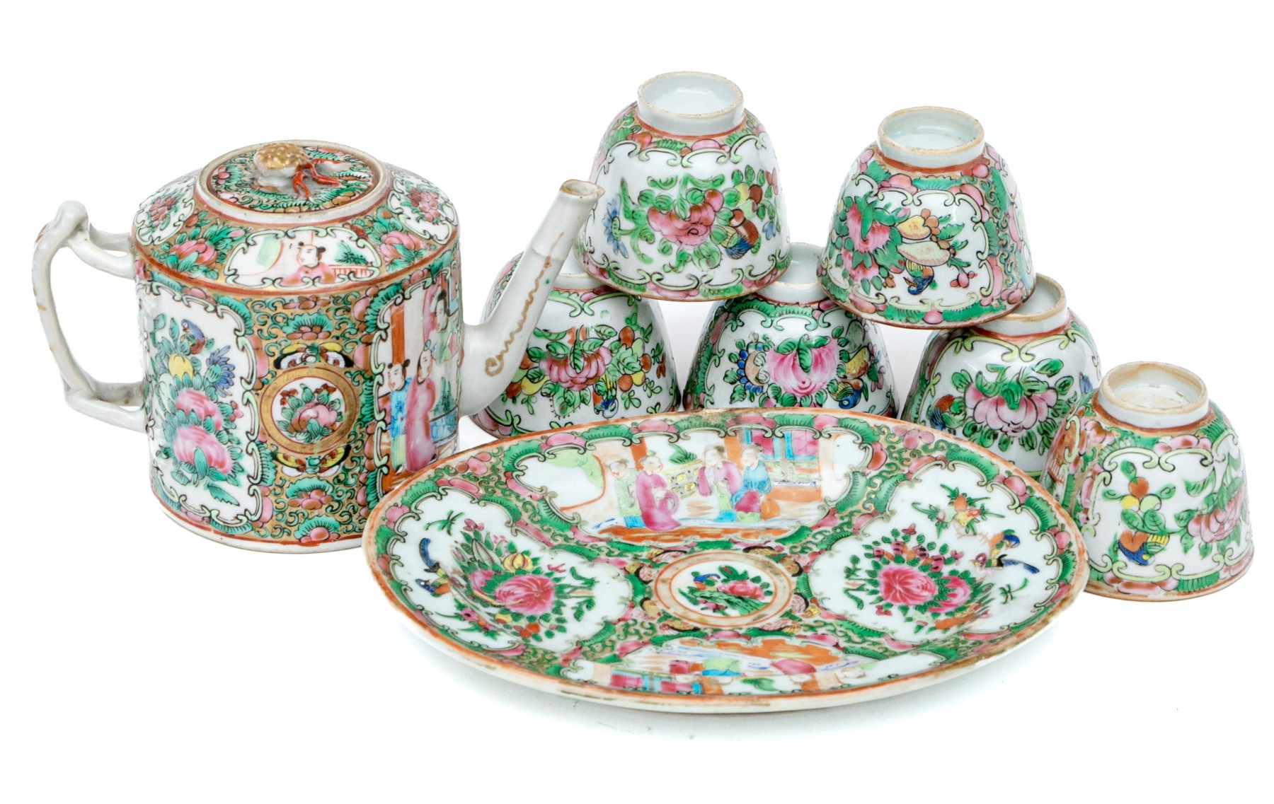 An antique 19th C. Chinese export famille rose medallion assembled tea set, circa 1840.