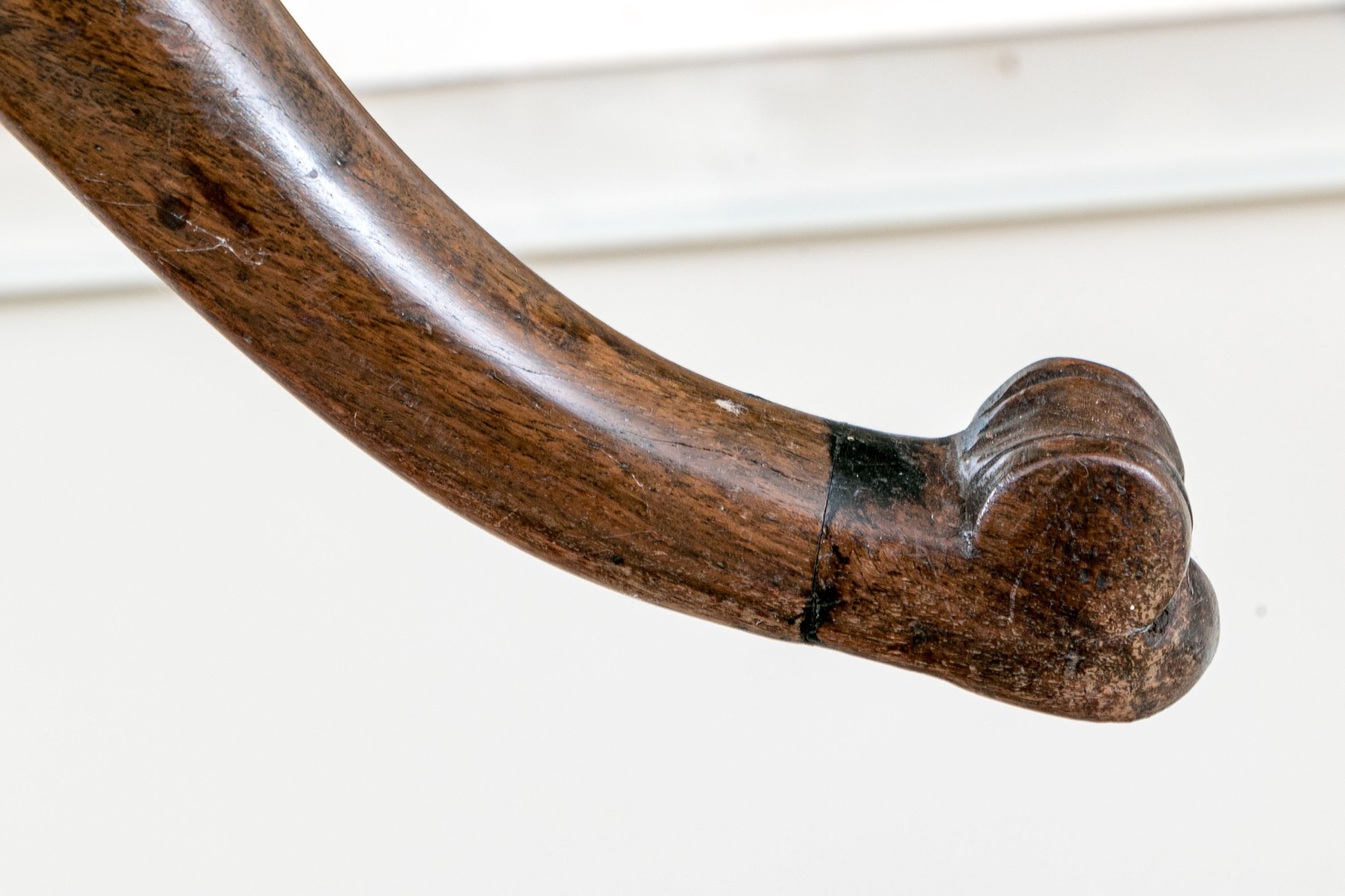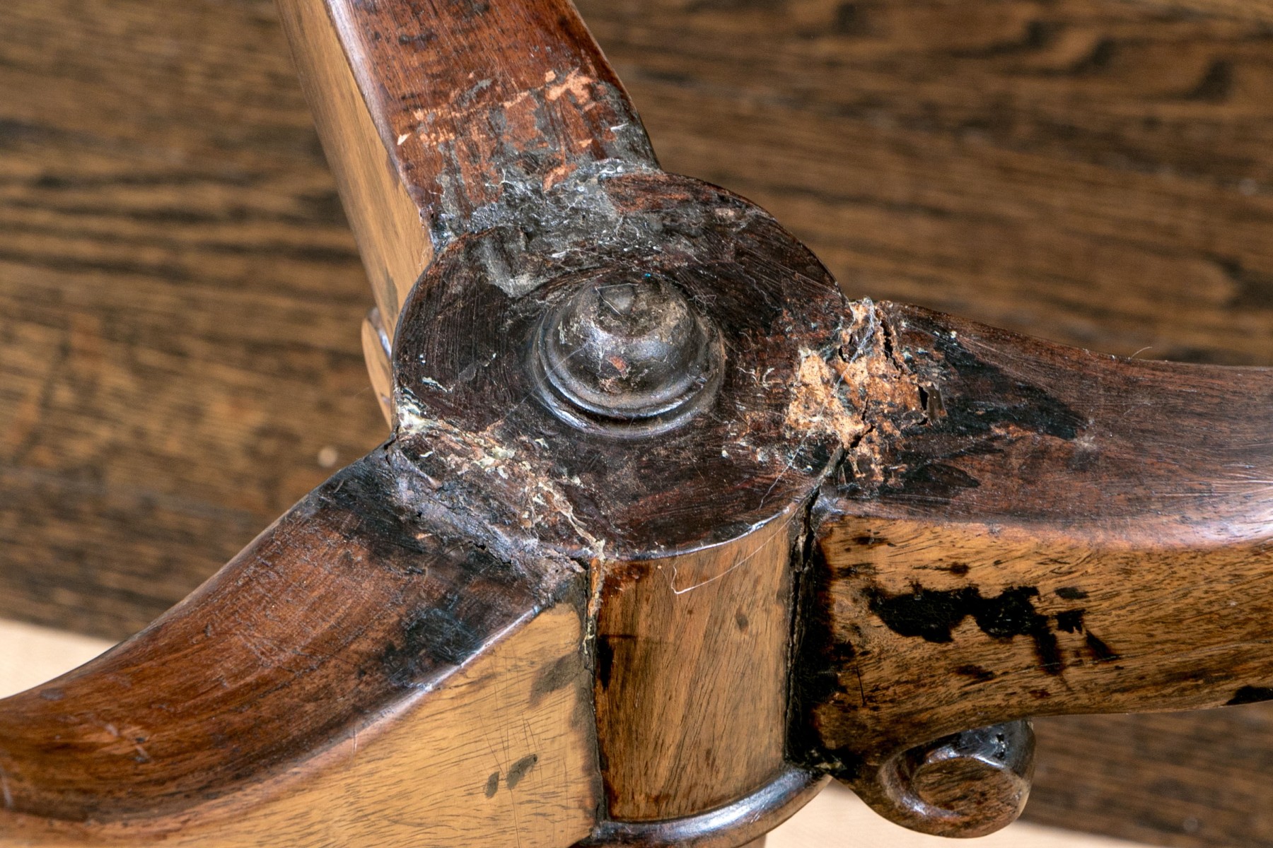 Has been repaired leans to one side, heavily sun struck and needs to be refinished. Additionally the feet had been added onto and the seam can be seen just above the foot.