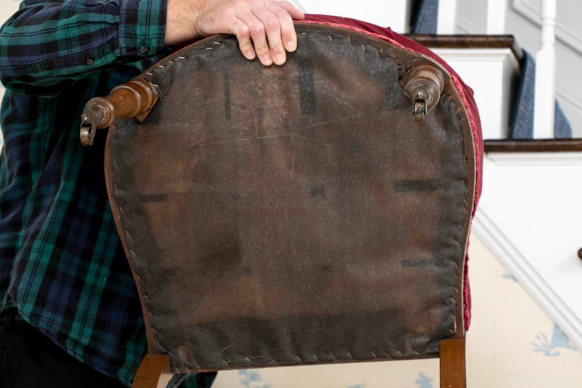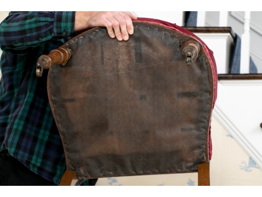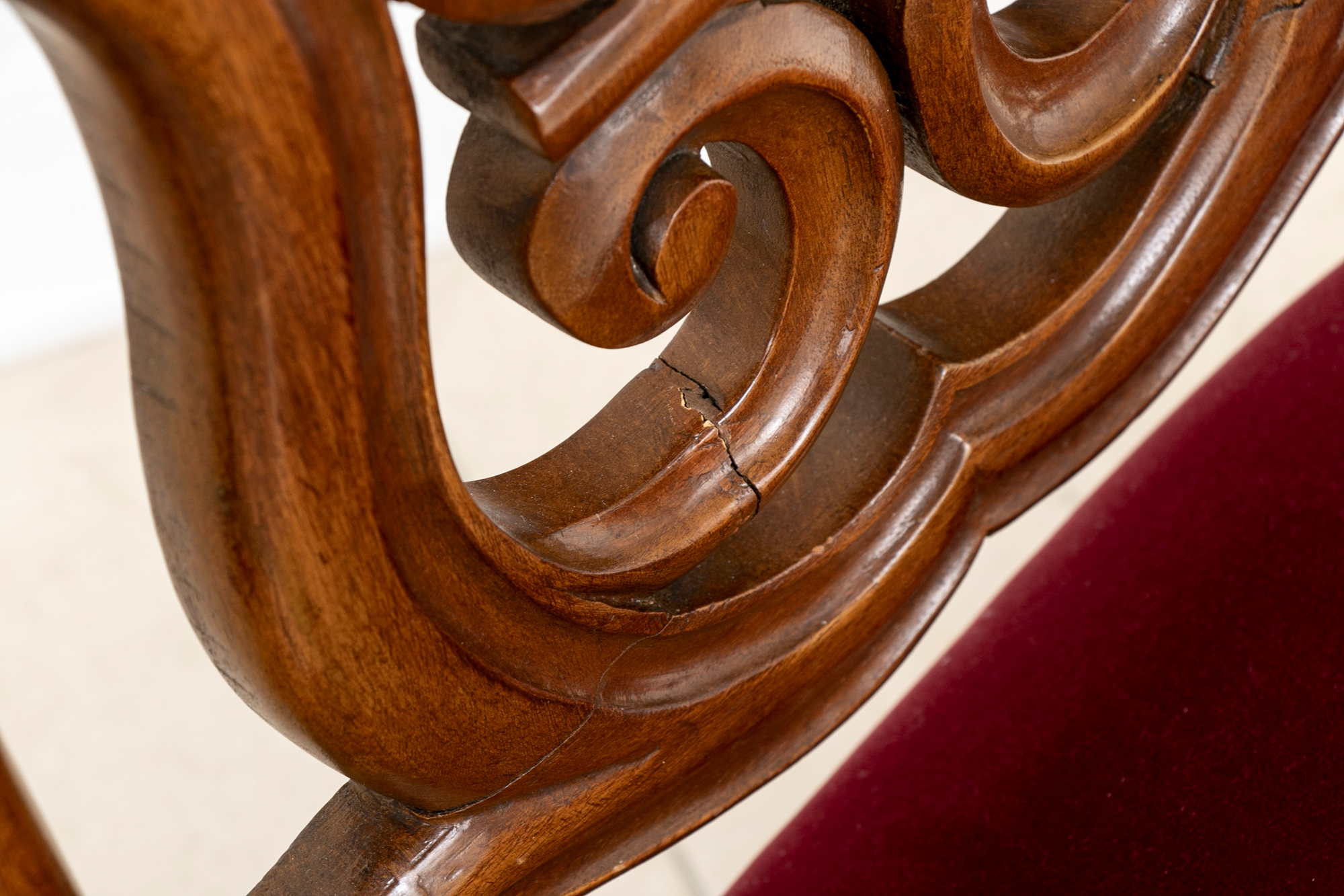 Condition: crack to one lower scroll, one spot on the seat, otherwise good