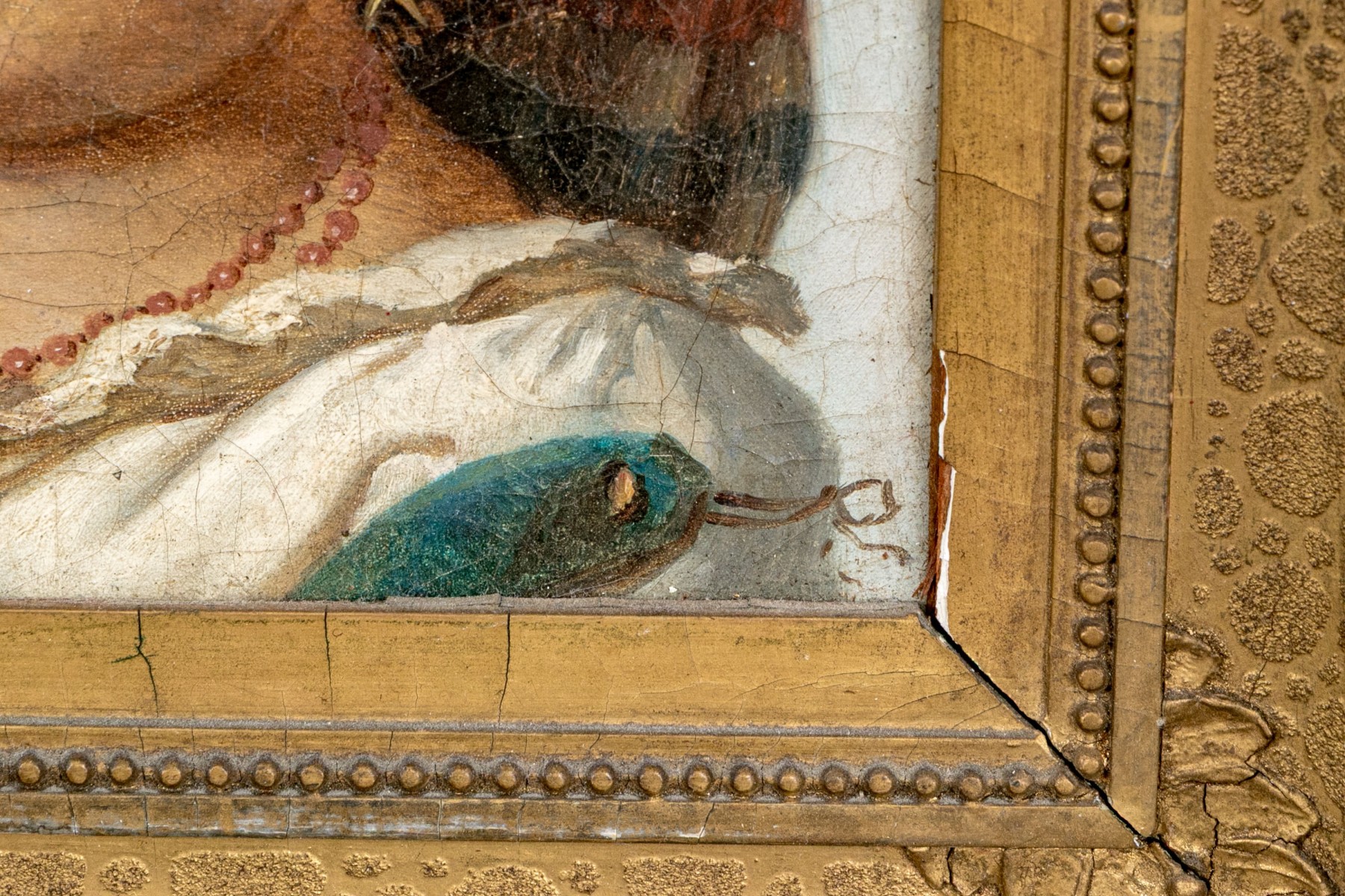 Craquelure and wear with losses to the gilt and gesso finish on frame commensurate with age. Overall presents well.