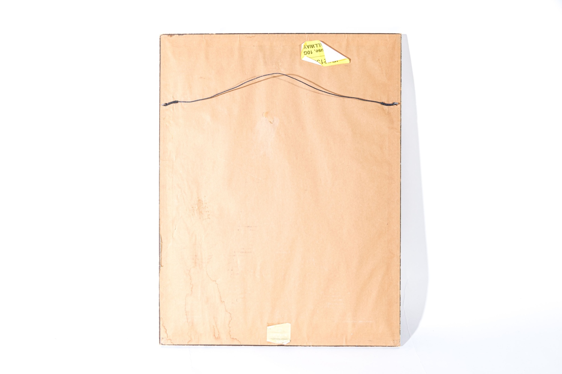 Foxing spots throughout; water damage to the upper right corner; losses to the finish on frame. *Please note: Items may not include all original parts or accessories. Some screws, brackets, hardware, assemblies may be missing.