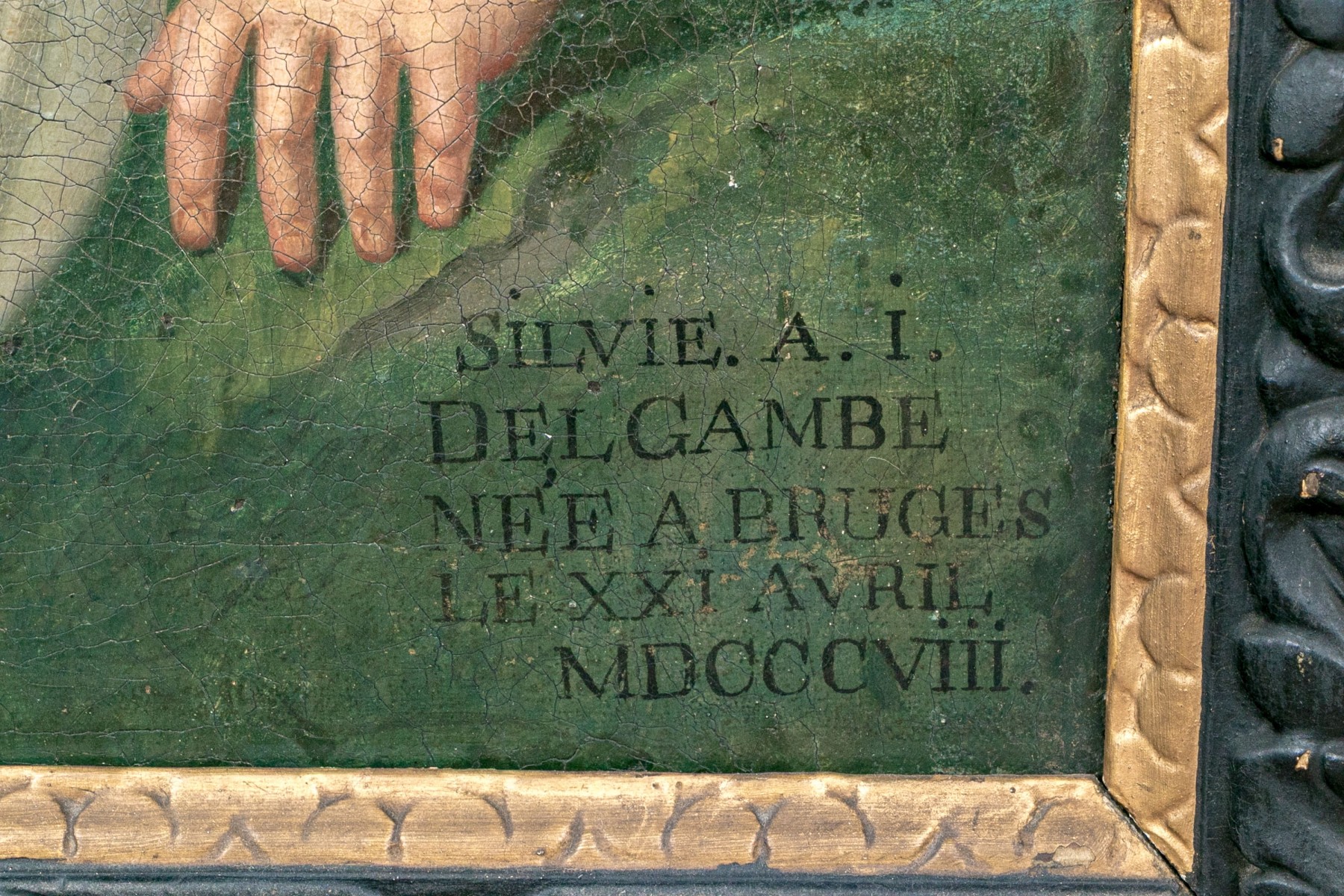 Marked lower right "Silvie. A. I. Delgambe Nee A Bruges Le XII Avril MDCCCVIII." (Silvie A.I. Delgambe born in Bruges, April 1808) and appearing to be very faintly signed to the left of the inscription.