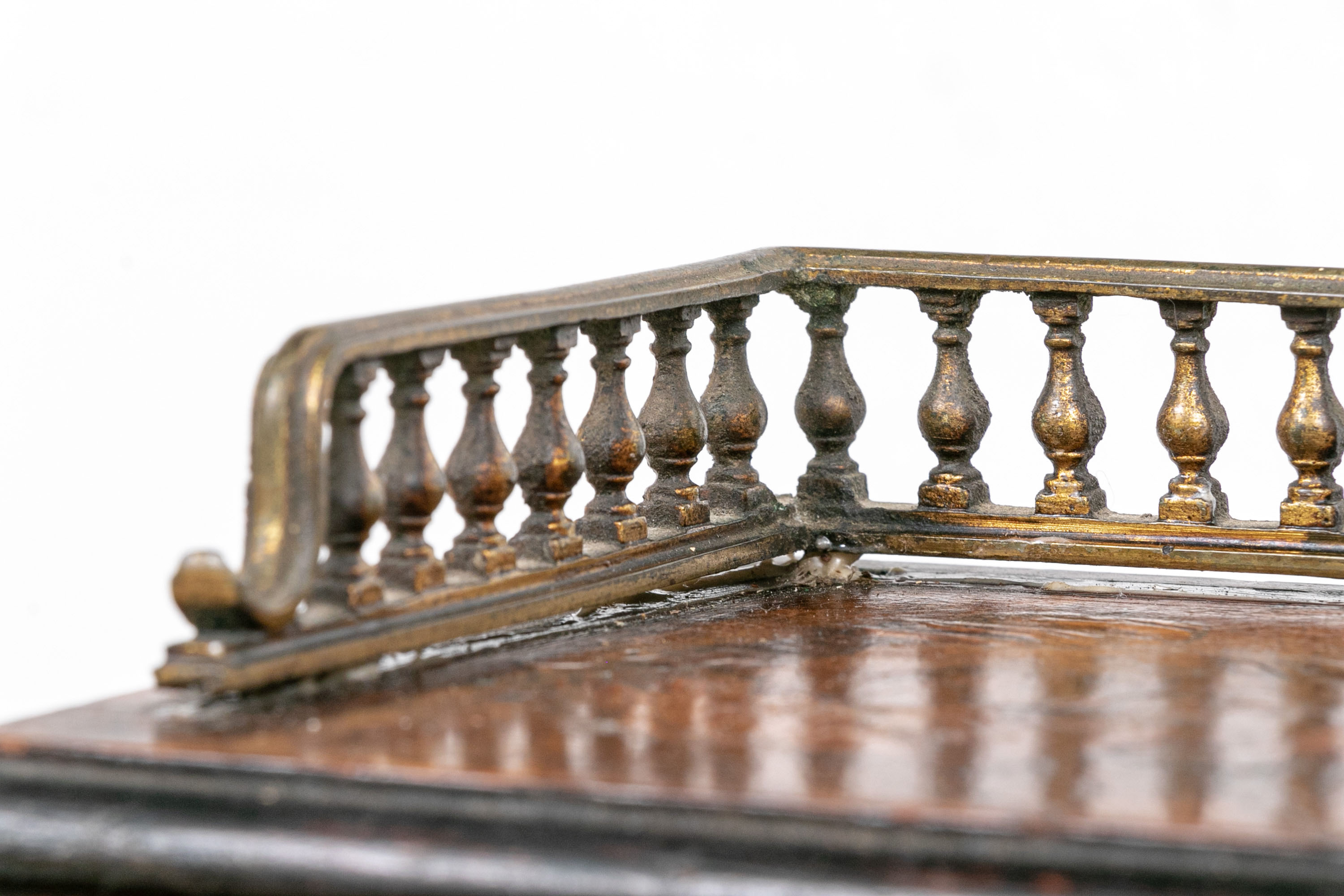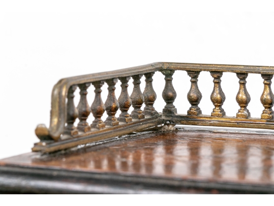 Condition: Please see all detail photos. There is a well-worn top with old stains, time- worn casters, expected nicks, slight chips , scratches and tarnished brass, all of which do not detract from the authentic and fine presentation.