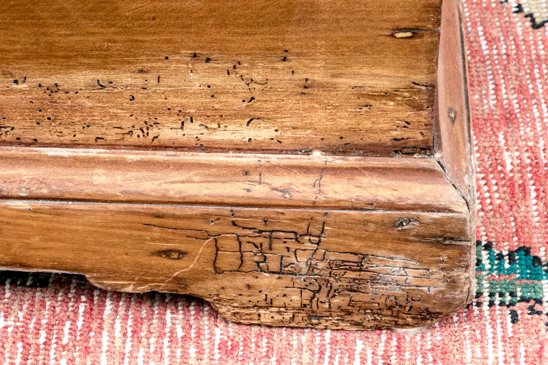 Chip to front of open shelf, wear to the wooden frame with some water staining to the top. Wear commensurate with age and use.