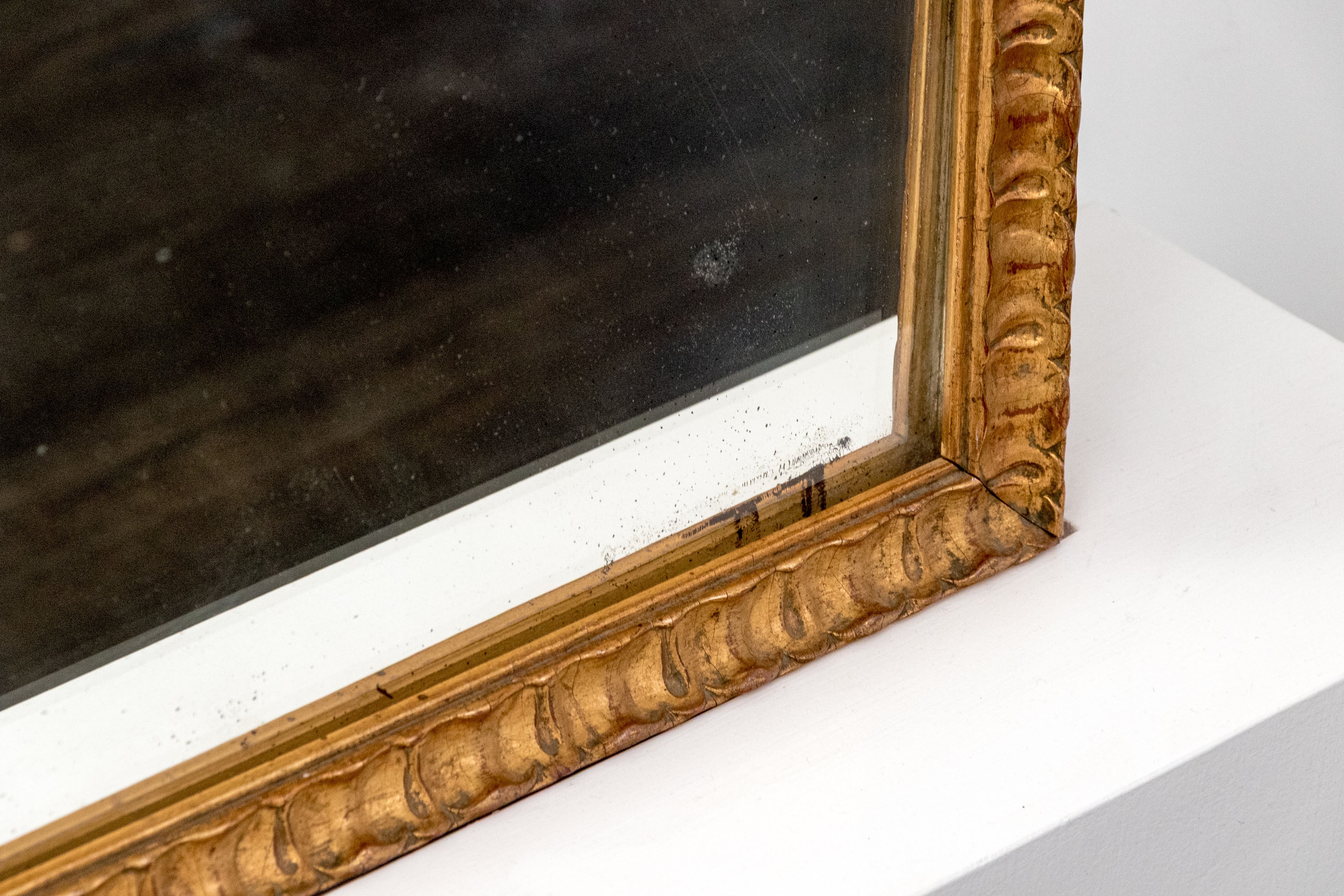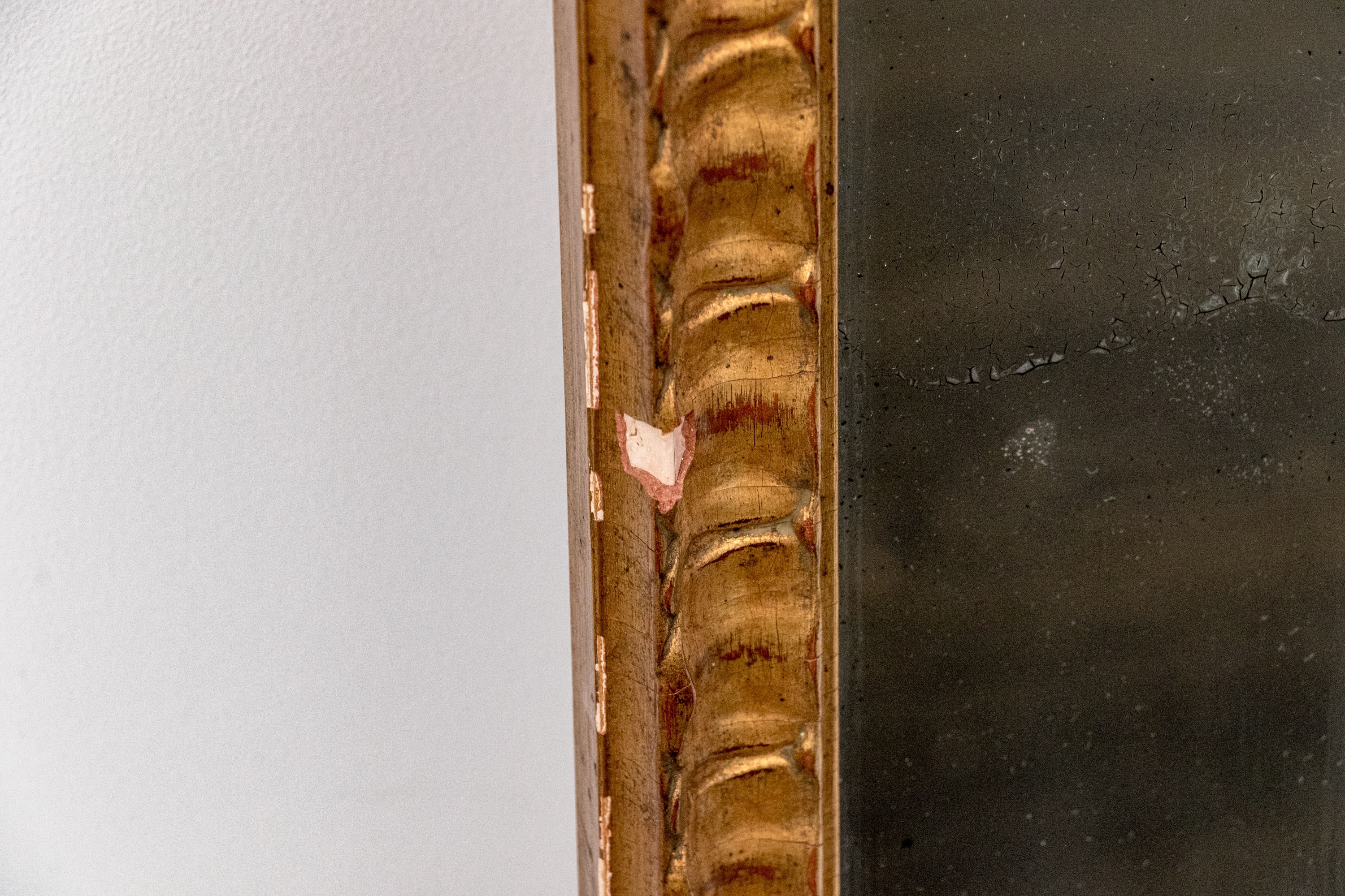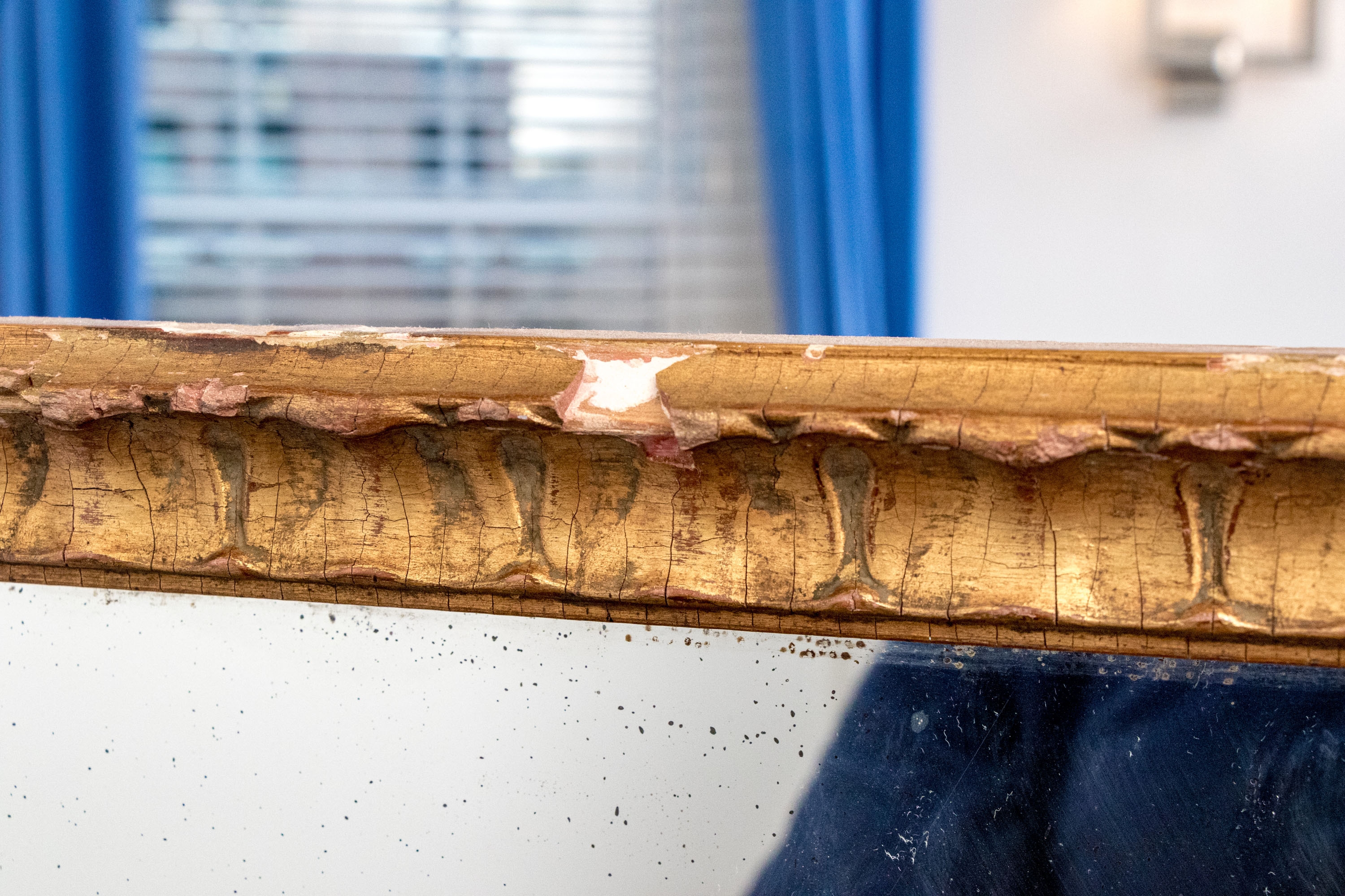 Finish wear and losses to the frame with somes scattered spots of desilvering to the mirror plate commensurate with age, but overall presents well.