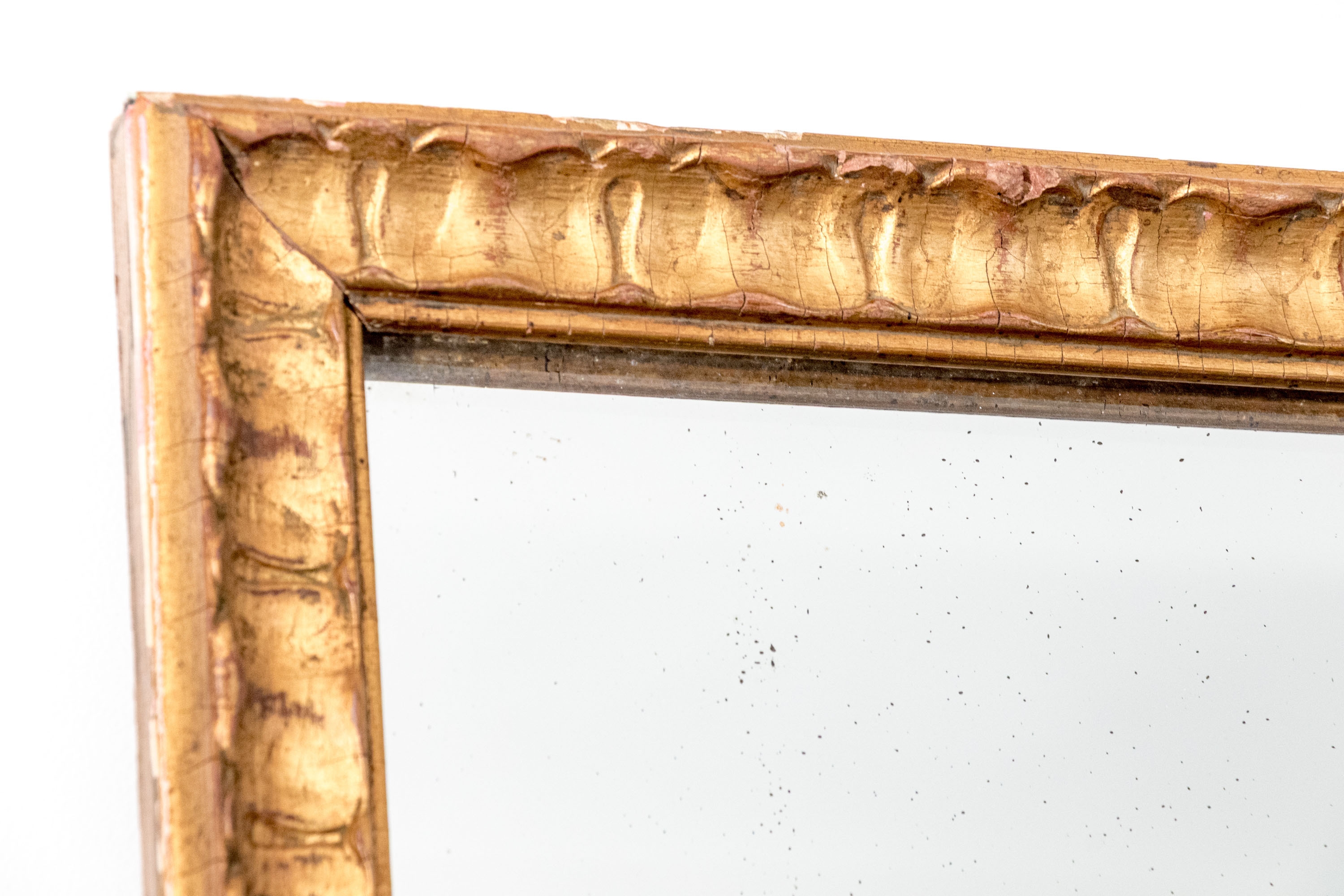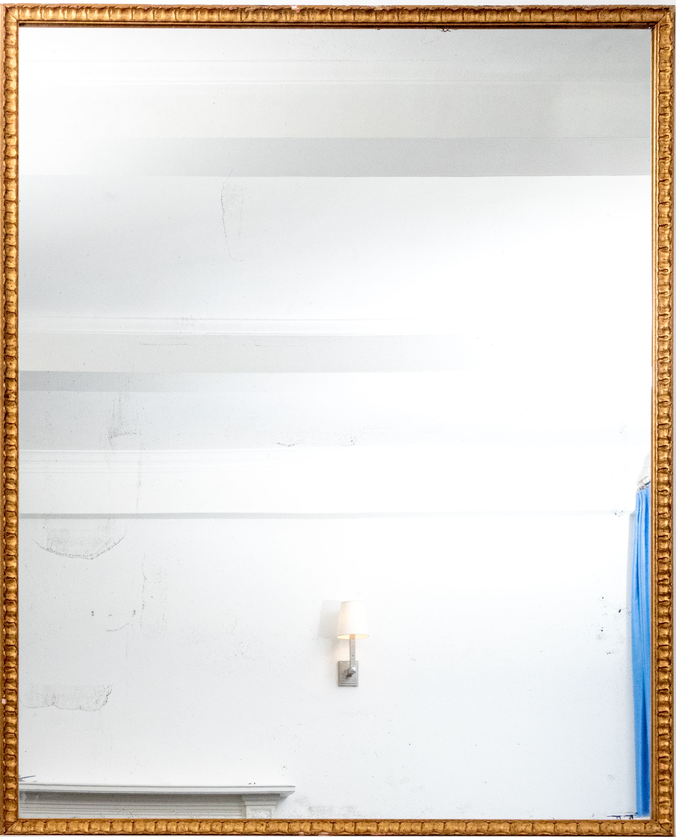A handsome 19th century rectangular mirror in a gilt wood and gesso frame carved with an elegantly petaled inner border.