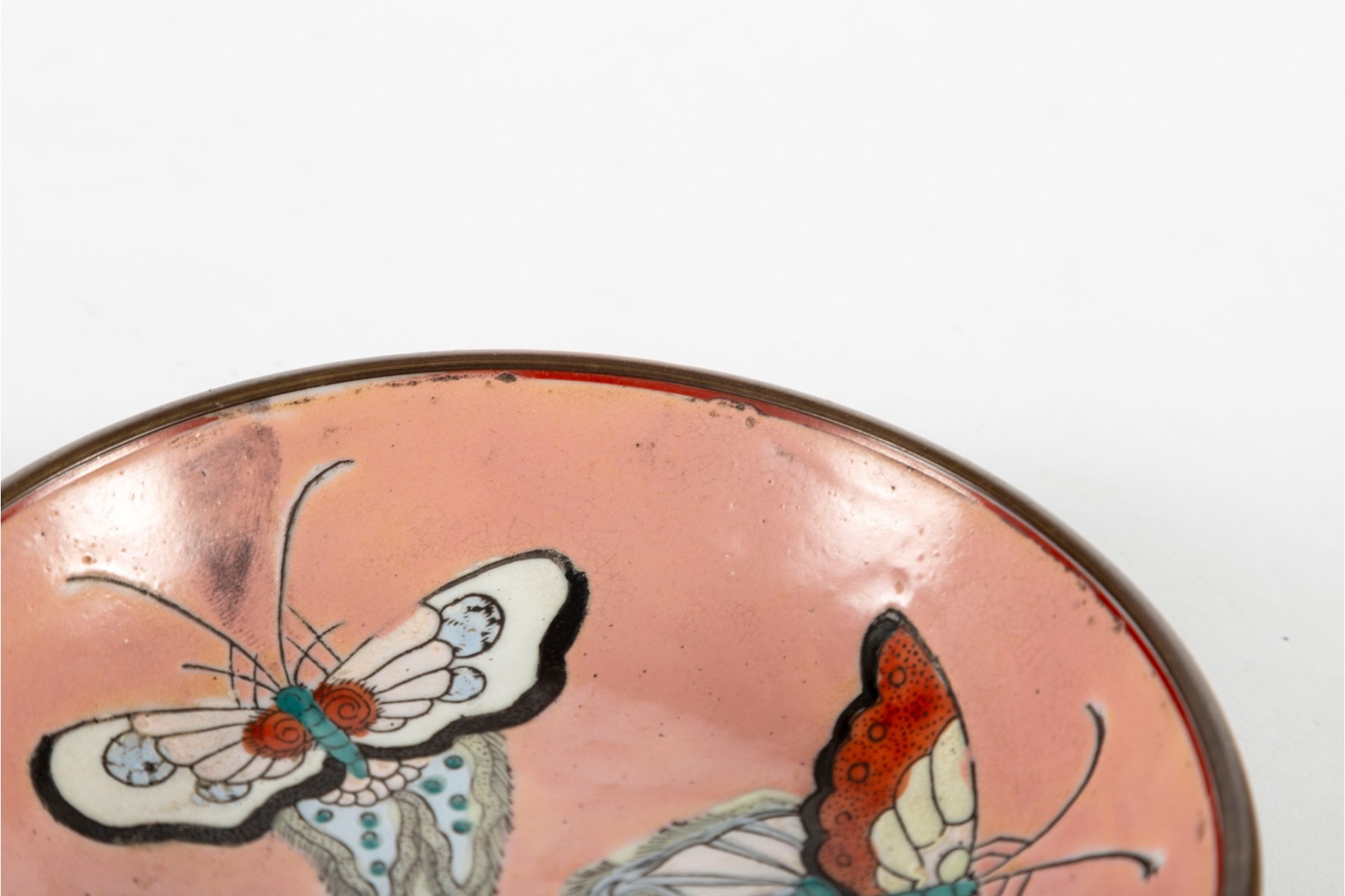 19th Century Chinese Brass Butterfly Enamelware Bowl — Tongzhi Period
