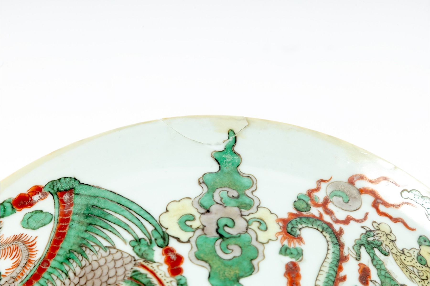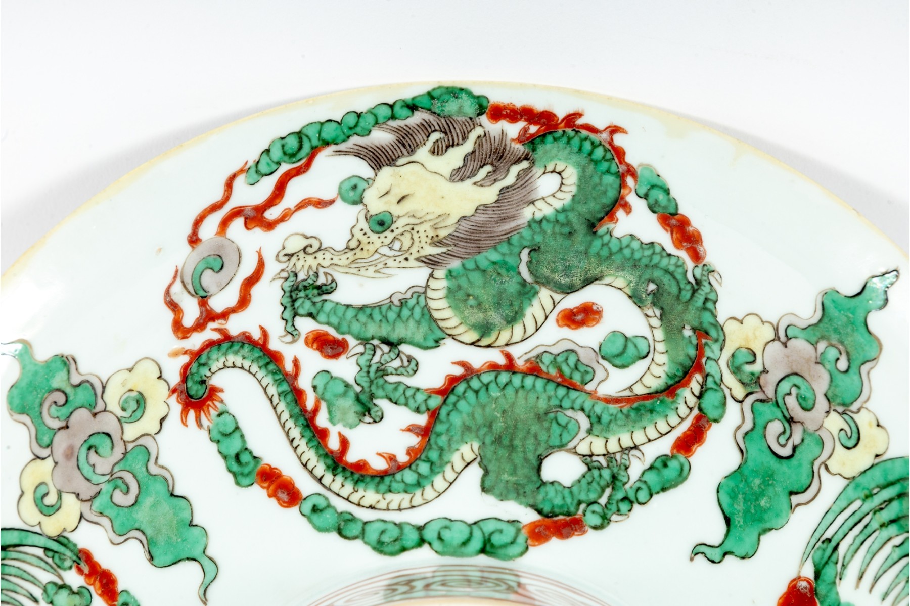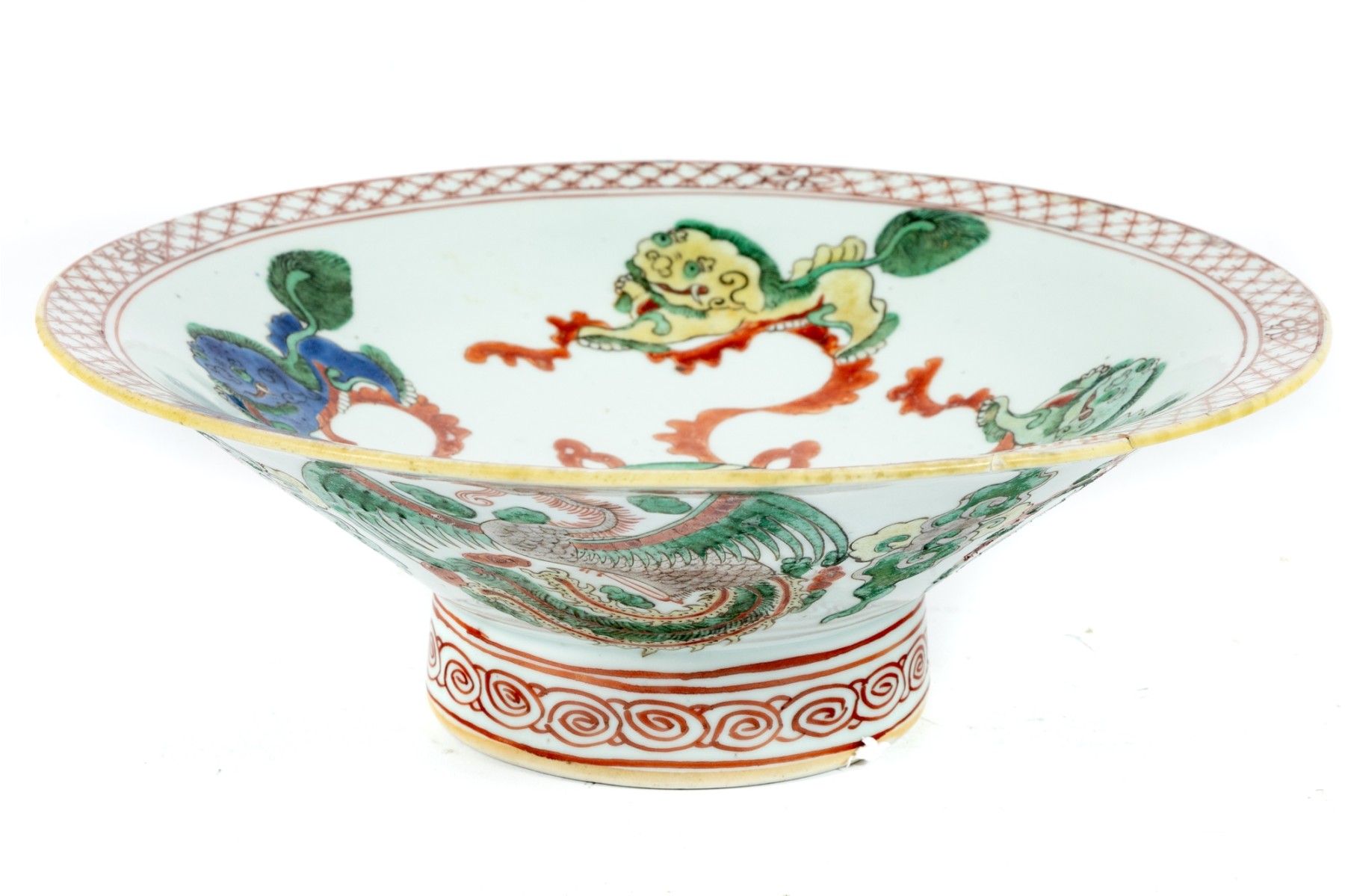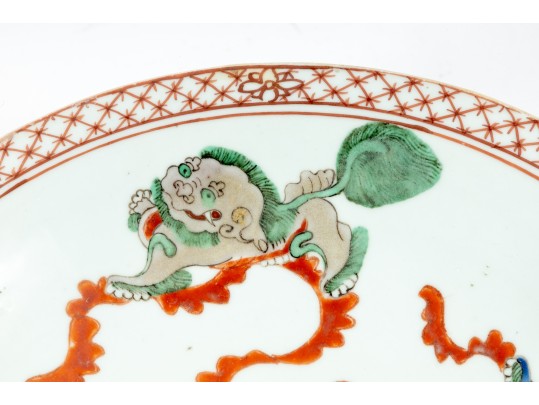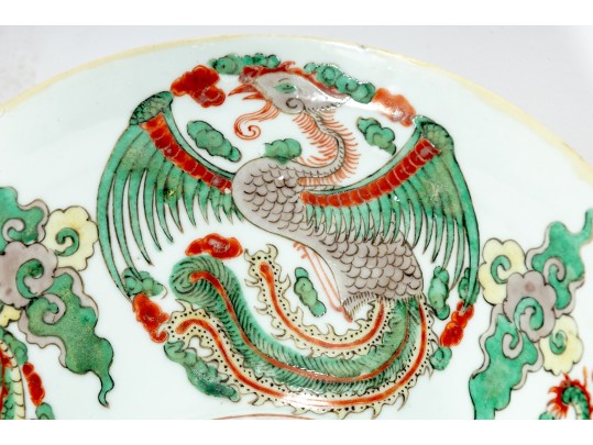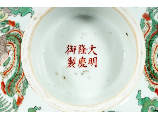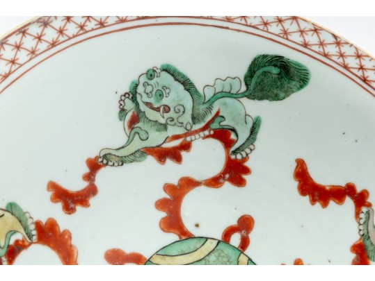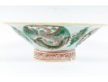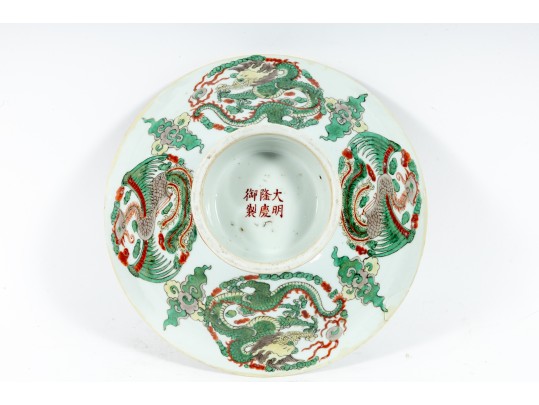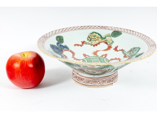 Featuring a "Qingming" bottom stamp, this 19th century porcelain high-footed dish/bowl was likely produced for the Qingming Festival, also known as "Tomb Sweeping Day" in which Chinese families visit the tombs of their ancestors to clean the gravesites and make ritual offerings to their ancestors -- Offerings which typically include traditional food dishes embellished with eastern dragons and guardian dogs.