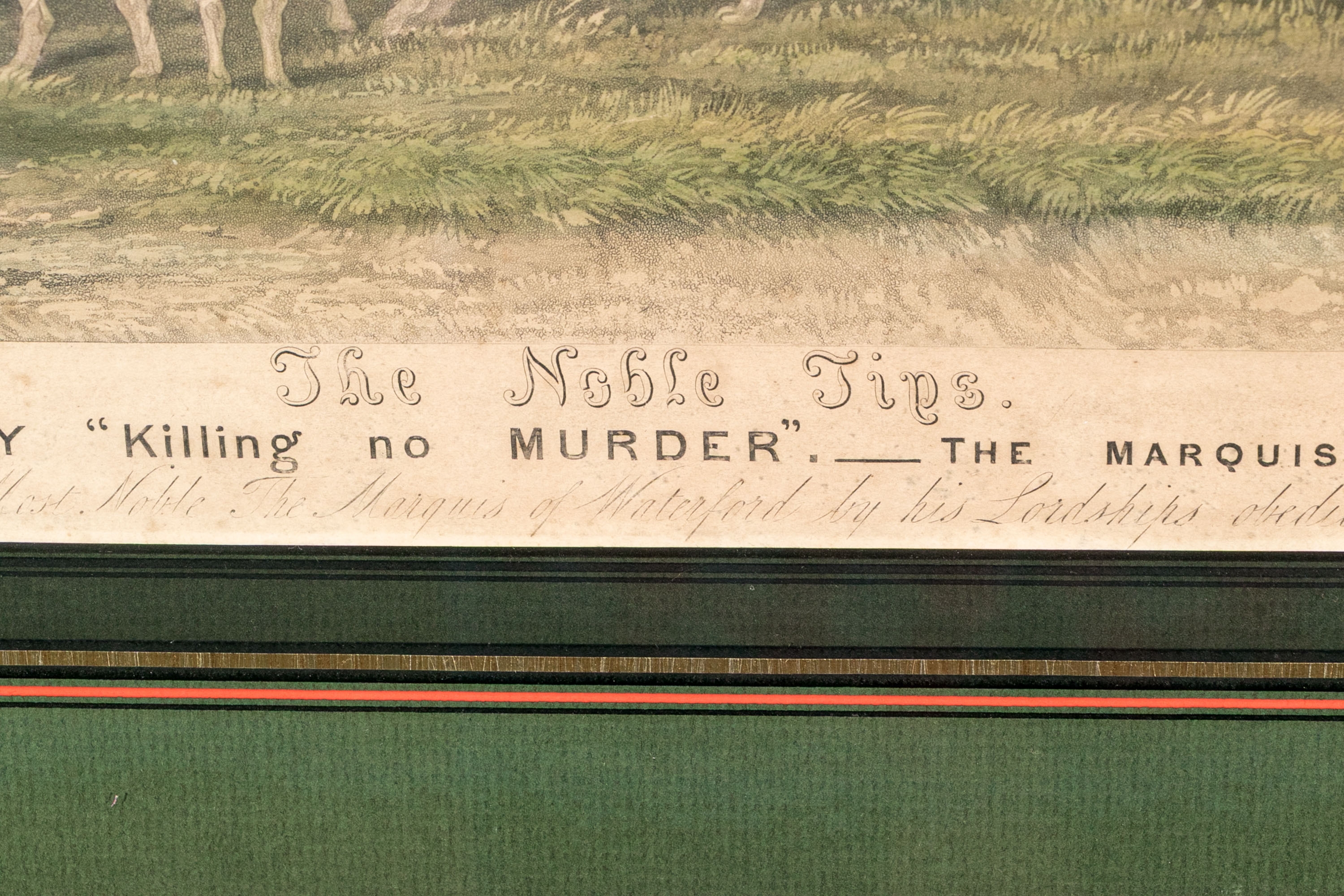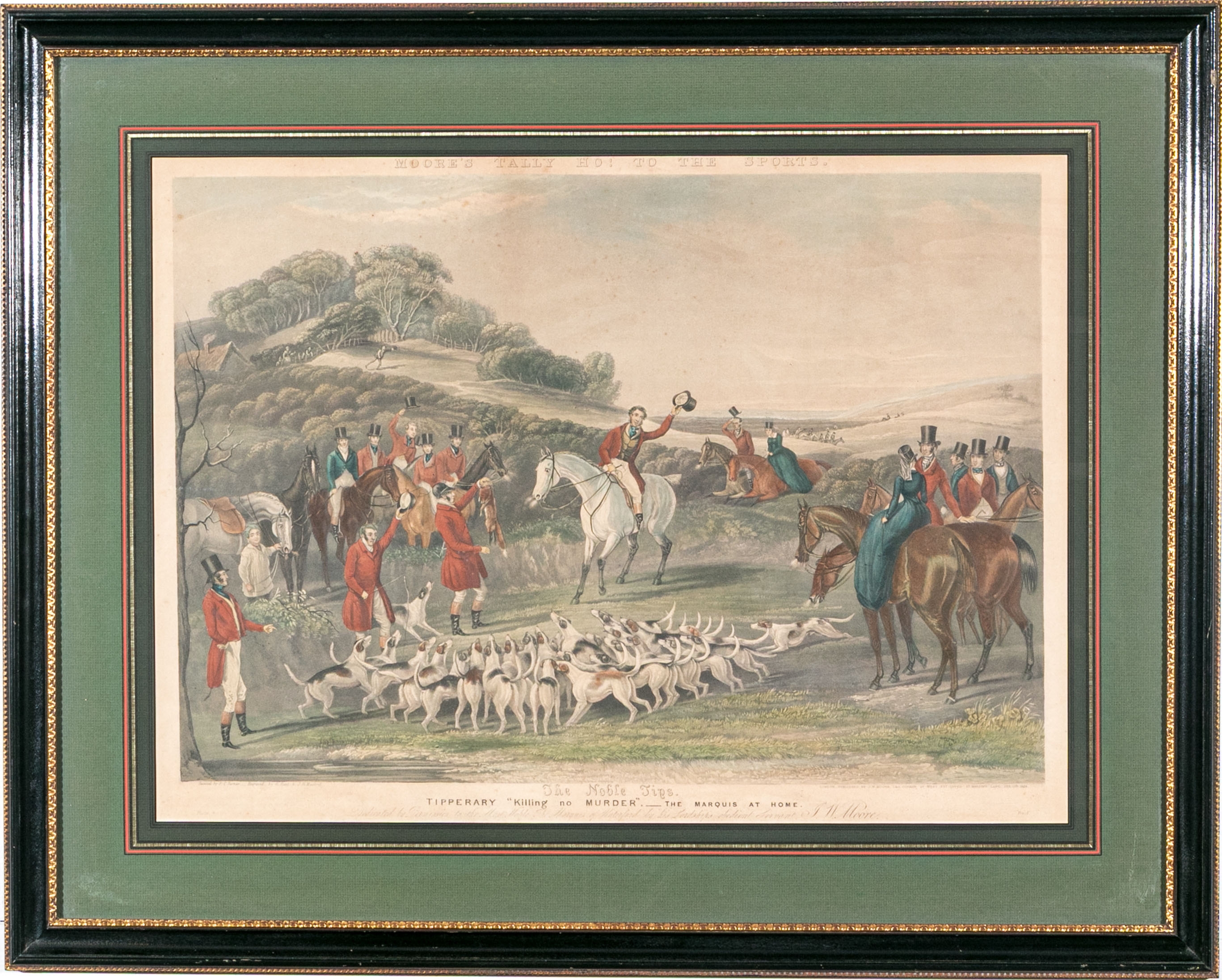 "Tipperary "Killing no Murder The Marquis at Home" printed in London, 1858, depicting the final scene of the hunt with the riders and dogs.