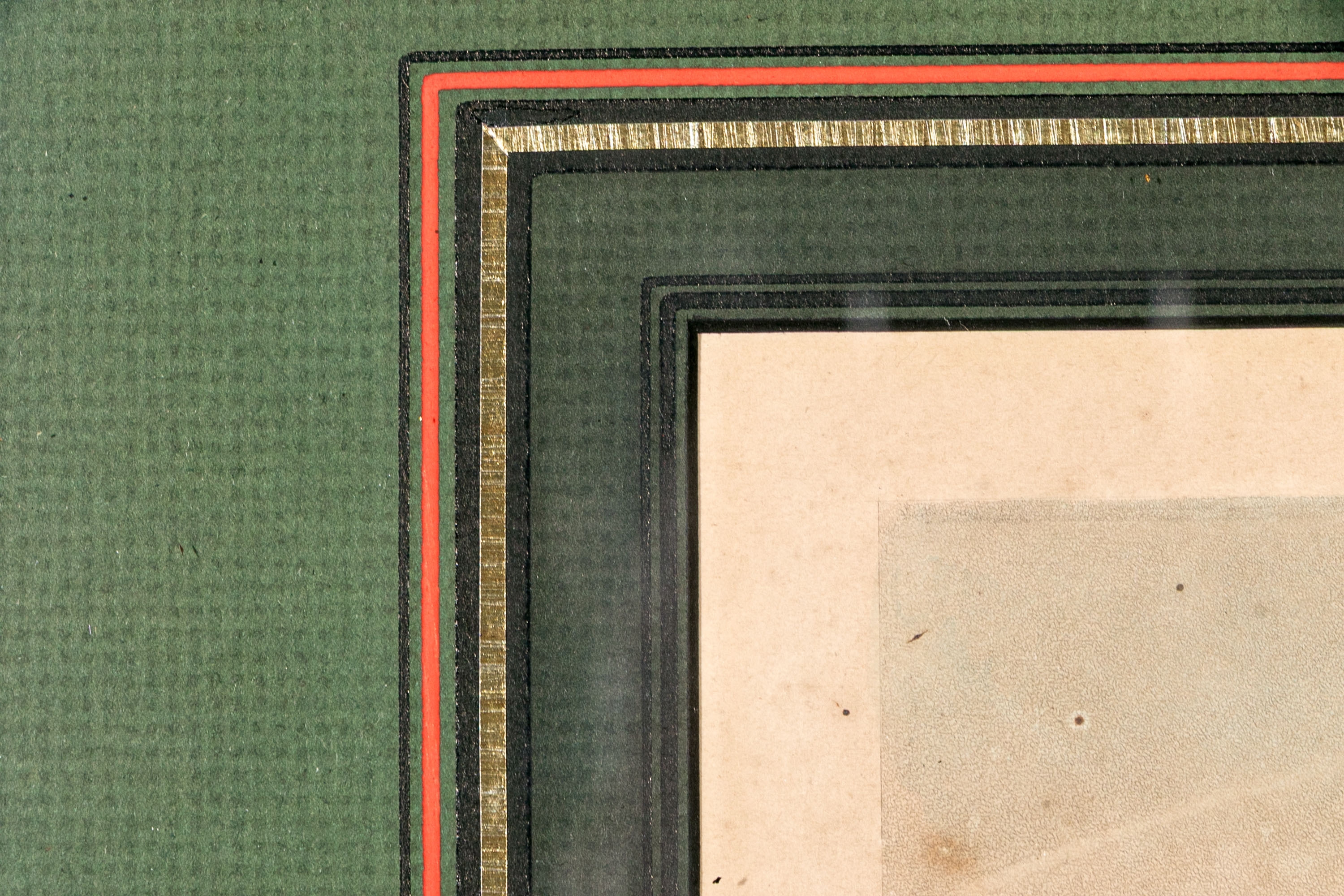 Some discoloration Tom the margins but good colors. There are some chips to the frame.