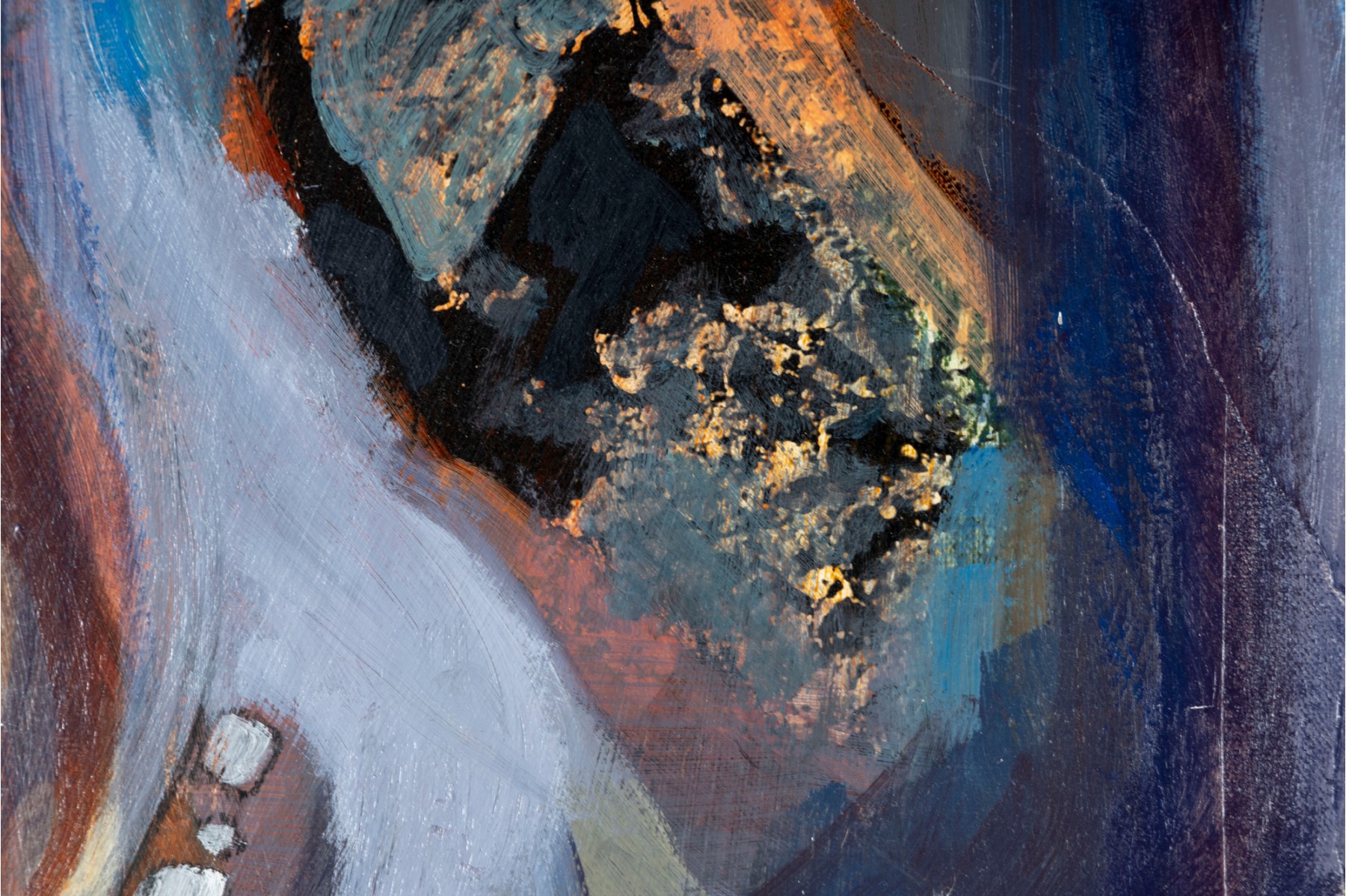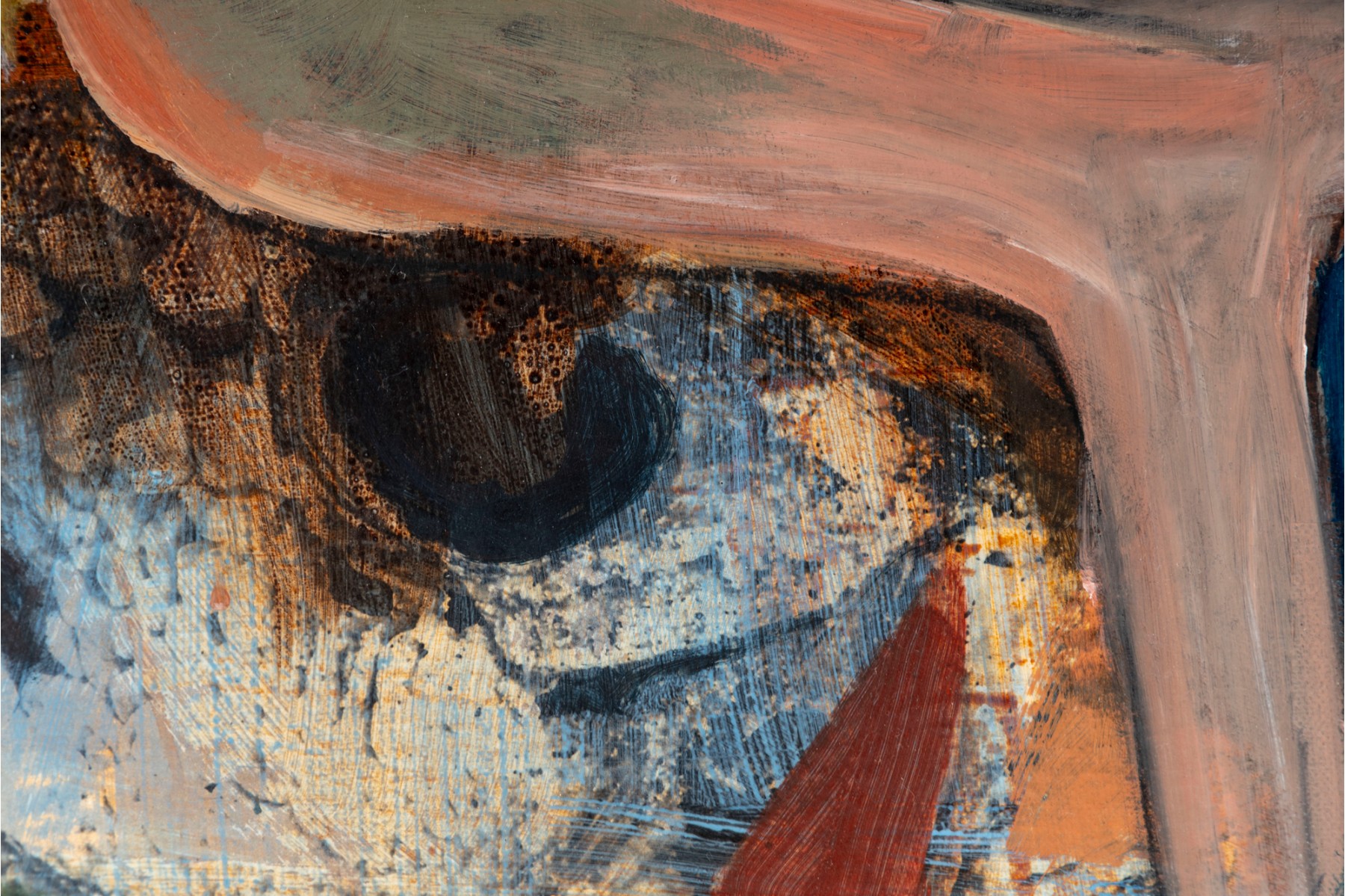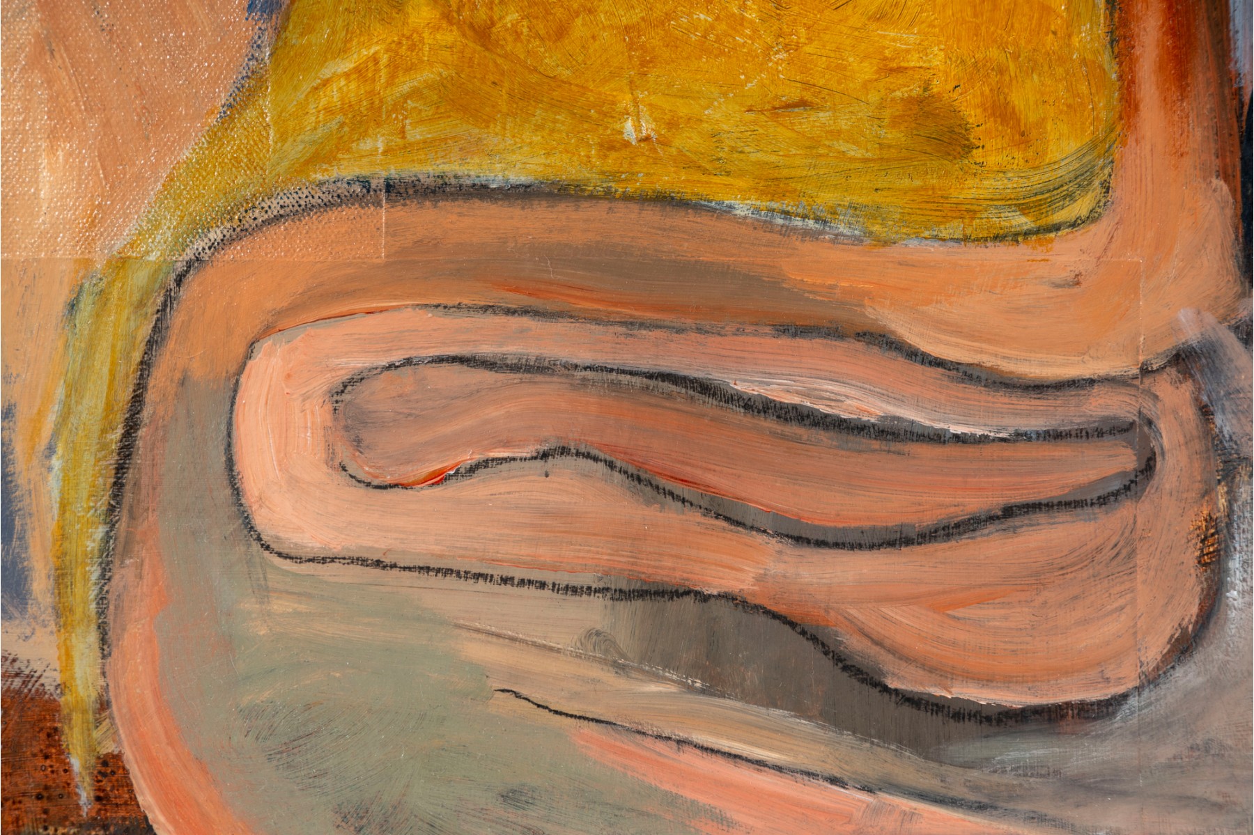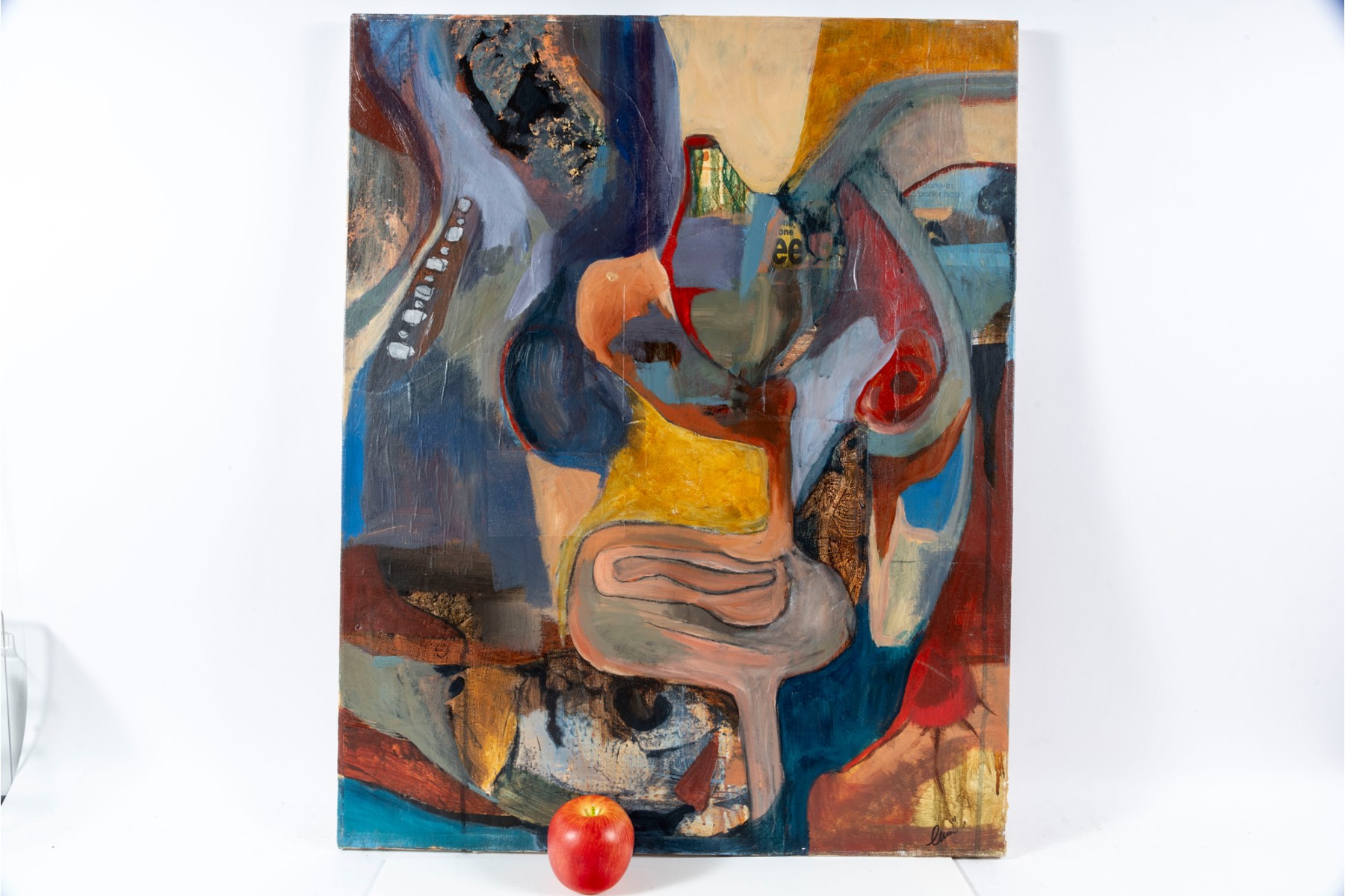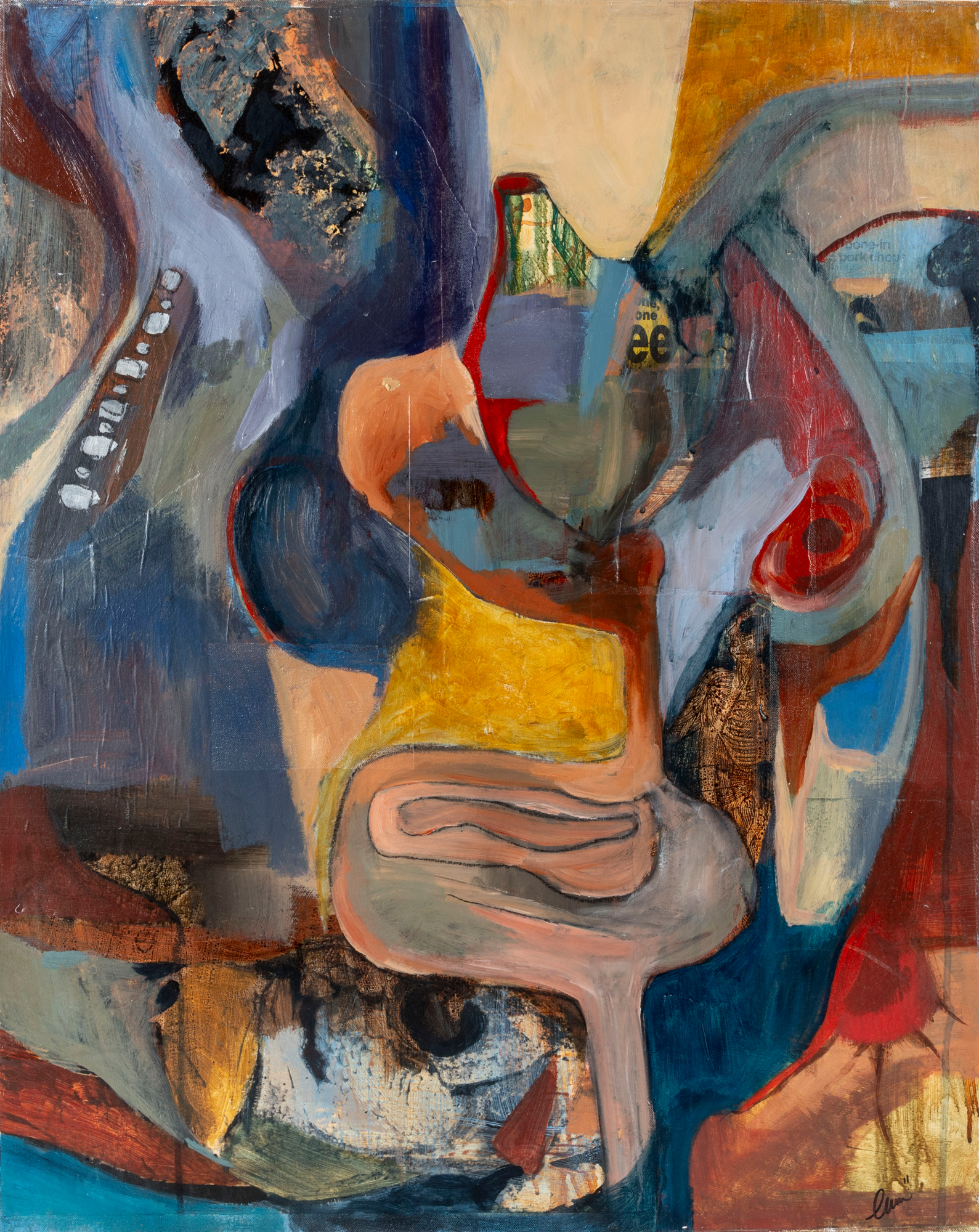 An abstract oil and mixed media on canvas painting entitled, "The inside" by Amy Eason produced in 2011. The painting depicts vague forms, the title implicating some form anatomical focus. The piece is unframed, signed both on the bottom right and en verso -- ready to hang.