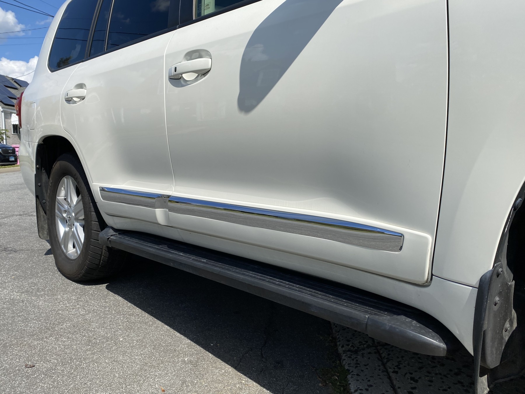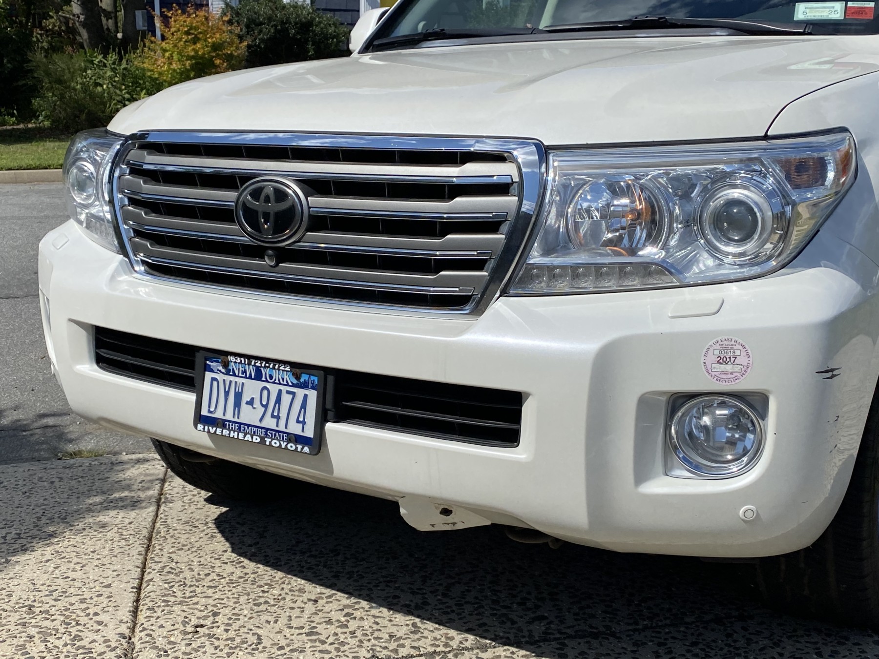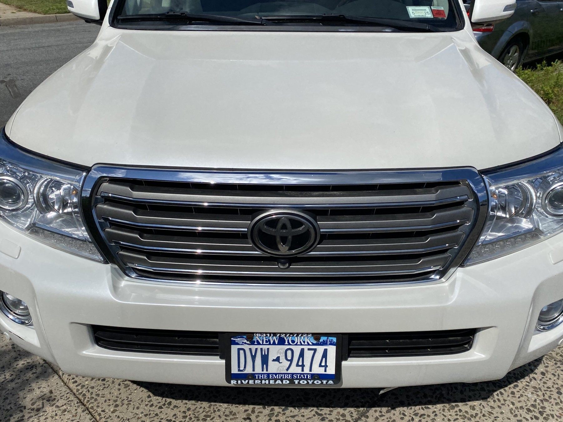 A 2015 Toyota Land Cruiser is available with 90,593 miles on the odometer. This is an estate vehicle and is currently registered in New York State. The vehicle purportedly has a recently replaced and serviced gearbox, maintaining strong mechanical condition. Although there are cosmetic imperfections (as seen in the photos), the car is in good running condition. It has a clean title and is being sold AS-IS.