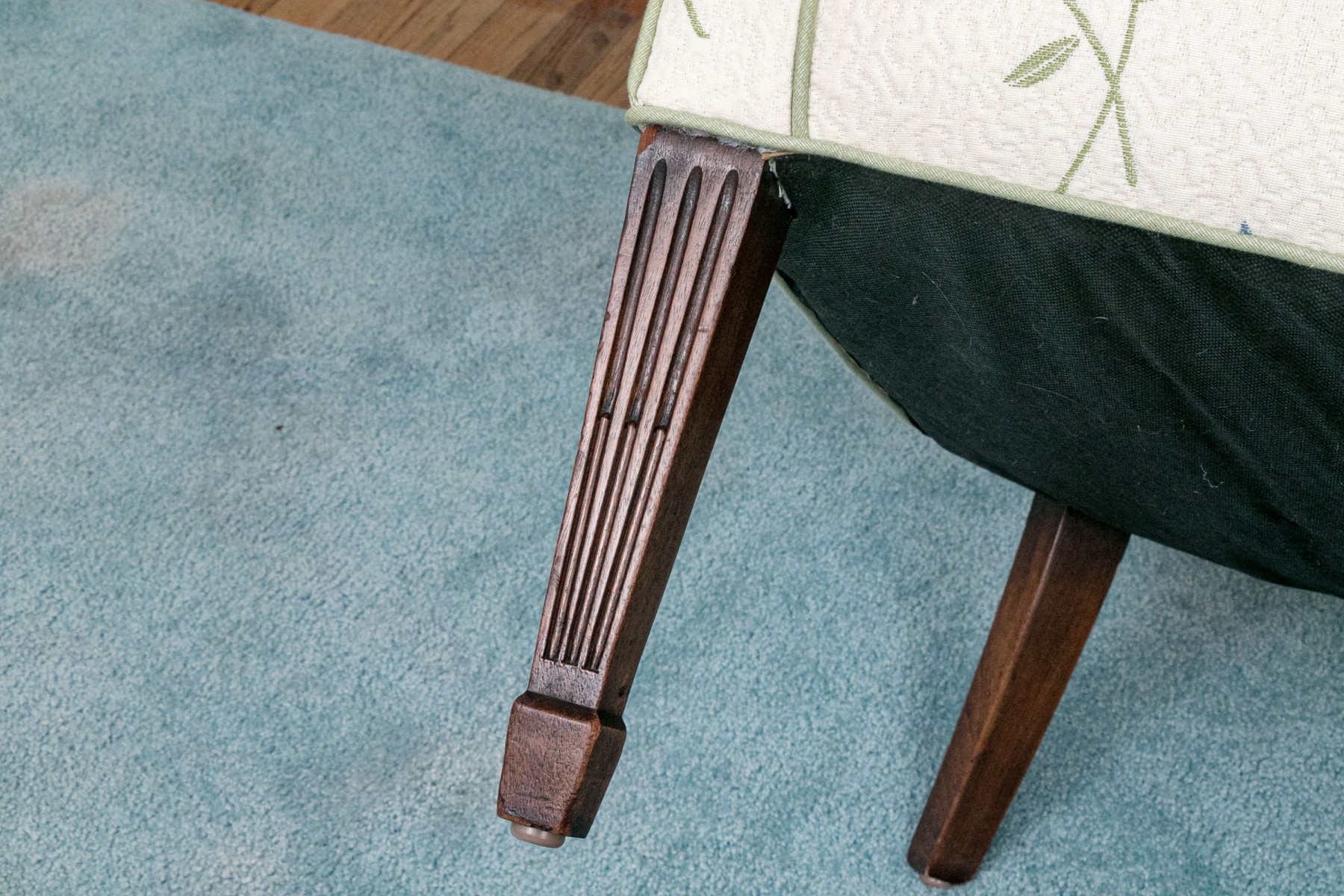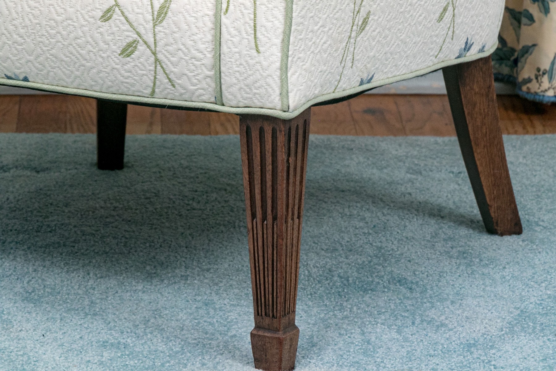 Raised on fluted square tapering mahogany and spayed feet having a ribbed back.