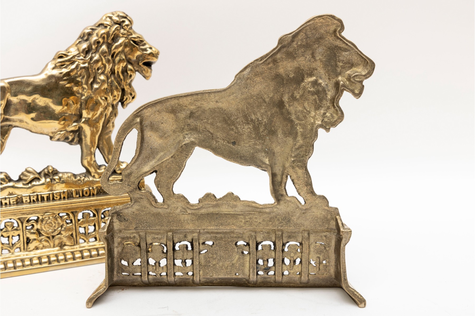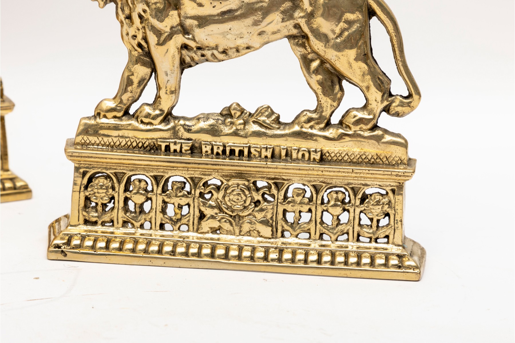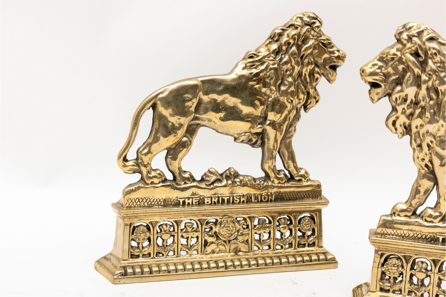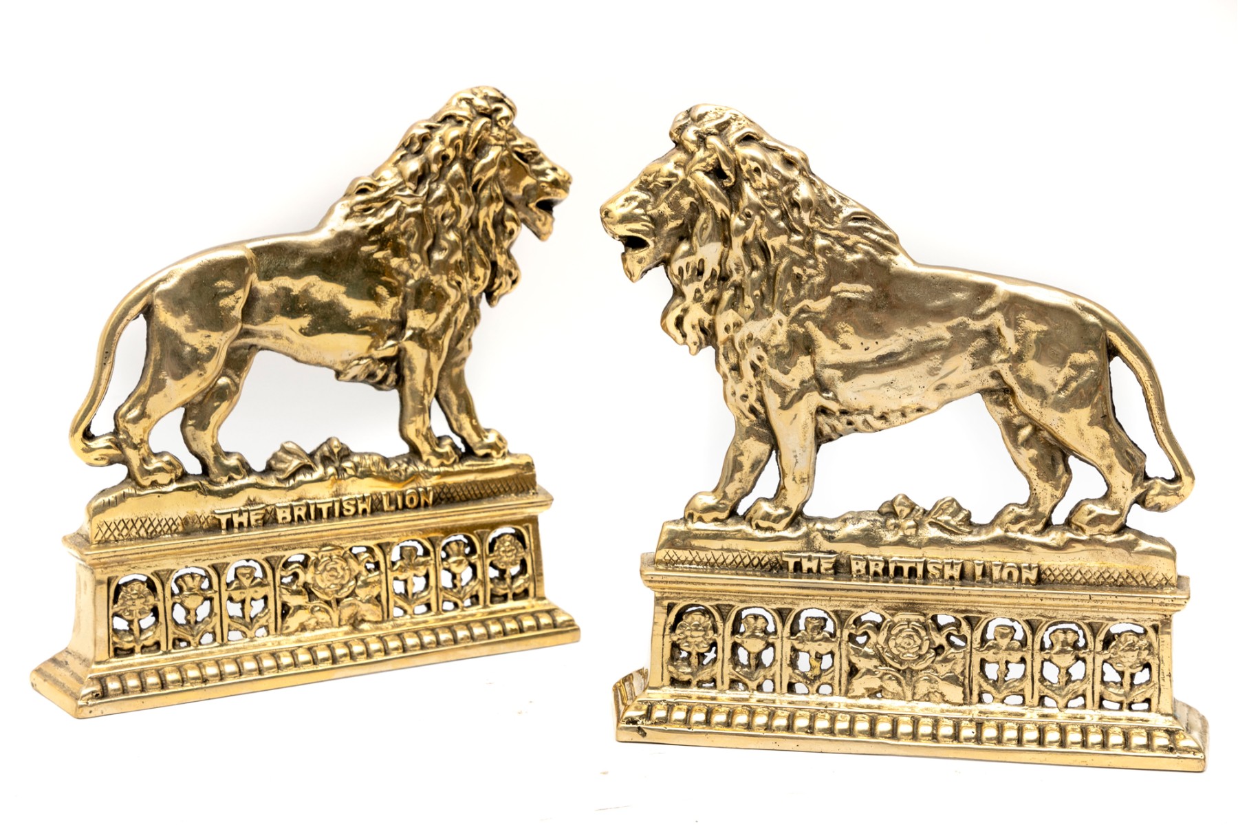 A pair of 1960's - 1970's cast brass door porters aptly inscribed with "The British Lion".