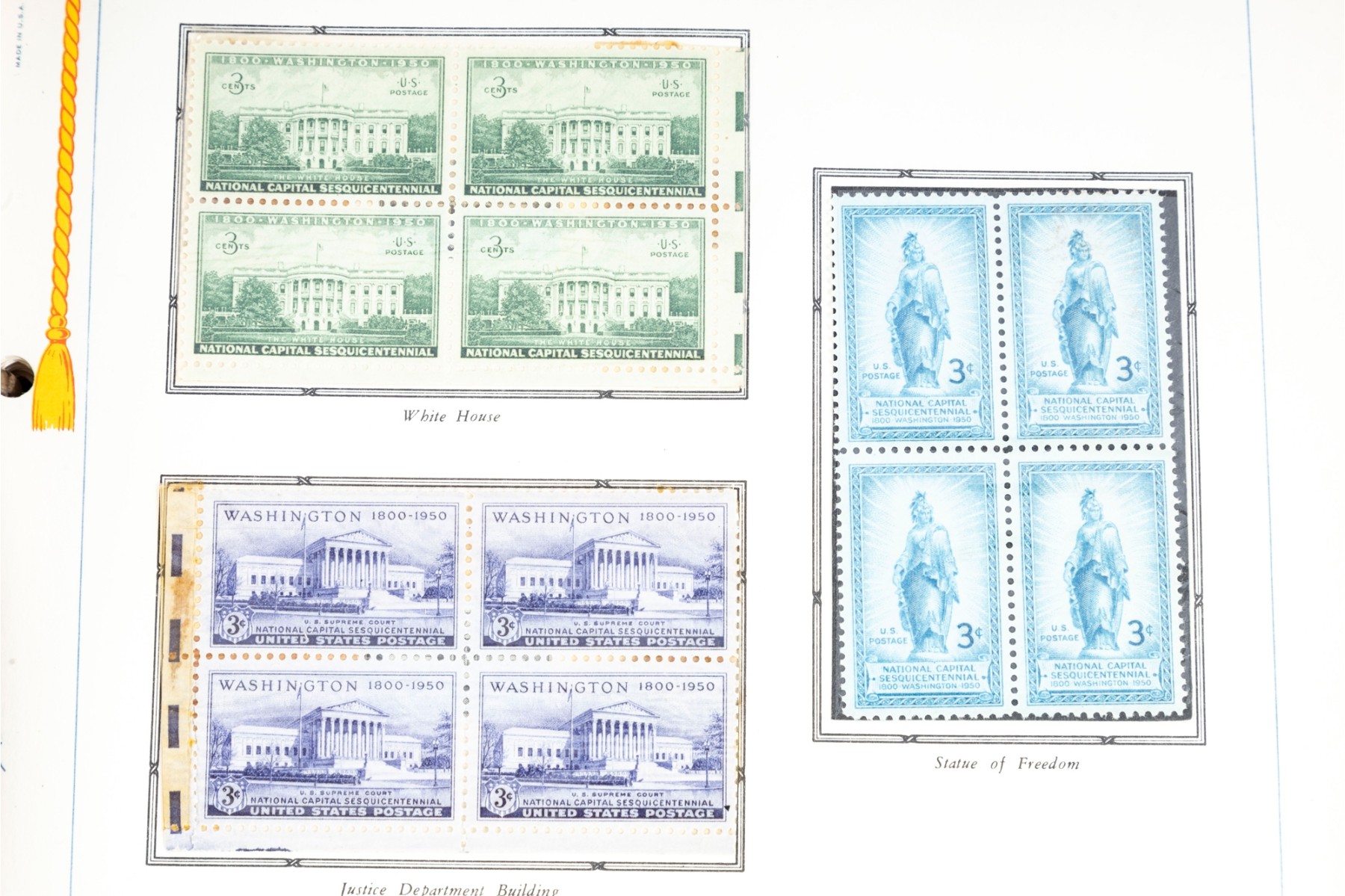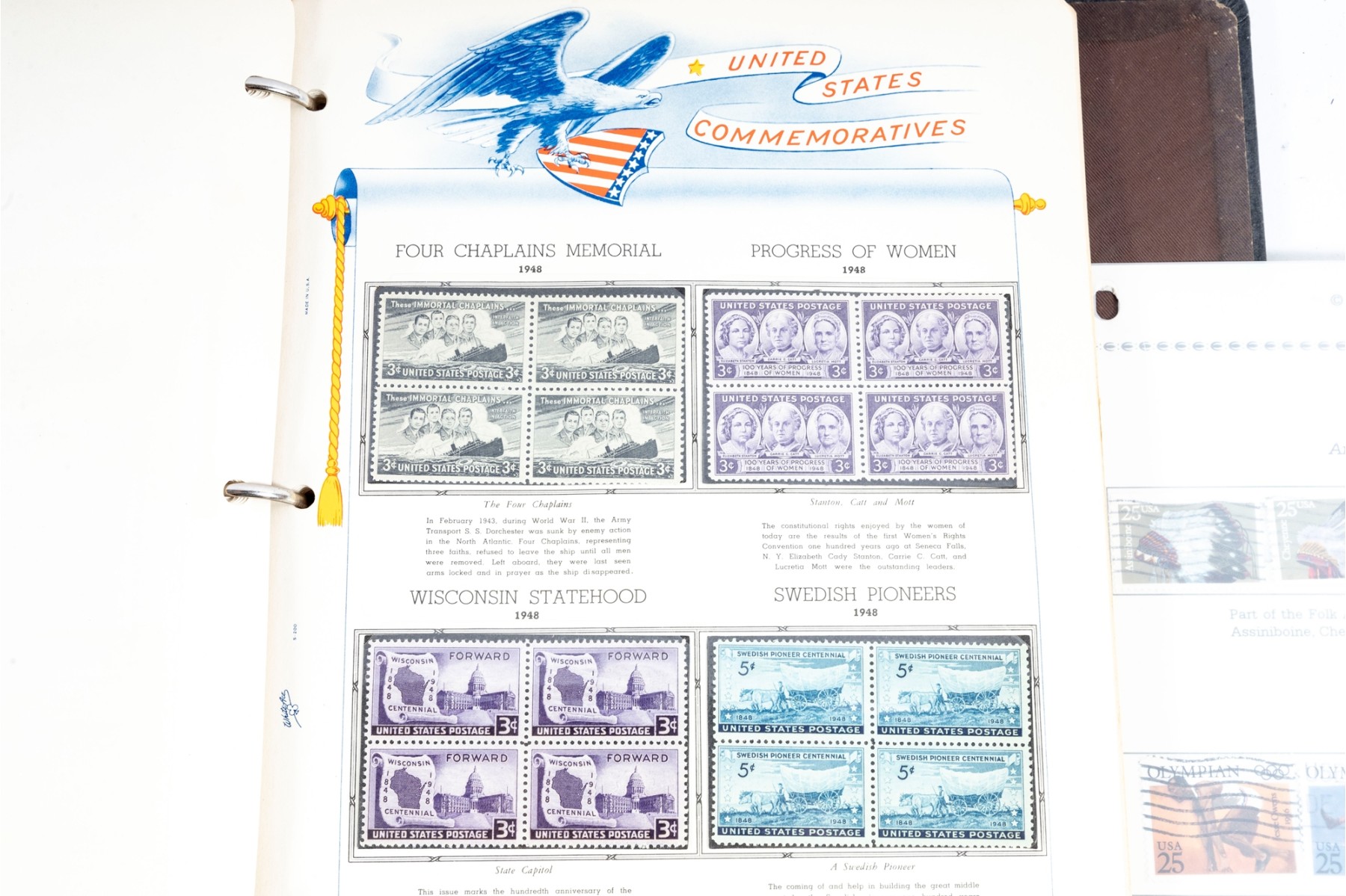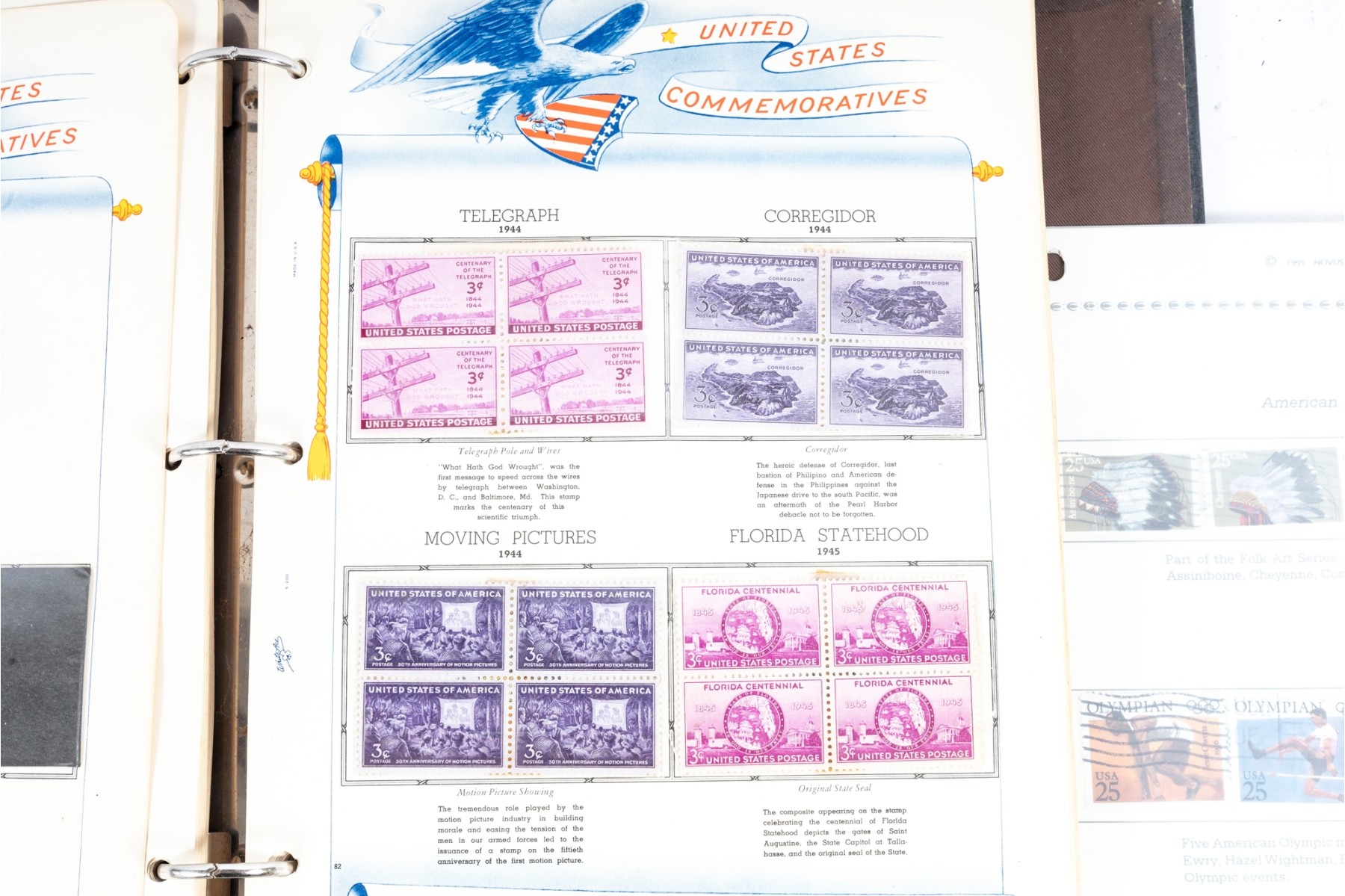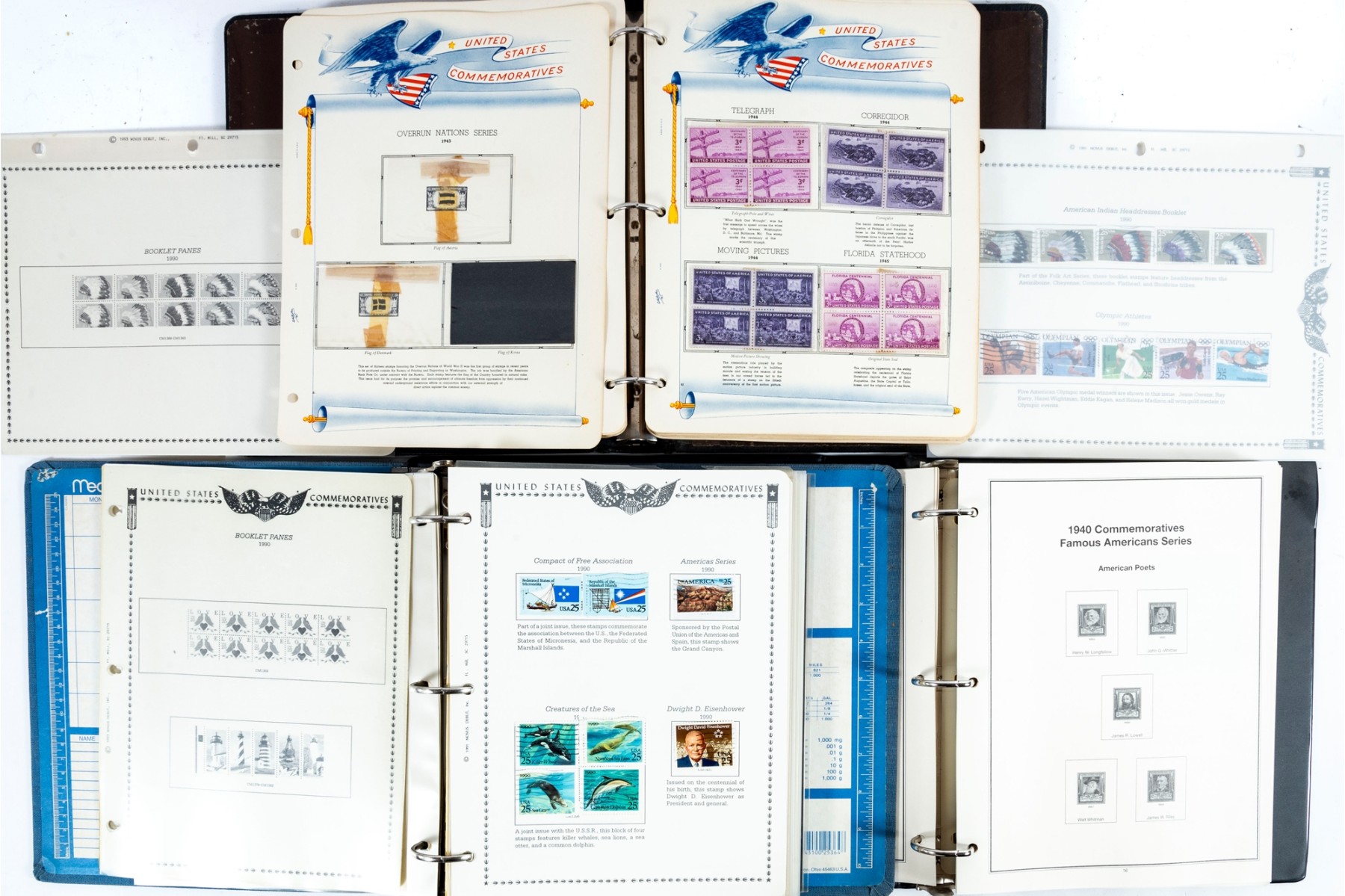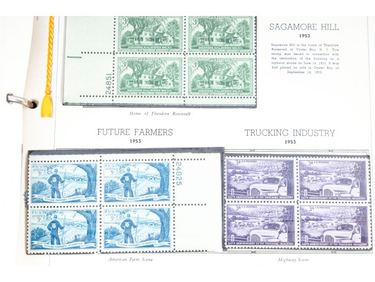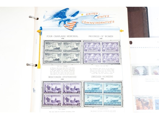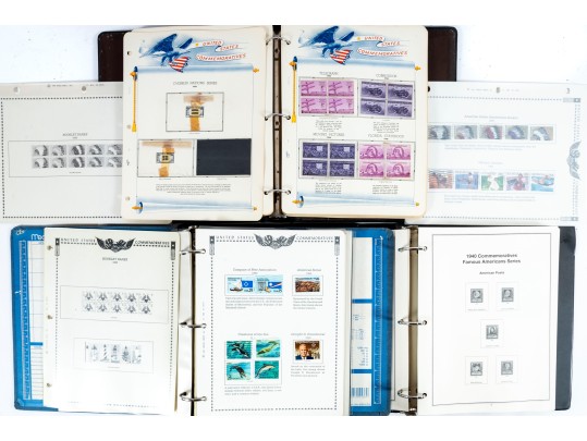 Three incomplete U.S. commemorative postage stamp binders meant for collections and comprehensive cataloging. The albums are largely incomplete, but still contain rare stamps. See photos for details.