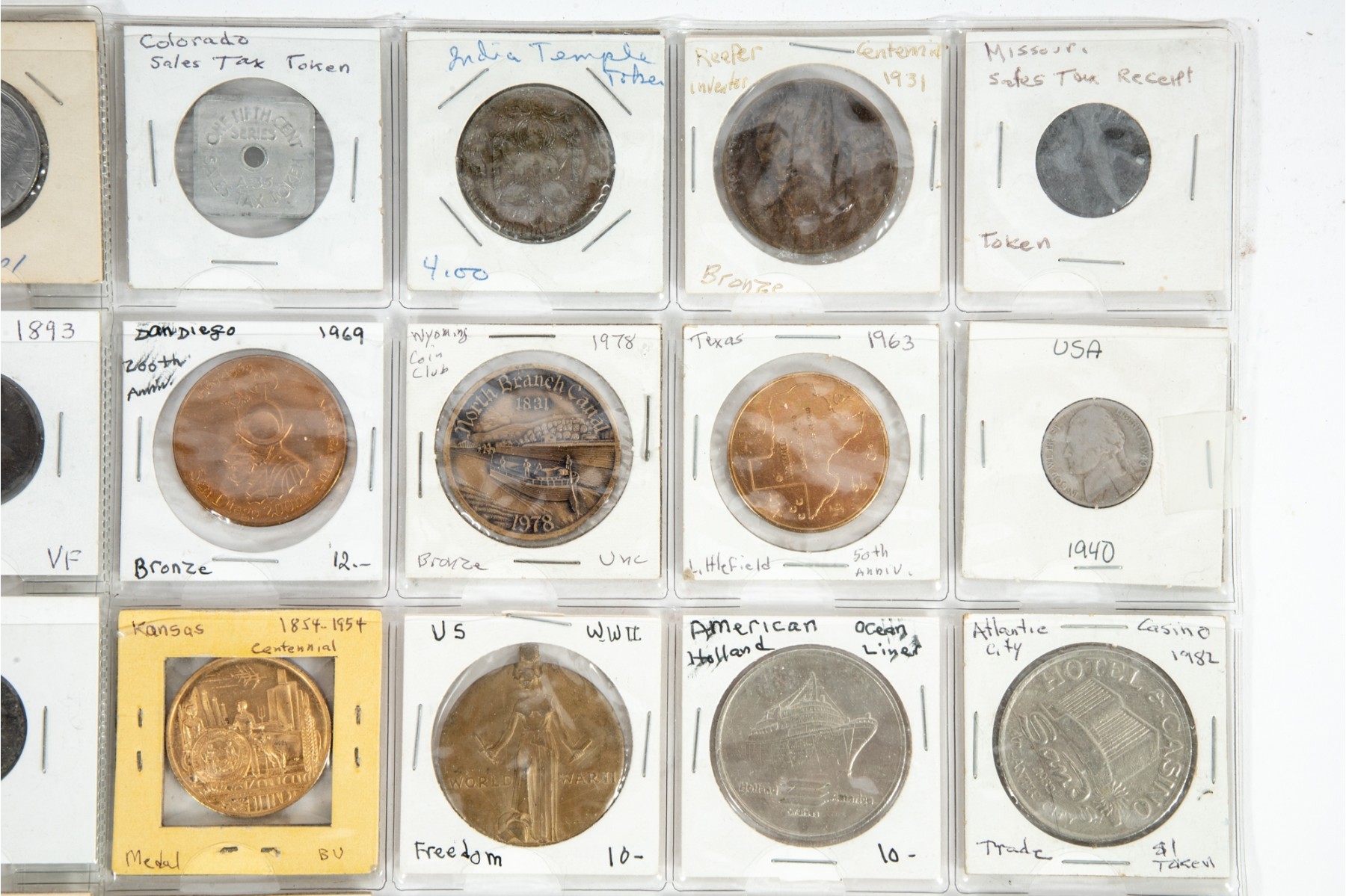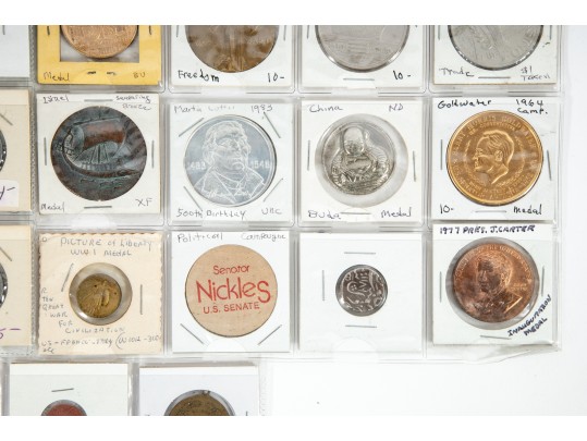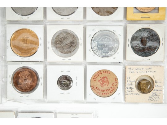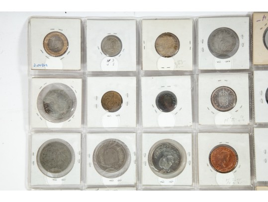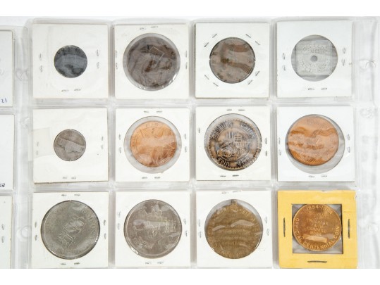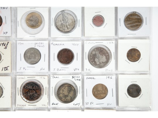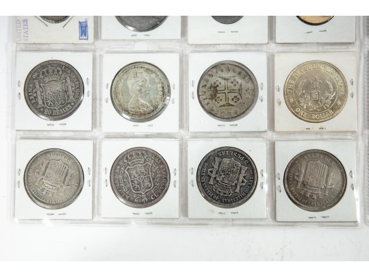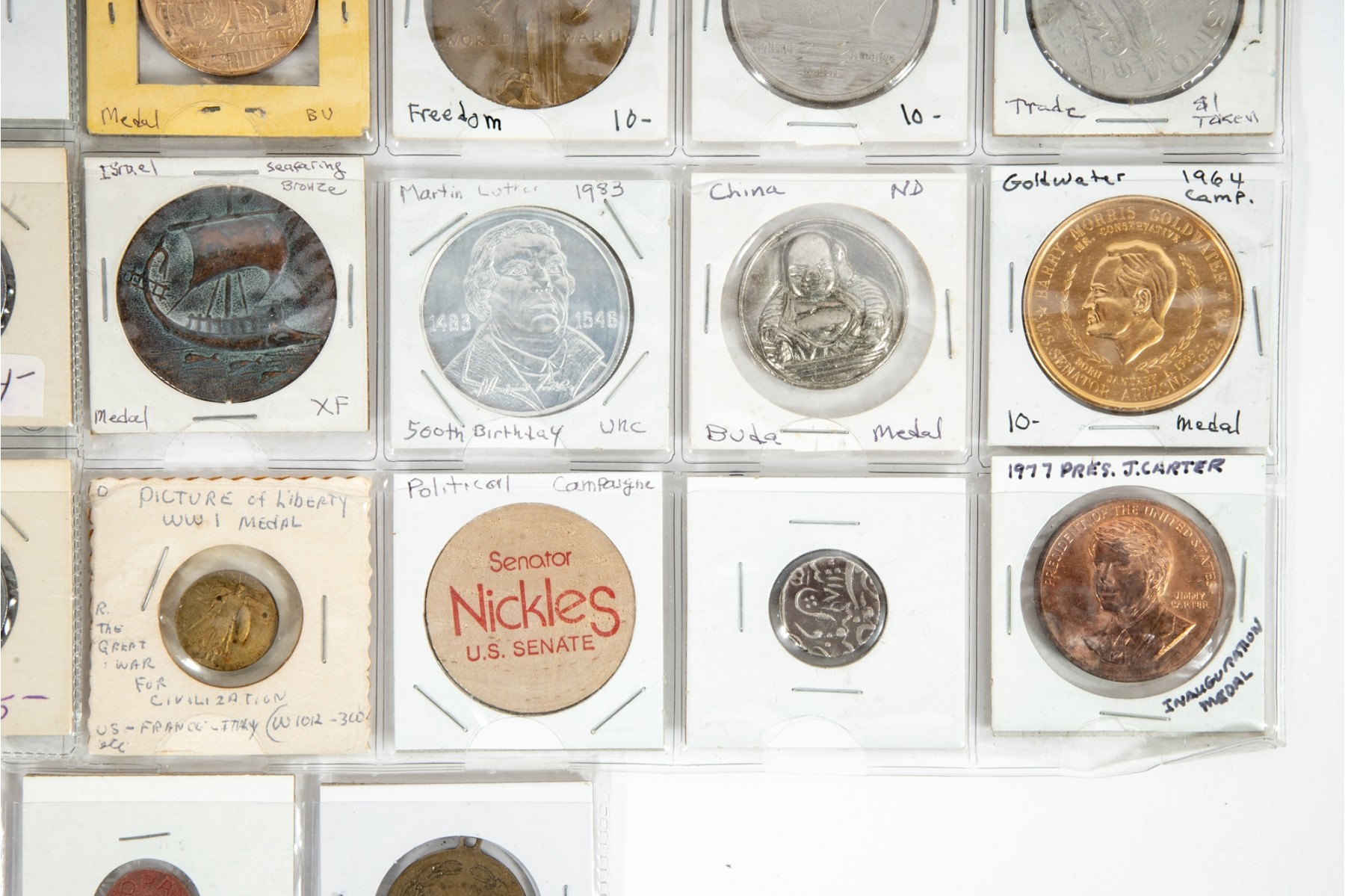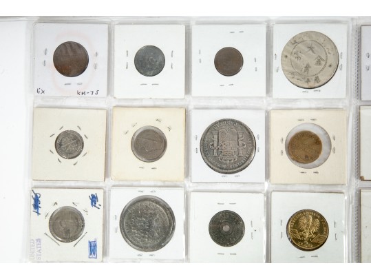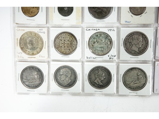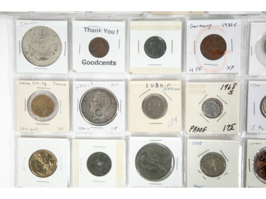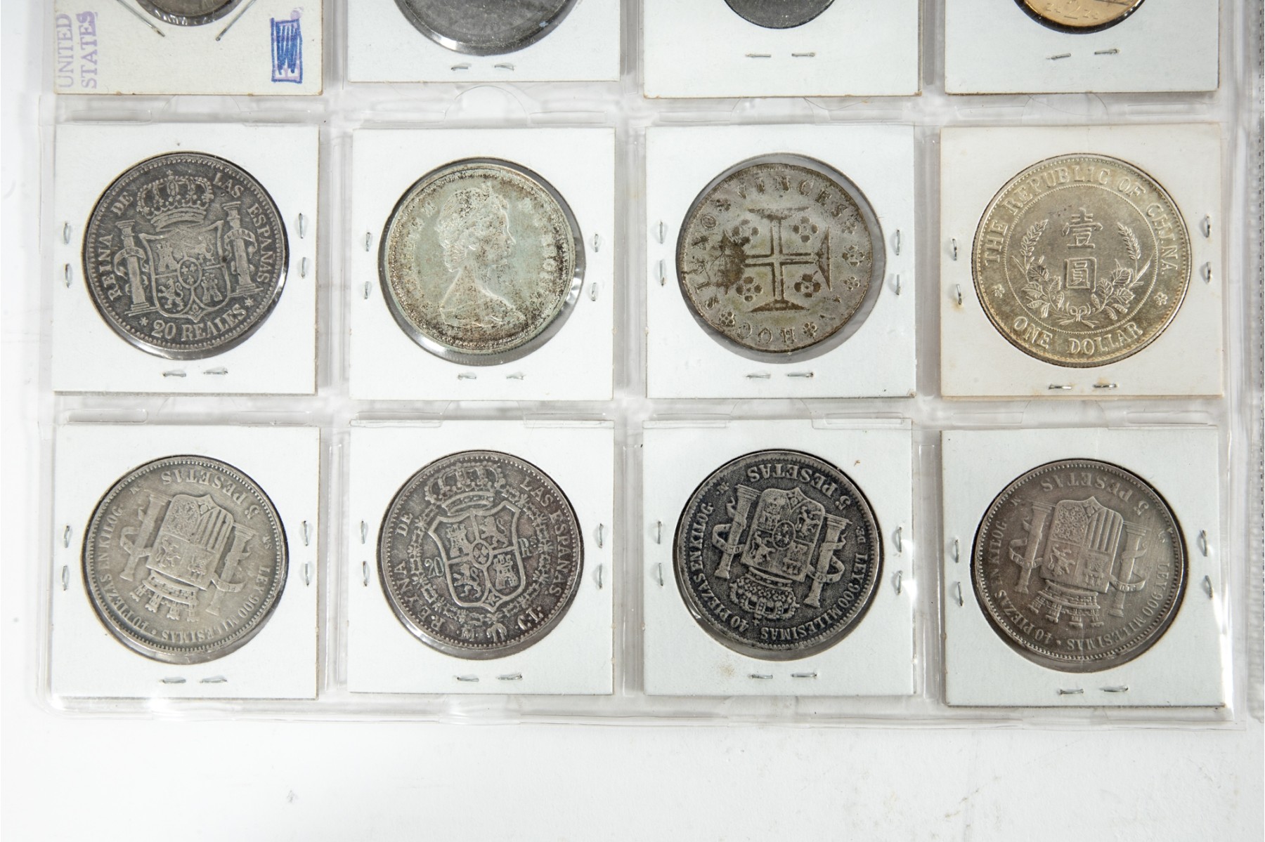 This collection includes 5 sleeves of assorted world coins and medals, each containing a variety of denominations and designs from multiple countries across different eras. The coins vary in material, ranging from copper and nickel to more precious metals.