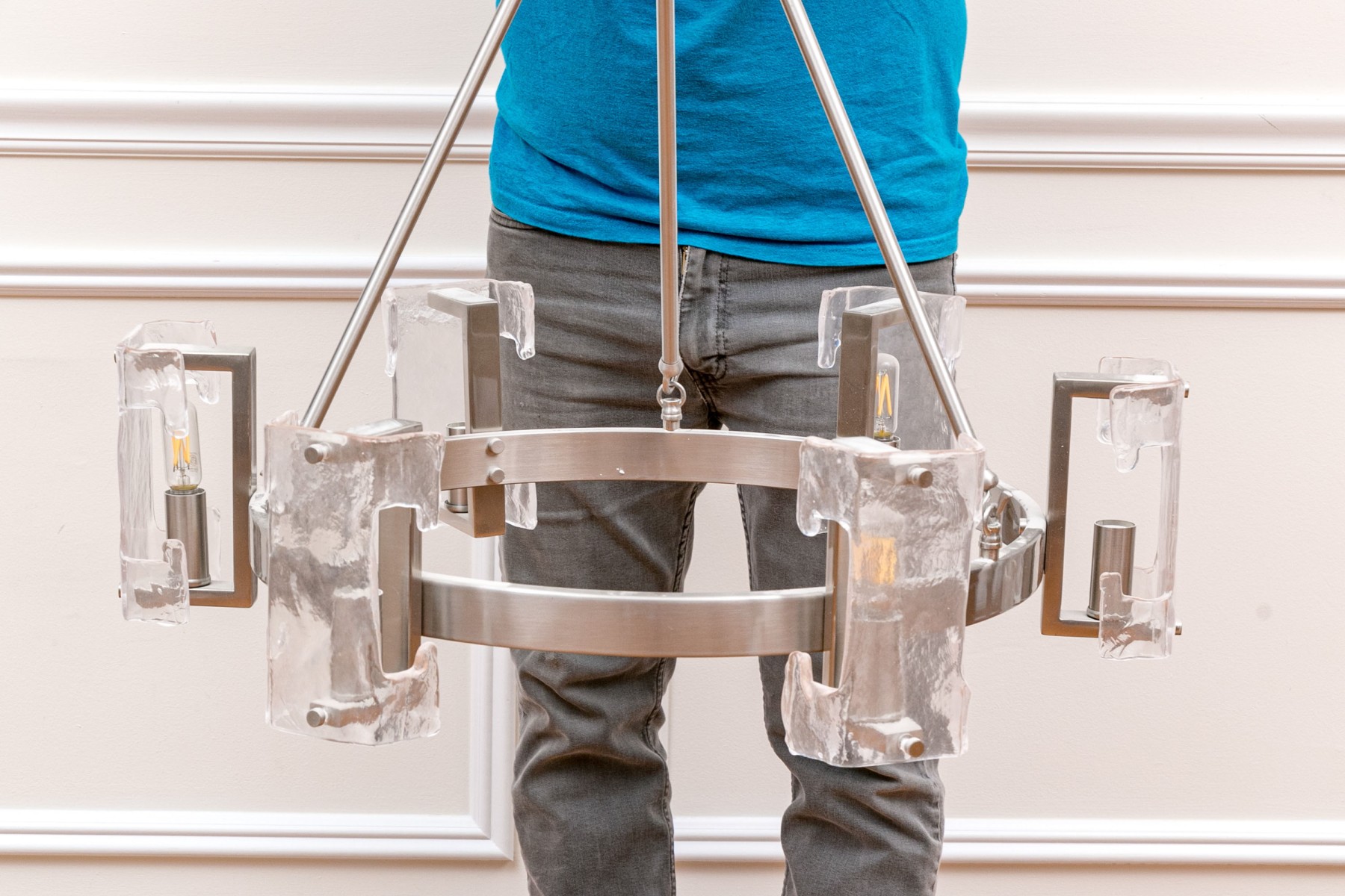6 Light Chandelier Nickel And Glass
