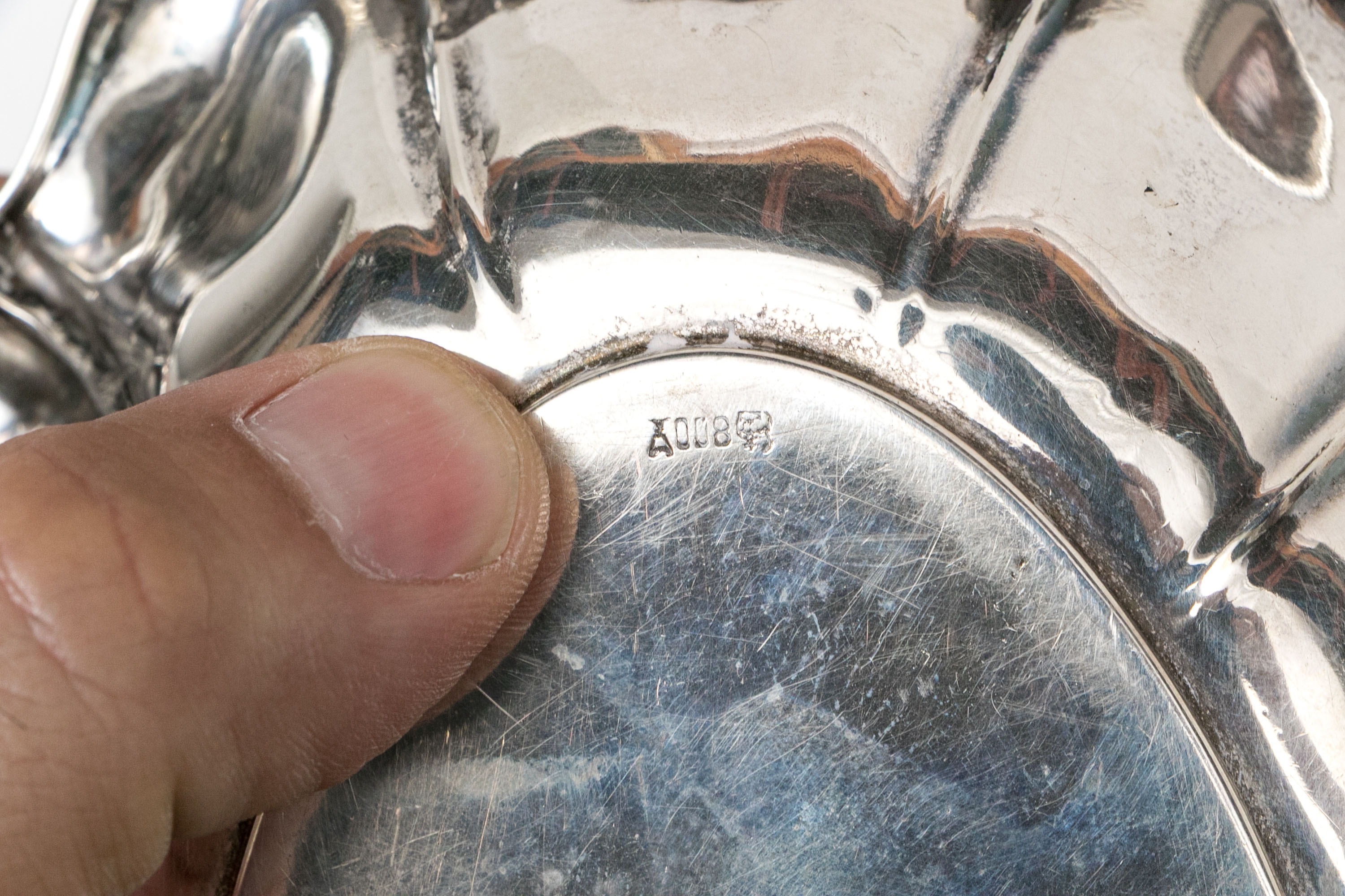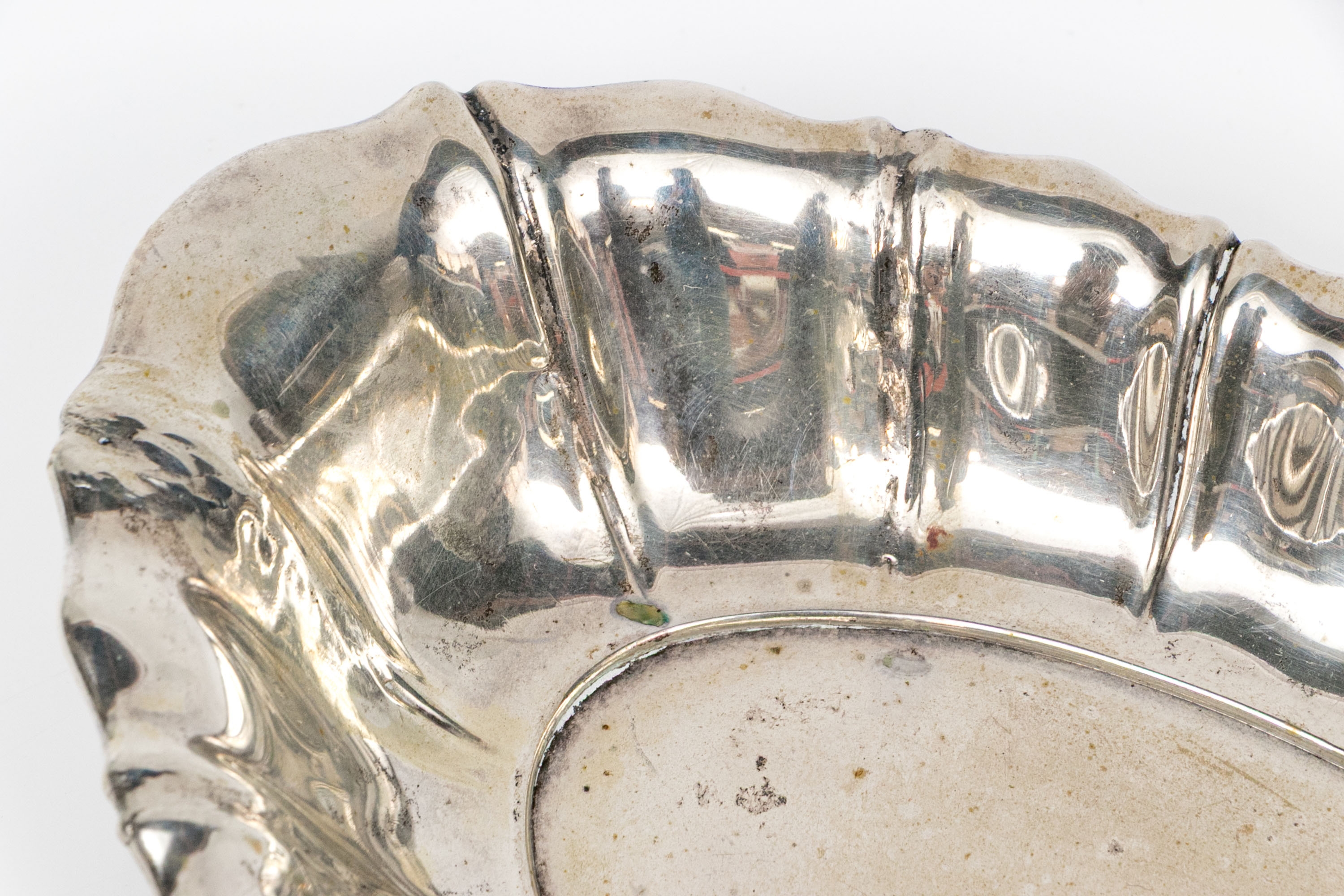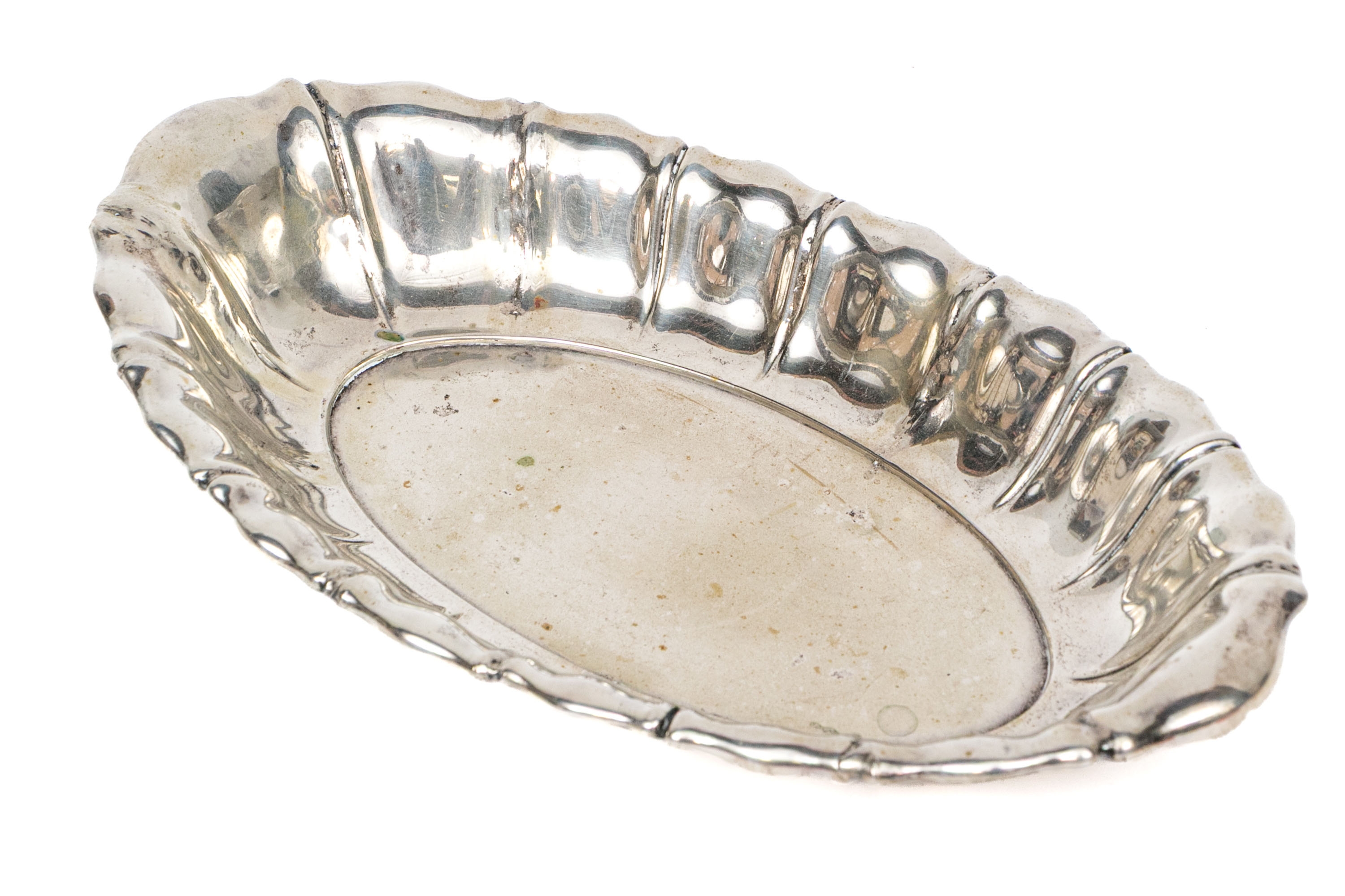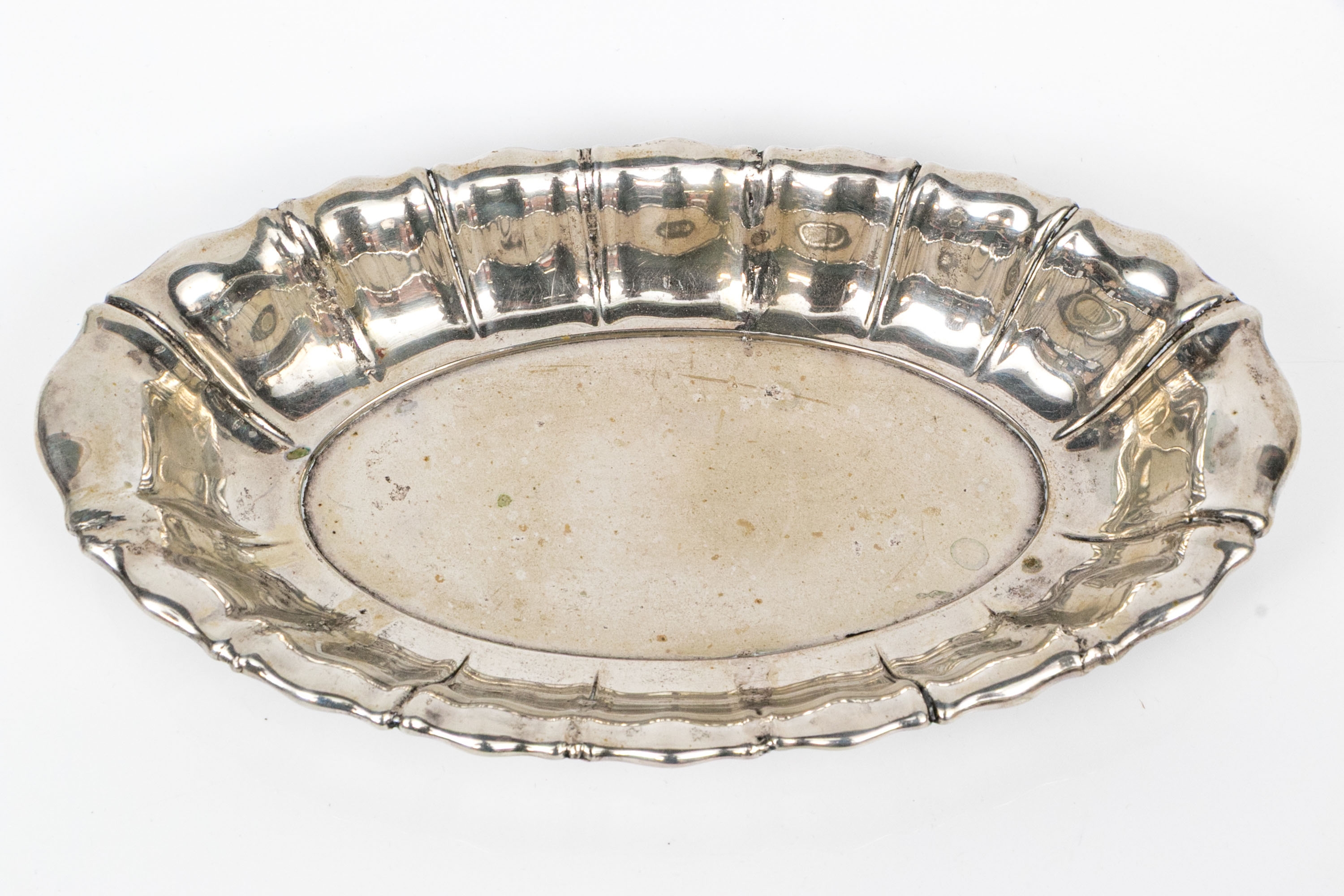 An oval 800 silver scalloped and lobed oval serving dish.