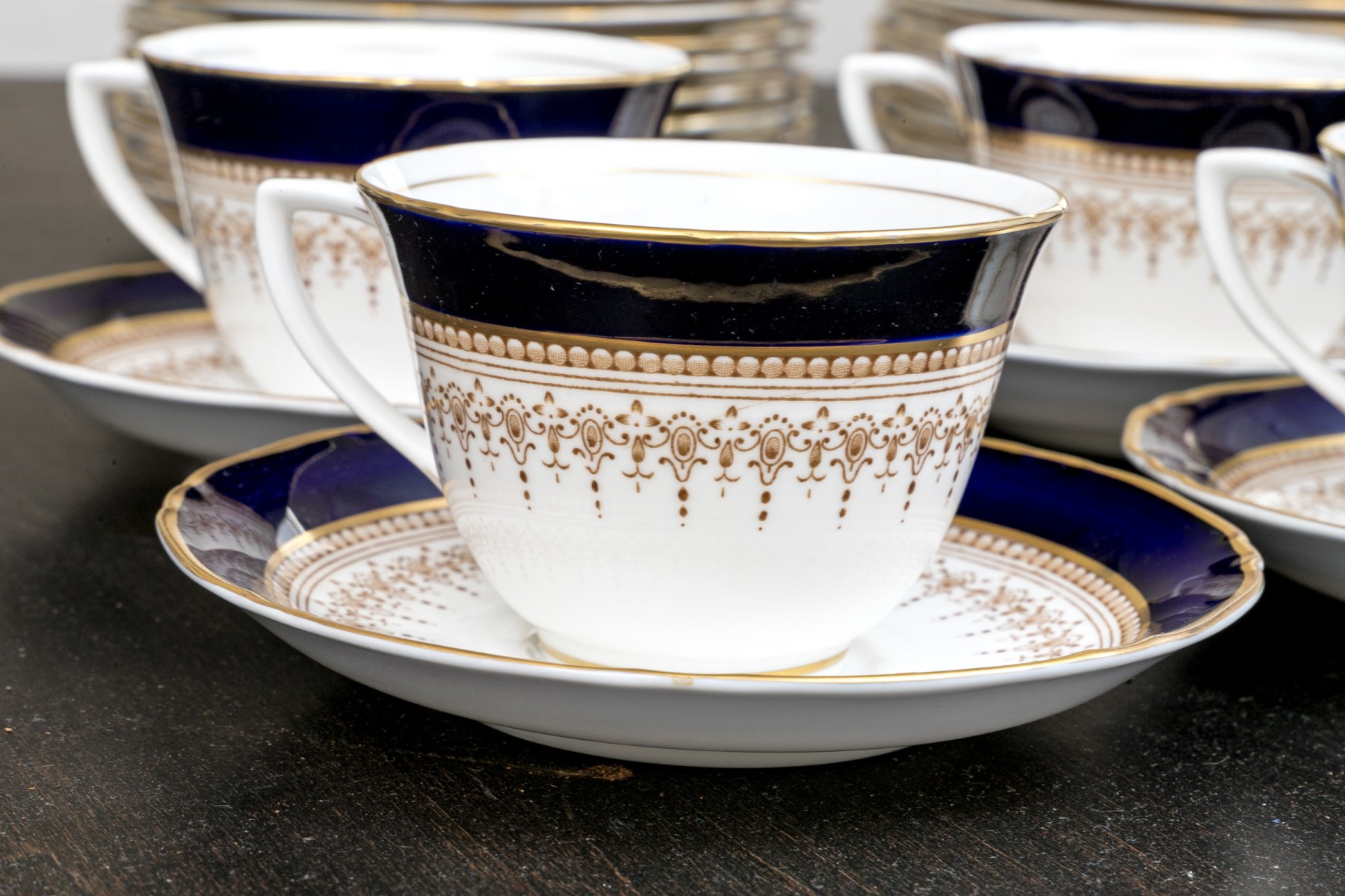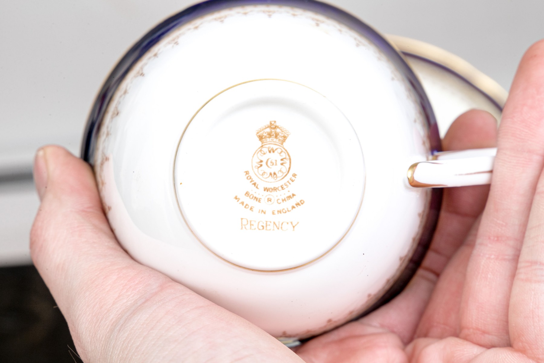 -9 Royal Worcester "Regency" pattern teacups and saucers