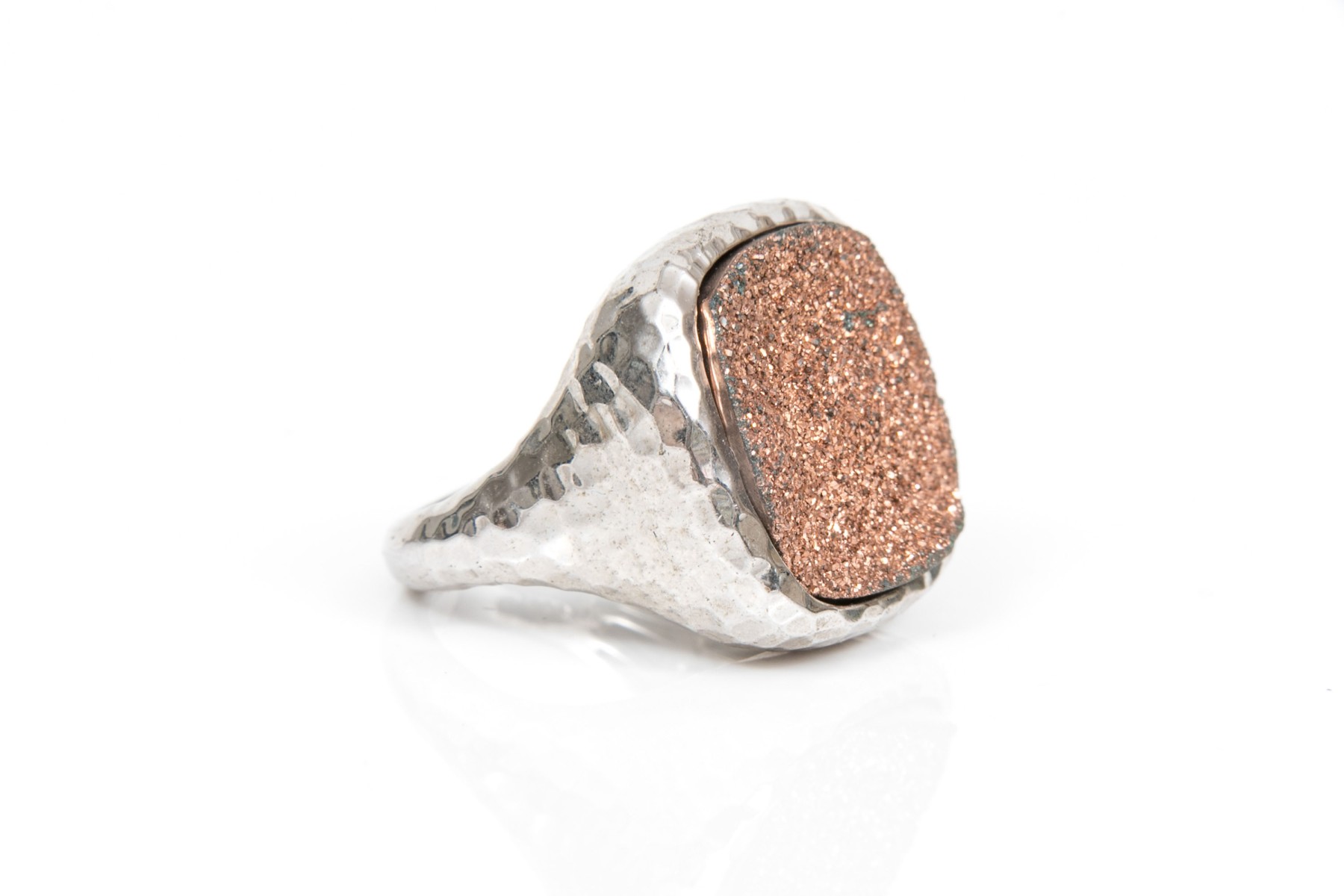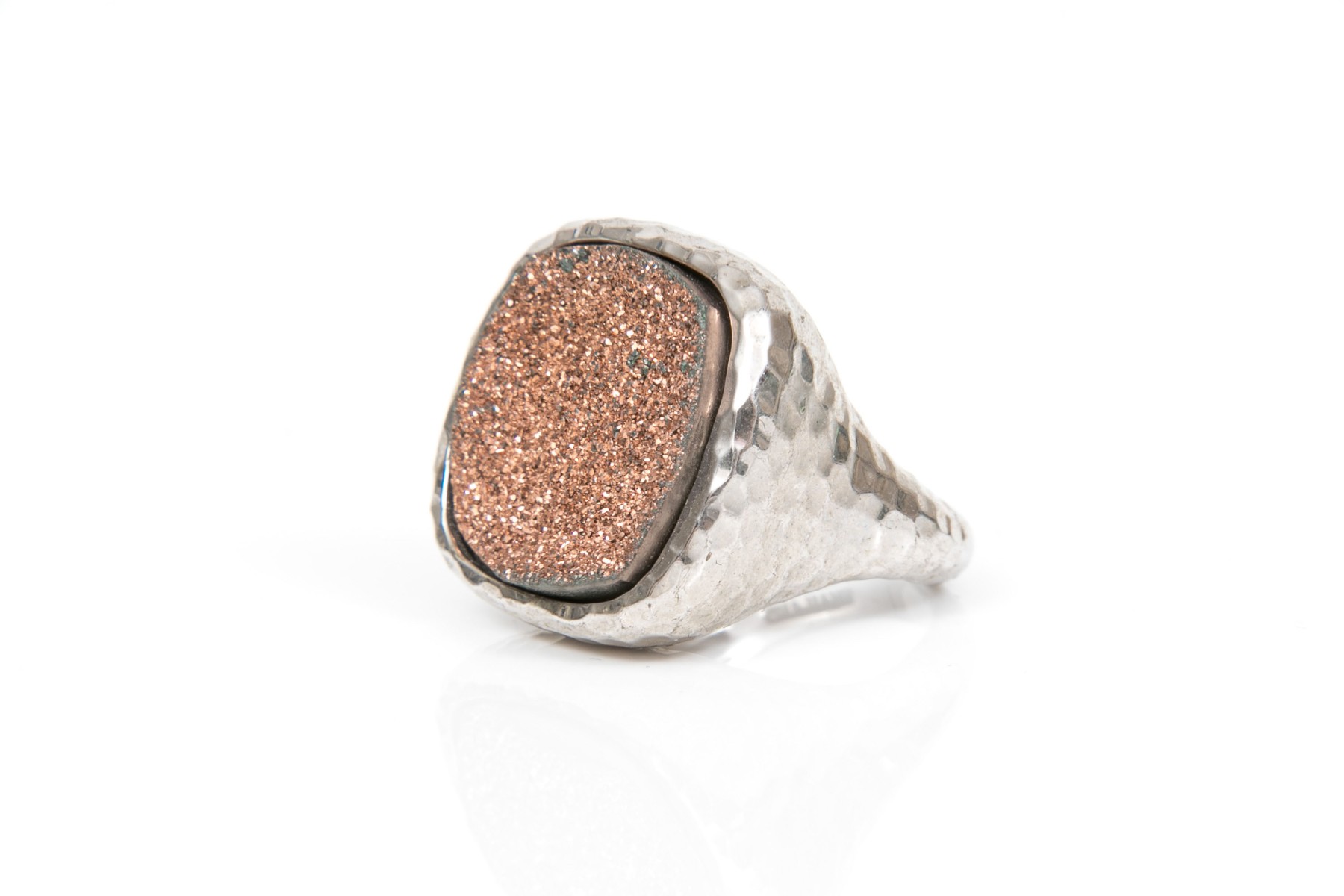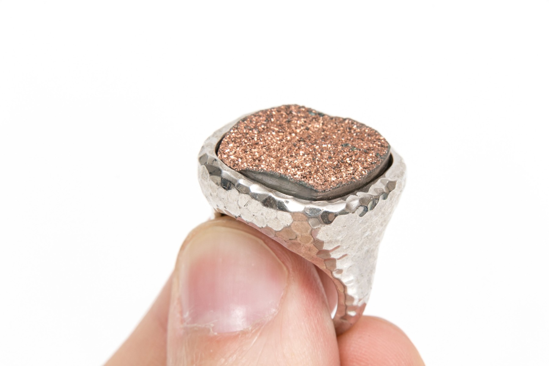 Dimensions: 7/8" Across Top-Druzy Ring, 11/16" Across Top-Checkered Green quartz Ring