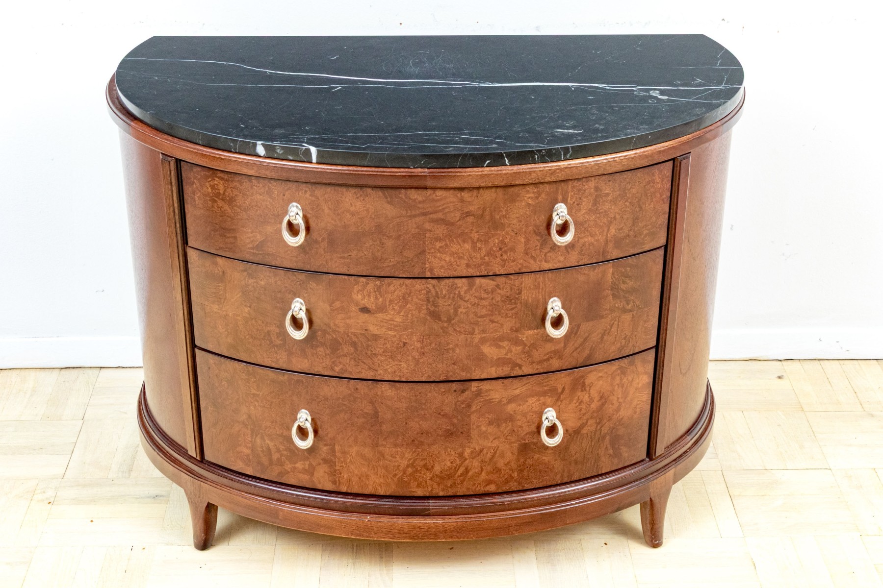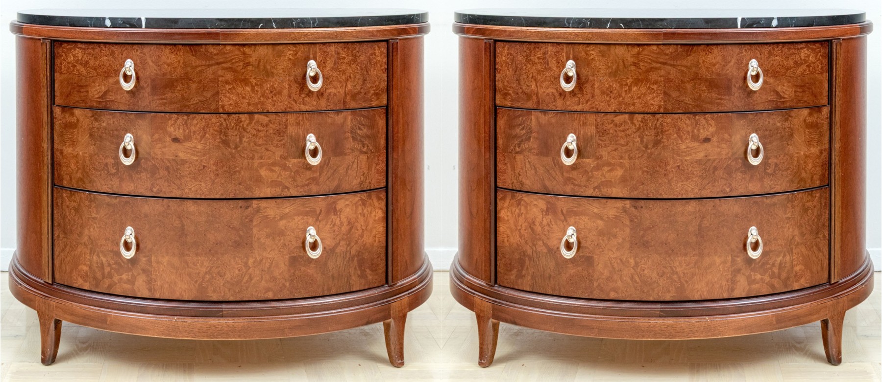 A Fine Pair Of Bogart Burl Wood Marble Top Demilune Chests #461789. Black Rock Galleries provides high end estate liquidation services through online estate auctions and a 50,000 sq ft designer showroom. estate liquidator, estate sale, online auction, antiques, fine art, liquidation, clean outs, auction, consignment, interior design, fine jewelry, collectibles, appraisals, estate appraisals, estate services, decor, furniture, furniture consignment, antique center, consignment shop. We offer appraisal services and specialize in fine art, jewelry, antiques and decorative arts. Sell with us. Black Rock Galleries is the tri-state's largest estate liquidator serving New England and the greater New York City area. We are the trusted source for expert appraisals, auction services, estate sales, and consignments. Black Rock Galleries is the east coast's largest and most trusted estate liquidator, with locations in Connecticut, greater Boston, MA and Raleigh, NC, Fairfield, Southport, Apex, TX. We are the best source for expert appraisals, auction services, estate sales and consignments. We have served thousands of families and estates with compassion, professionalism and expertise. BRG works with attorneys, executors, realtors and families to bring the greatest return on personal and estate property in the current market. Our unique combination of services make us the easy choice to get the job done in a timely and stress-free manner. We are with you from the initial consultation to the final clean out. Our house-built online auction software platform offers clients a dynamic approach to liquidating their personal property. This venue is most successful in bringing the best return with the least amount of disruption for our clients. See our services page for a complete description of this offering. A Fine Pair Of Bogart Burl Wood Marble Top Demilune Chests #461789
