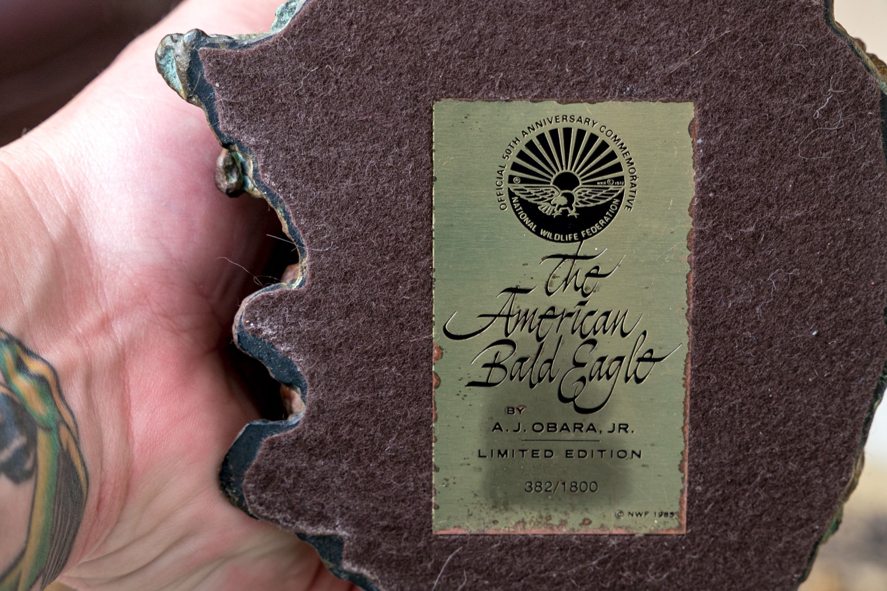 A.J. Obara Jr. (American, b. 1948) "The American Bald Eagle" bronze sculpture commemorating the National Wildlife Federation's 50th year anniversary. Bearing a plaque on the underside numbered 383/1800.