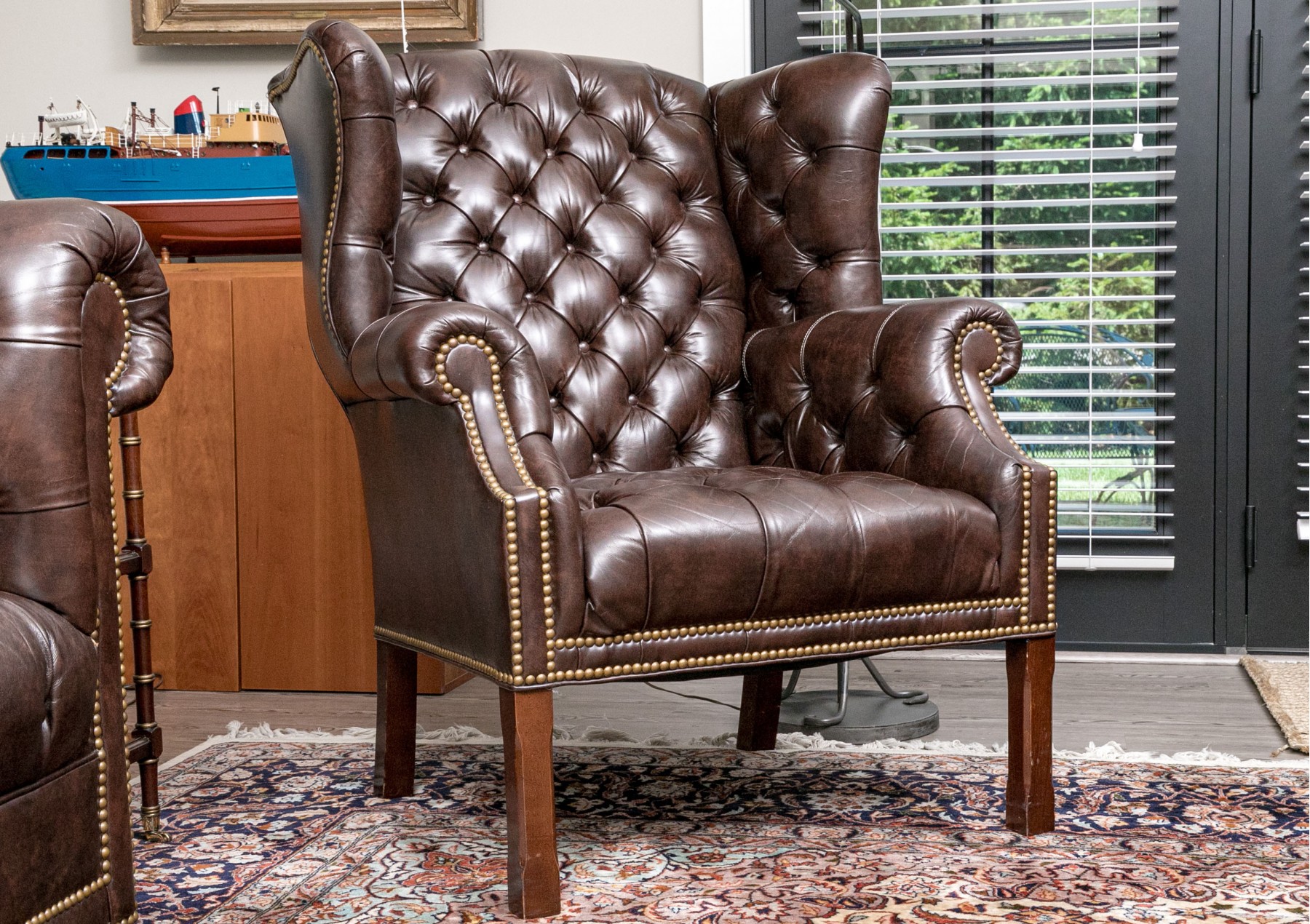 A Possibly "Leathercraft" Wing Back Chair #263535. Black Rock Galleries provides high end estate liquidation services through online estate auctions and a 50,000 sq ft designer showroom. estate liquidator, estate sale, online auction, antiques, fine art, liquidation, clean outs, auction, consignment, interior design, fine jewelry, collectibles, appraisals, estate appraisals, estate services, decor, furniture, furniture consignment, antique center, consignment shop. We offer appraisal services and specialize in fine art, jewelry, antiques and decorative arts. Sell with us. Black Rock Galleries is the tri-state's largest estate liquidator serving New England and the greater New York City area. We are the trusted source for expert appraisals, auction services, estate sales, and consignments. Black Rock Galleries is the east coast's largest and most trusted estate liquidator, with locations in Connecticut, greater Boston, MA and Raleigh, NC, Fairfield, Southport, Apex, TX. We are the best source for expert appraisals, auction services, estate sales and consignments. We have served thousands of families and estates with compassion, professionalism and expertise. BRG works with attorneys, executors, realtors and families to bring the greatest return on personal and estate property in the current market. Our unique combination of services make us the easy choice to get the job done in a timely and stress-free manner. We are with you from the initial consultation to the final clean out. Our house-built online auction software platform offers clients a dynamic approach to liquidating their personal property. This venue is most successful in bringing the best return with the least amount of disruption for our clients. See our services page for a complete description of this offering. A Possibly "Leathercraft" Wing Back Chair #263535