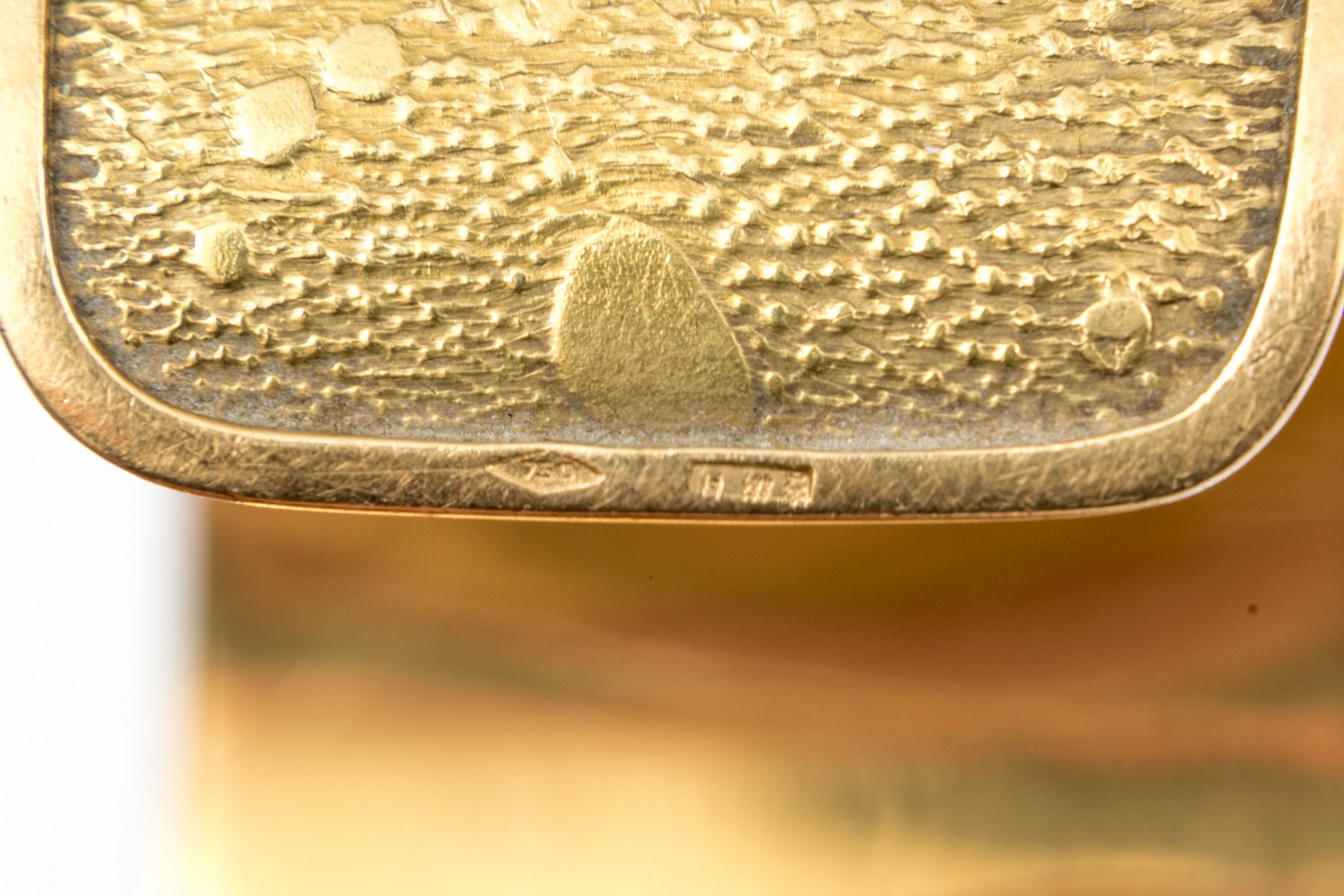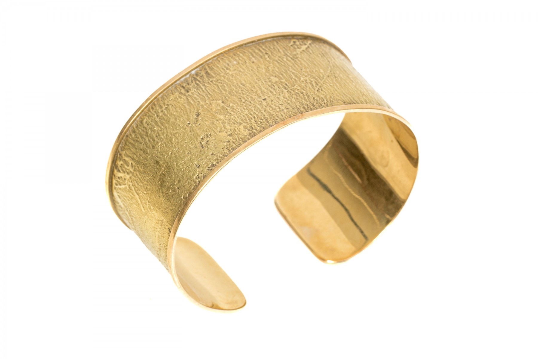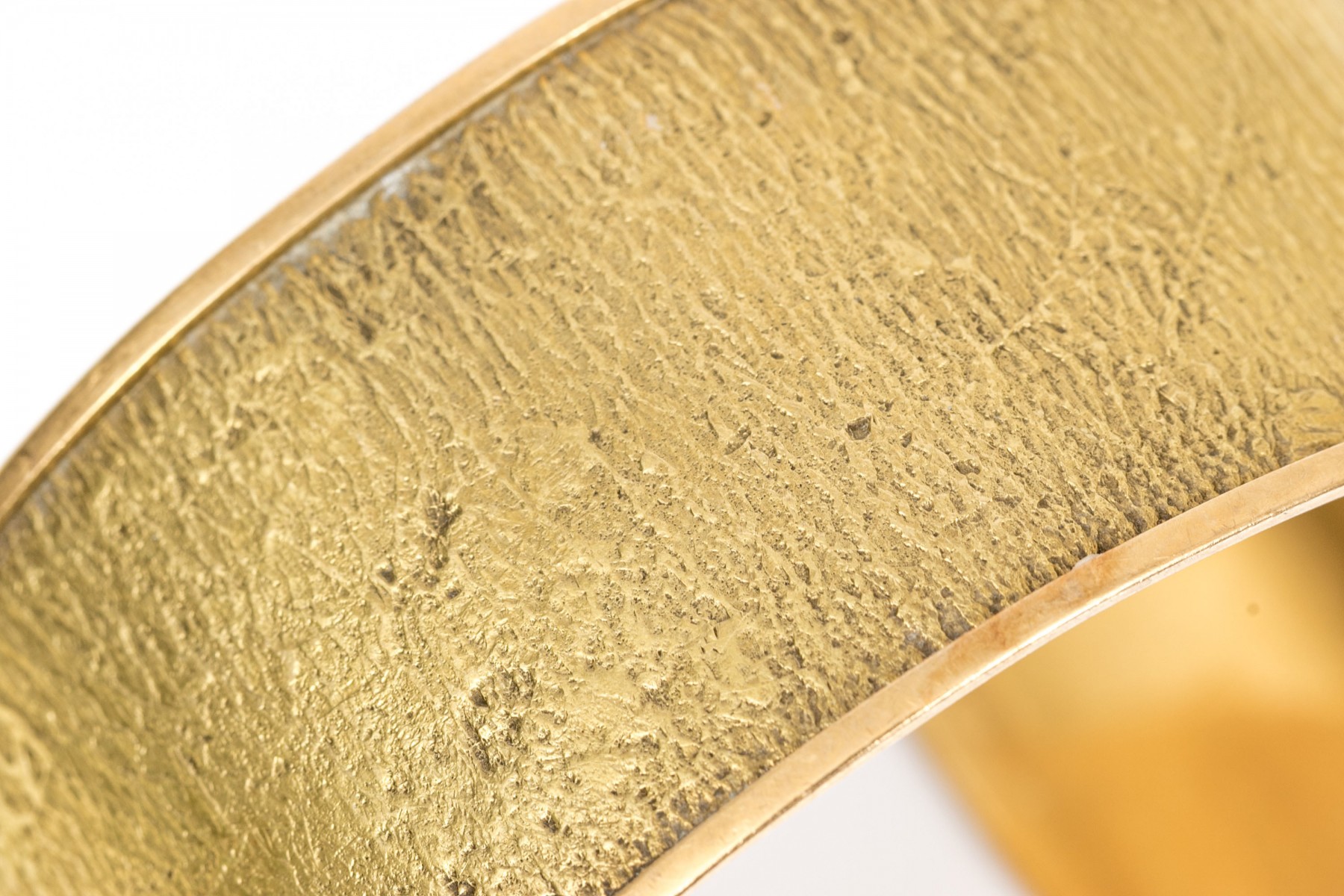 18K yellow gold wide cuff style bracelet with a textured finish.