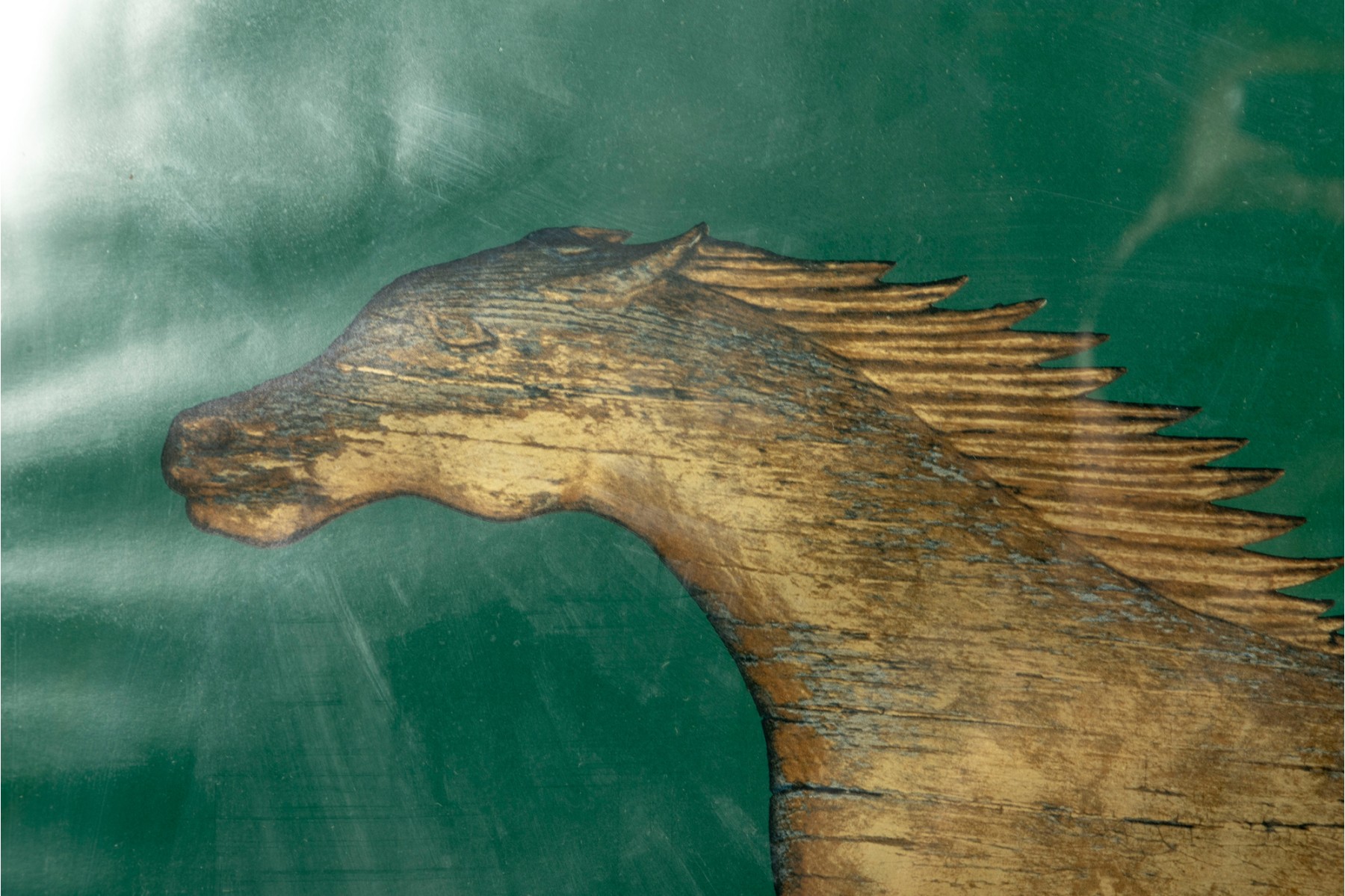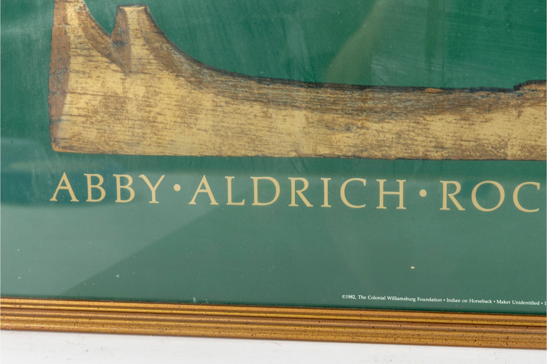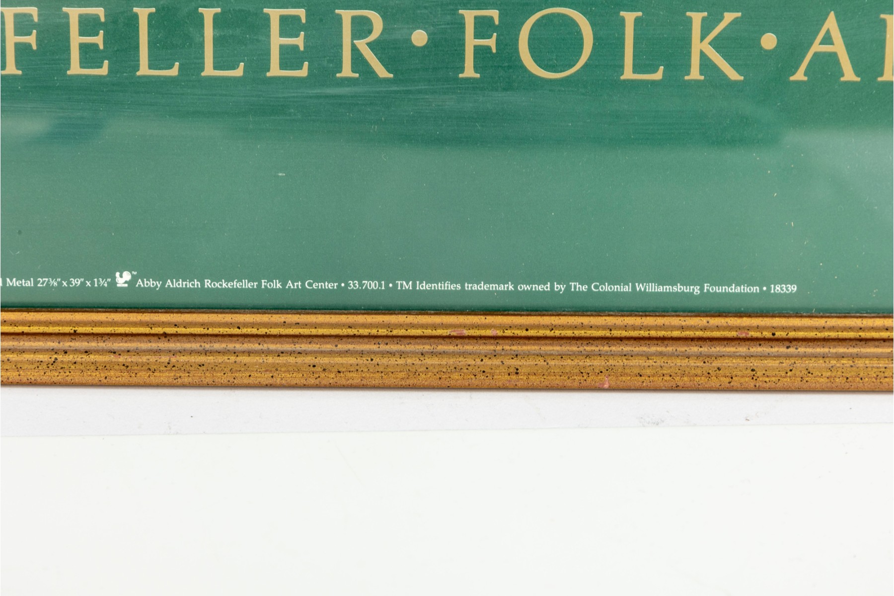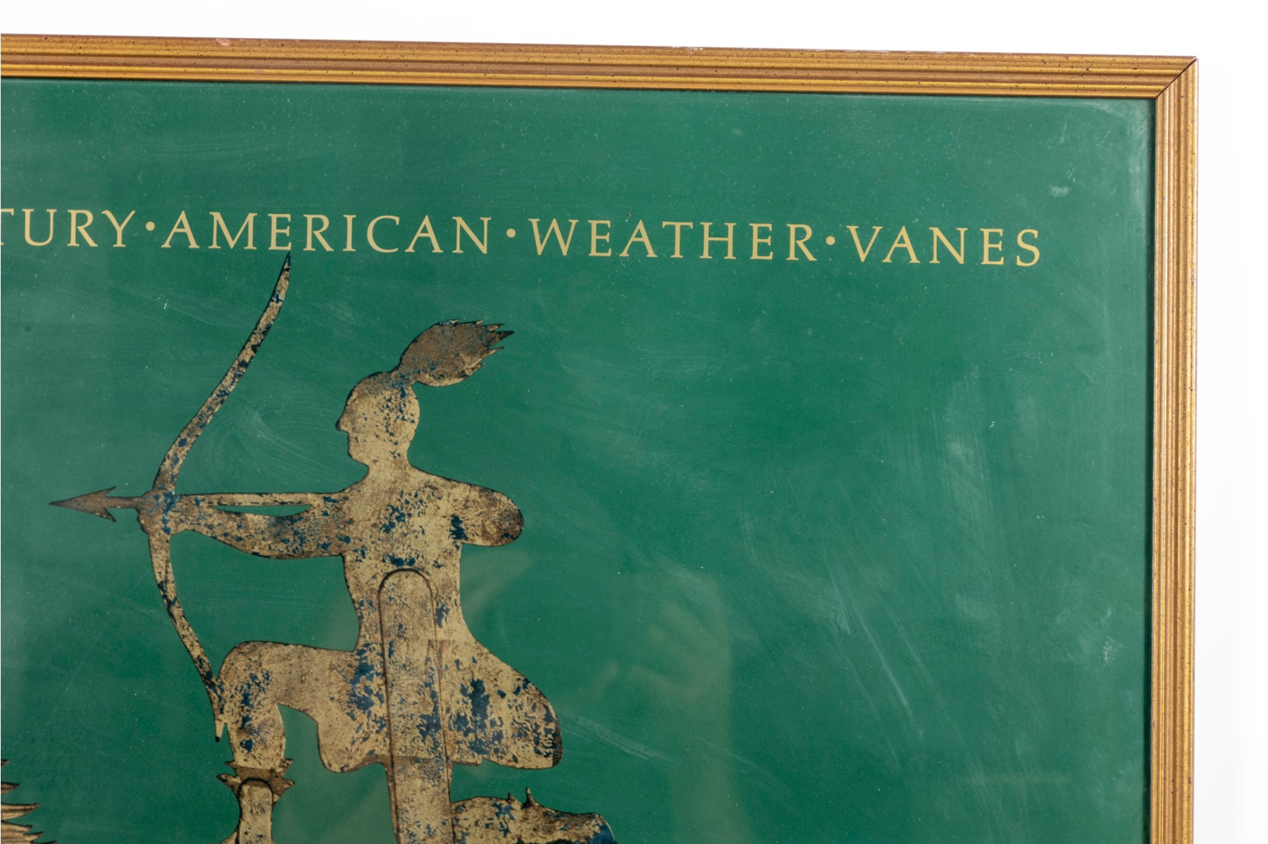 The Abby Aldrich Rockefeller Folk Art Museum is in Colonial Williamsburg, Virginia. This official poster is meant to advertise an exhibit for 19th century weather vanes -- presented in a gold-tone wood frame, and faced with glass.