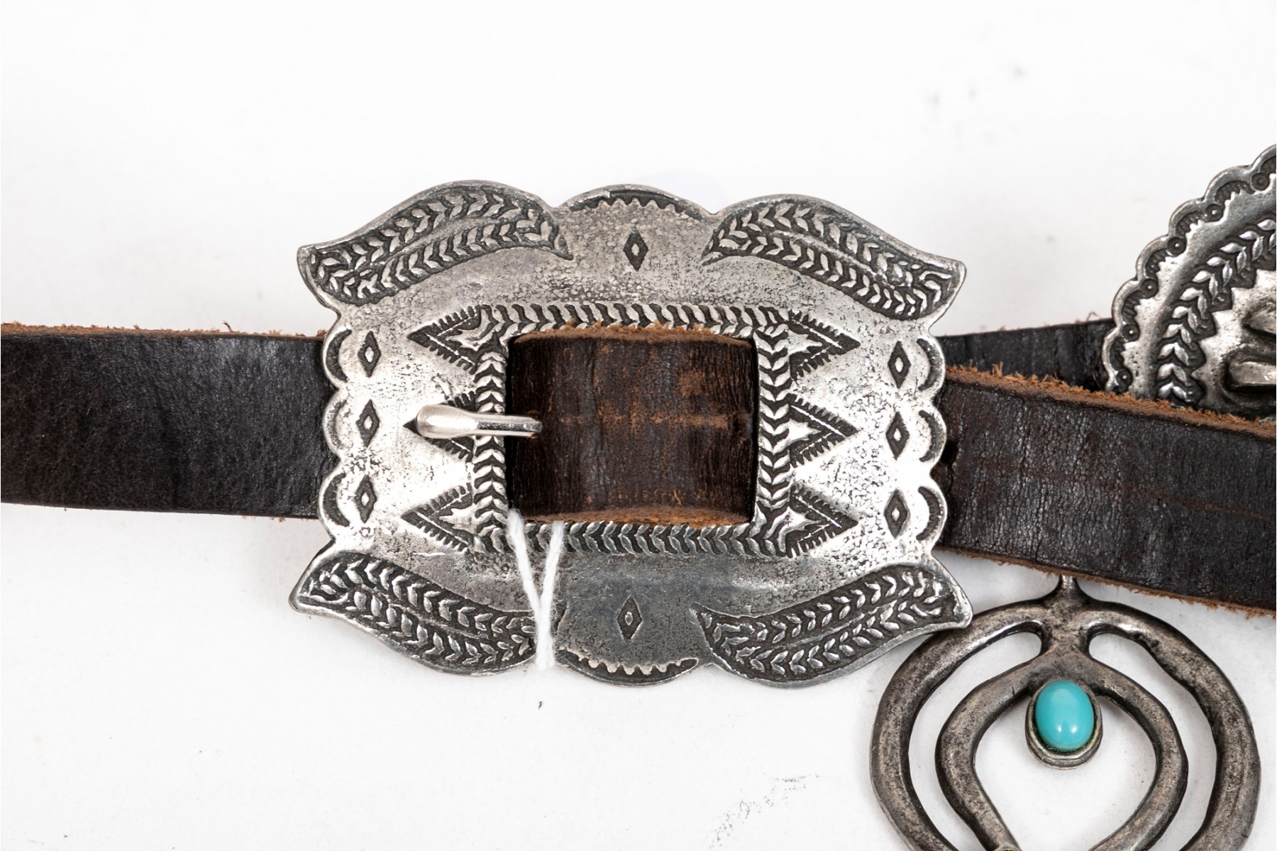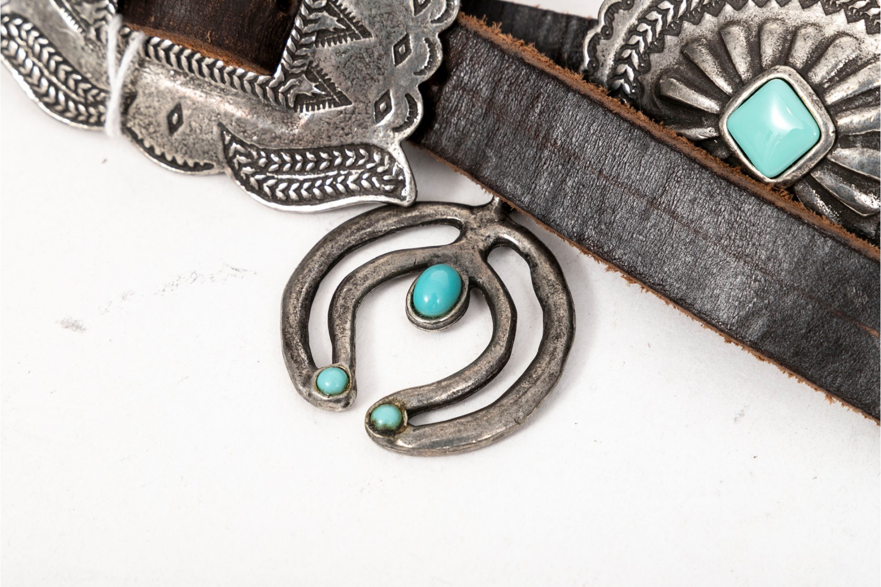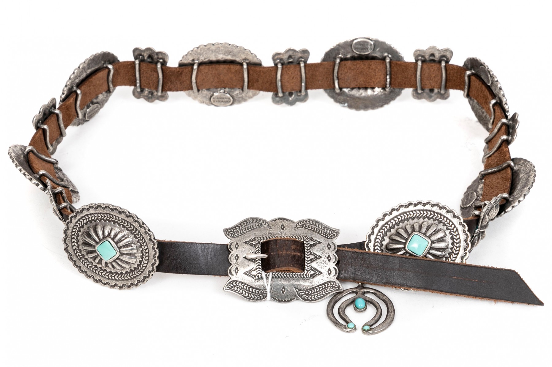 A striking southwestern inspired leather belt. Set into the belt are dyed howlite stones.. buckle clasp.