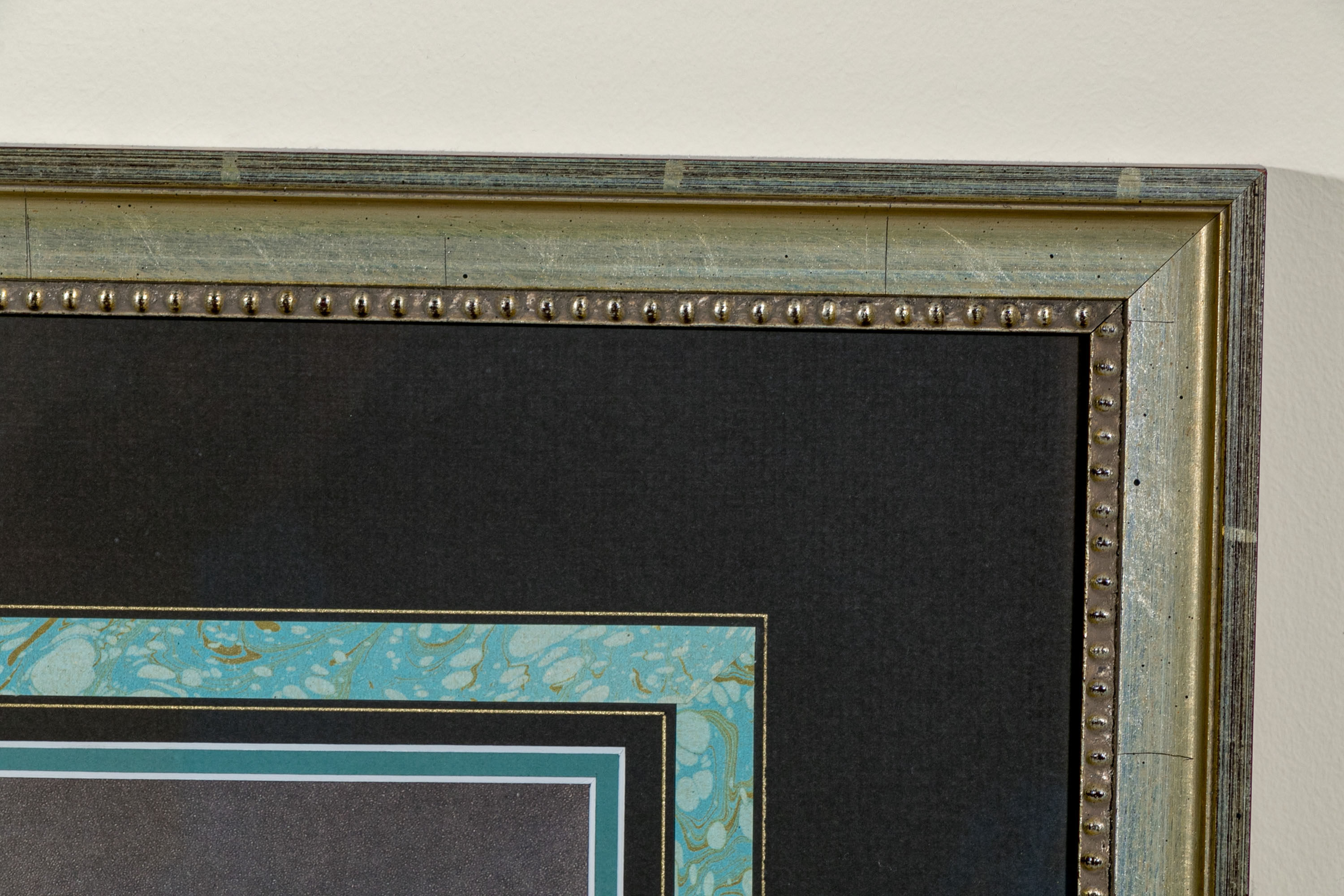 Both handsomely displayed with wonderfully marbled mats in beaded and gilt finished J. Pocker frames.