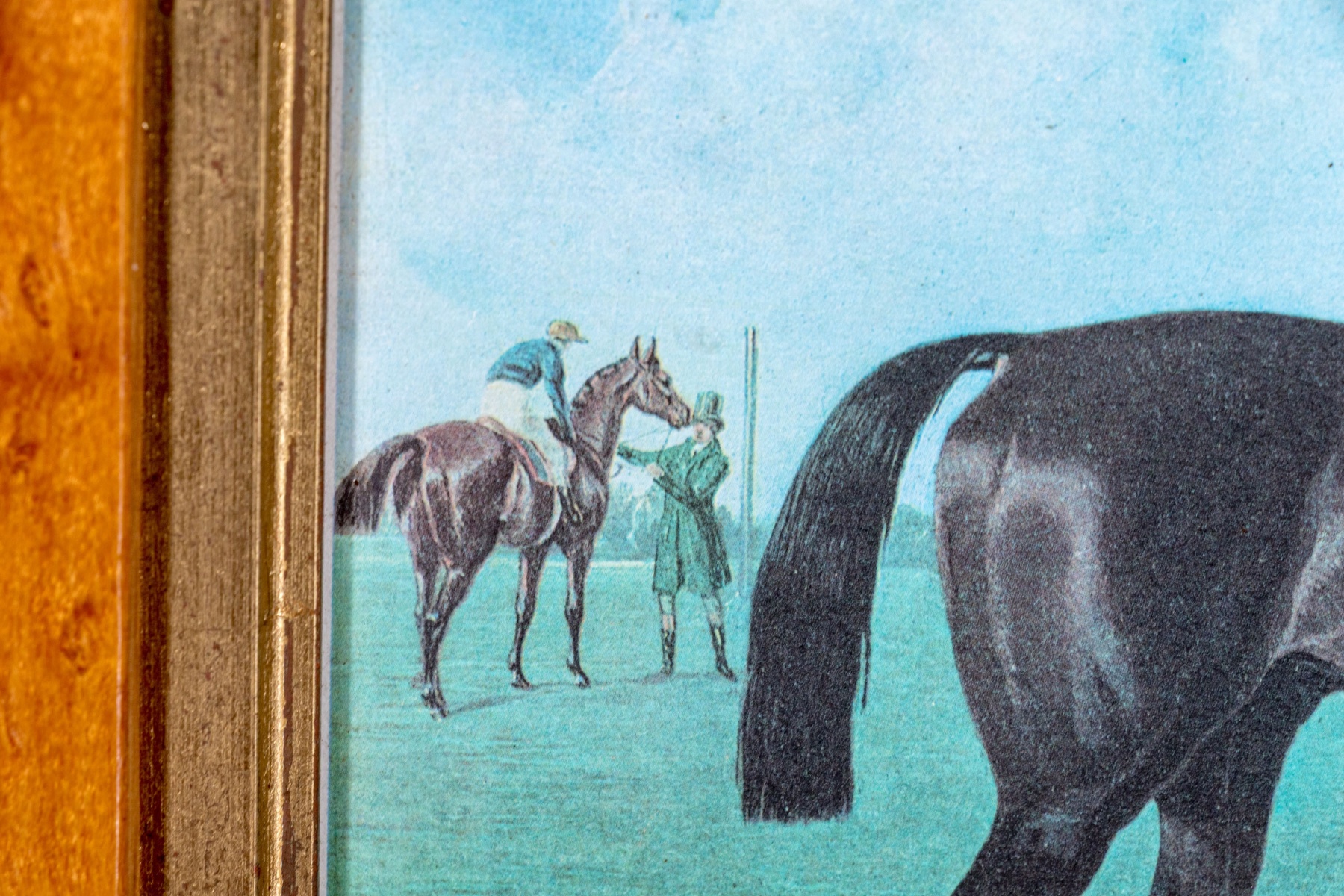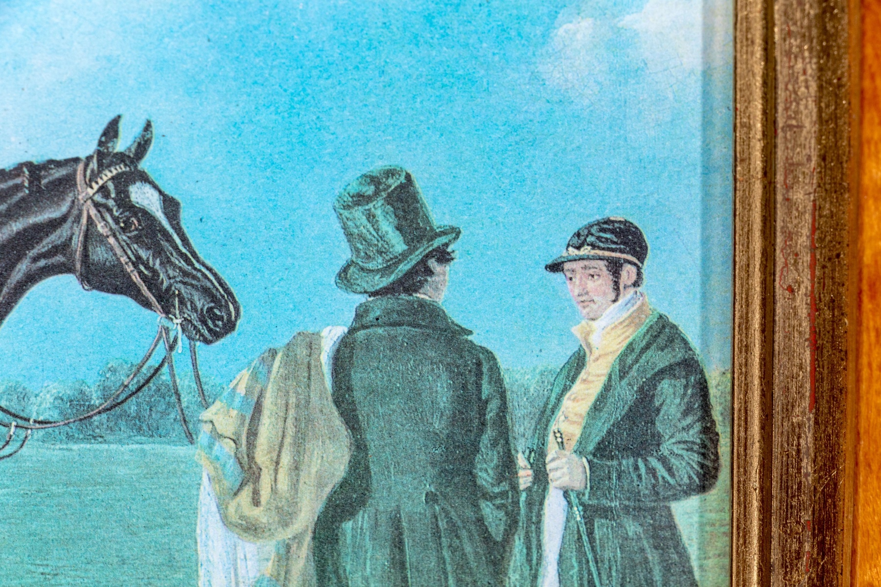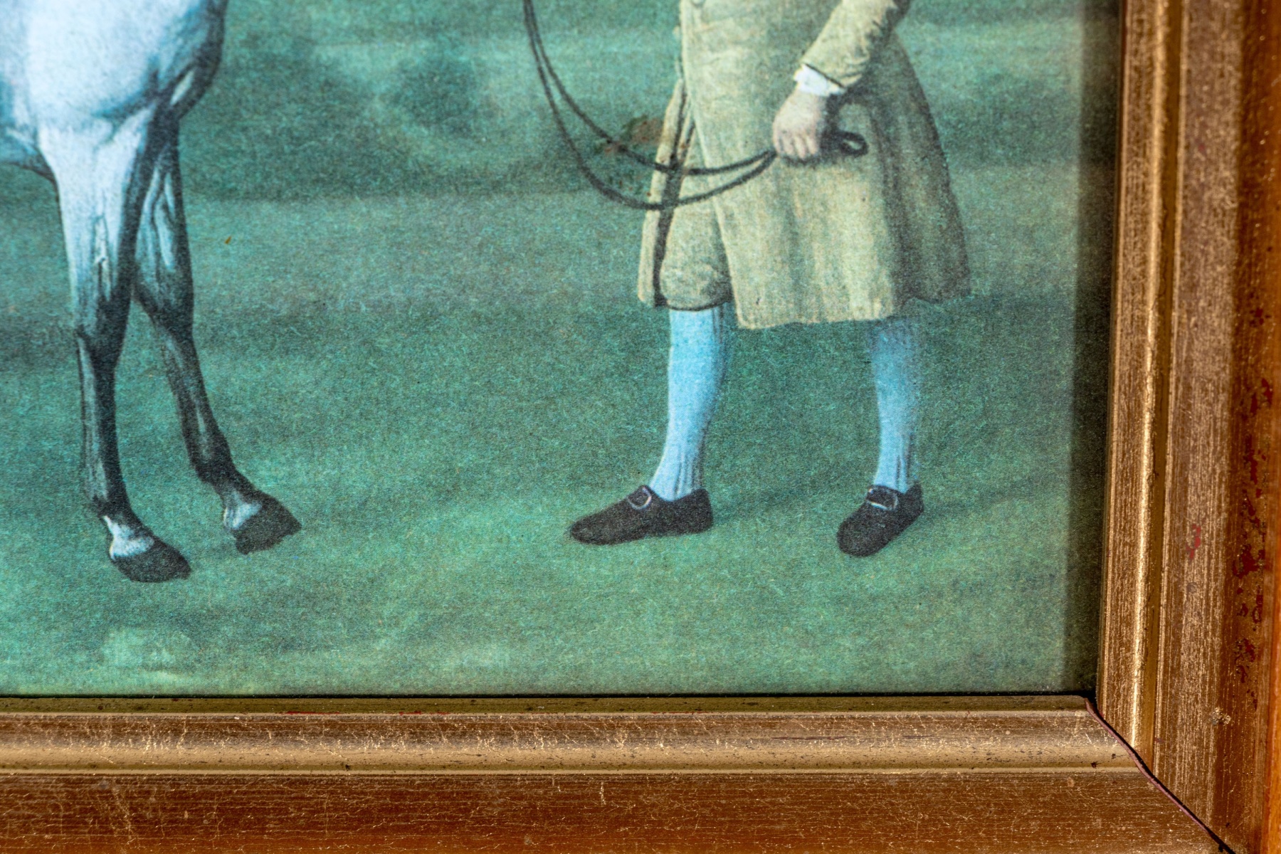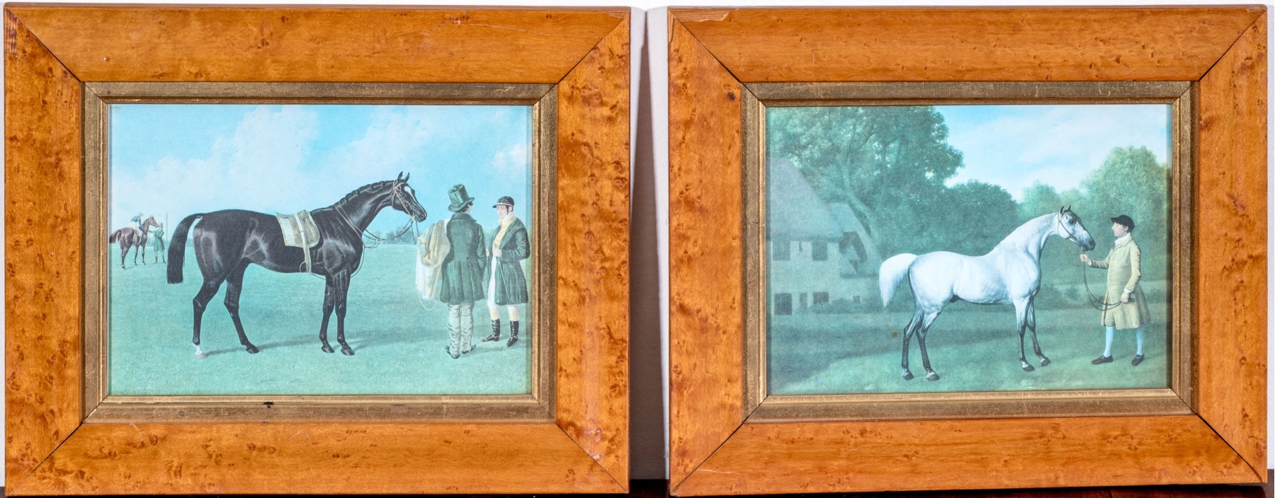 After John Frederick Herring Sr. (English, 1795-1865) "Touchstone" and after George Townley Stubbs (British, 1756-1815) "Gimcrack" prints depicting the titled horses rendered in impressive detail. Touchstone the black horse stands with well manicured hair and tail looking over at two men while another horse rides in the distance. Gimcrack the white horse is led by a man across a yard in front of a house.