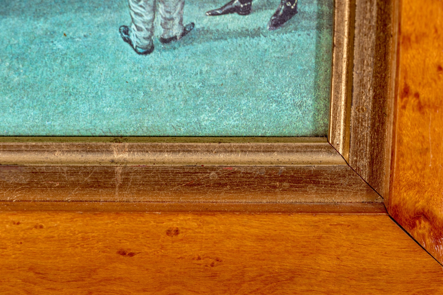 Both displayed with gilt liners in nicely veneered orange-brown wood frames.