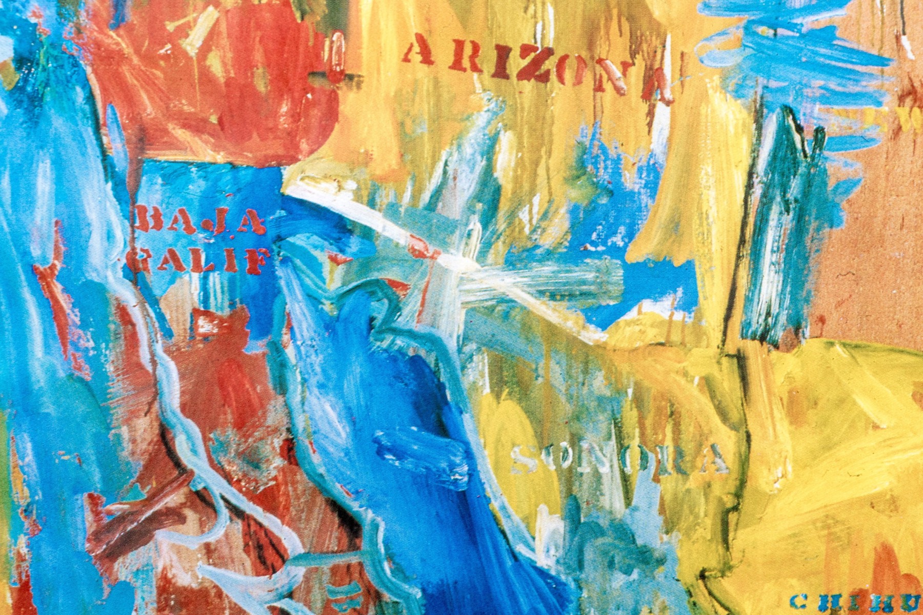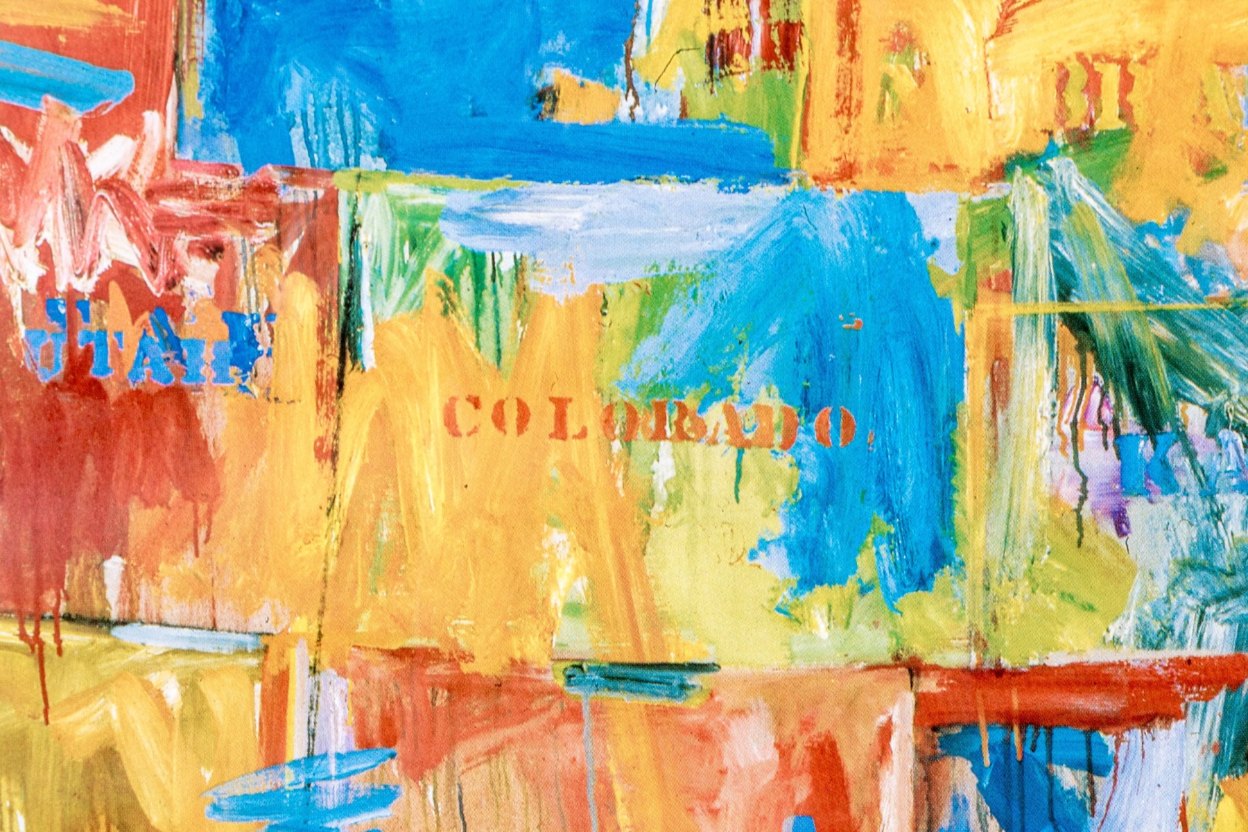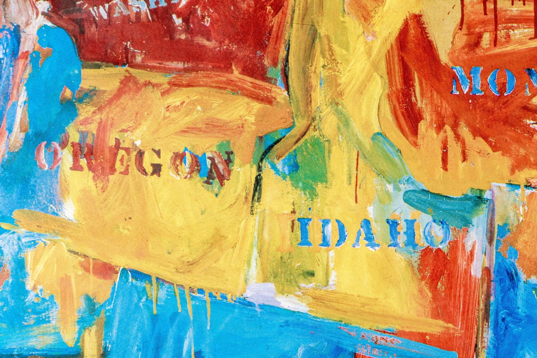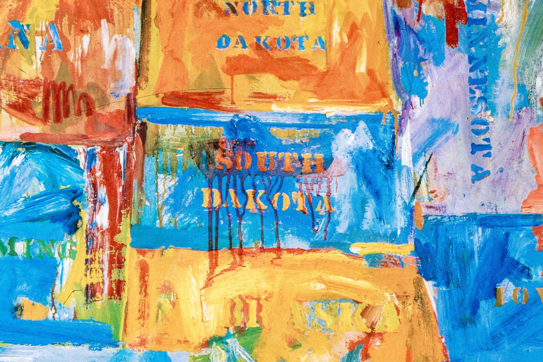 The color print after the artist's 1961 oil on canvas in the Museum of Modern Art New York. Titled "Map", it is an abstract cartographic image of the US. Presented in a silver tone metal frame with glass.
