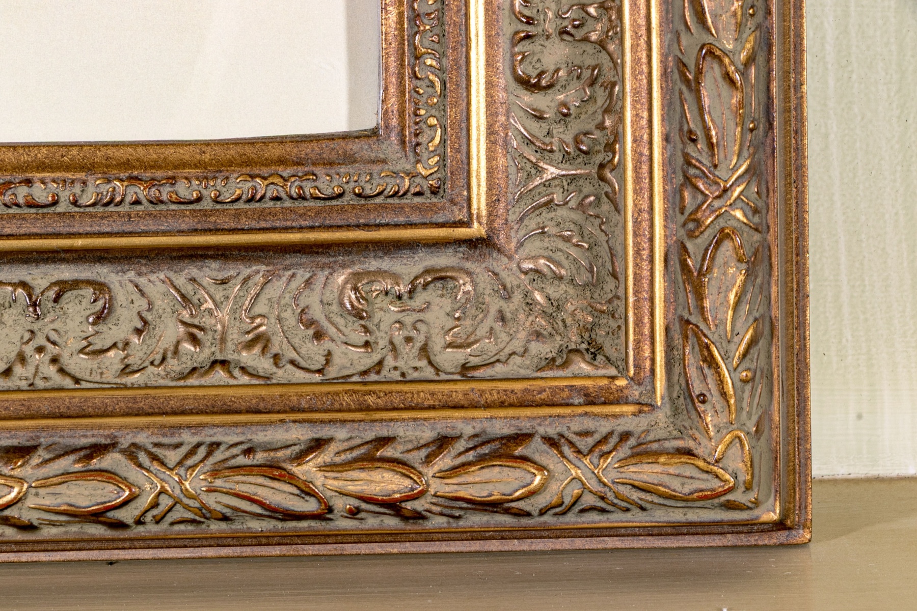 Displayed glazed in an antiqued gilt frame with foliate relief.