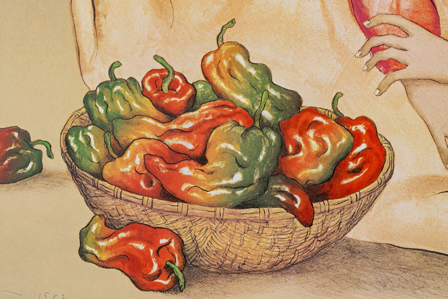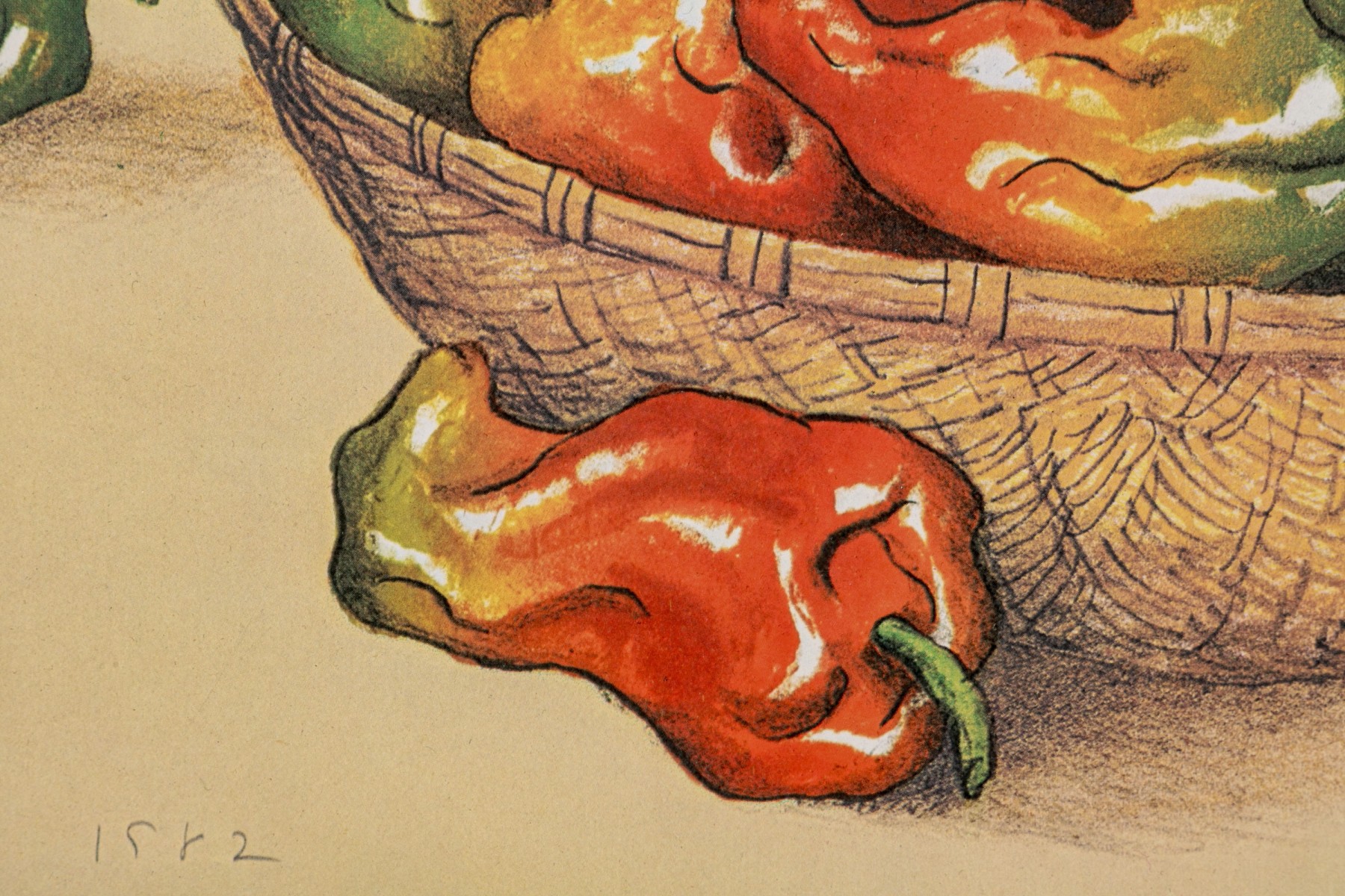 Pencil signed lower right. Signed and dated 1982 in plate lower left. Published by Houston Fine Art Press. One of the artist's classic images of American Indian women. Unframed, mounted on cardboard.