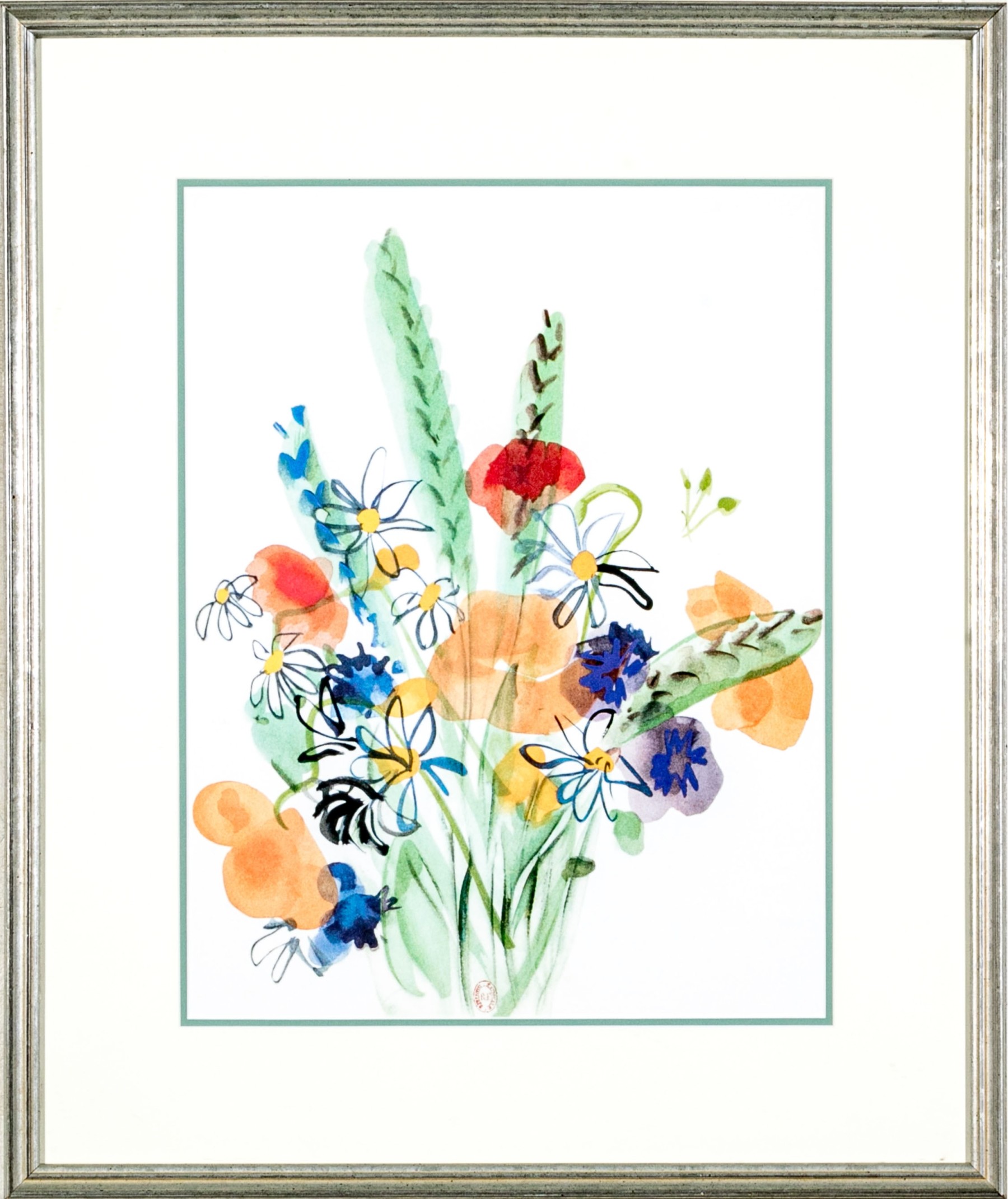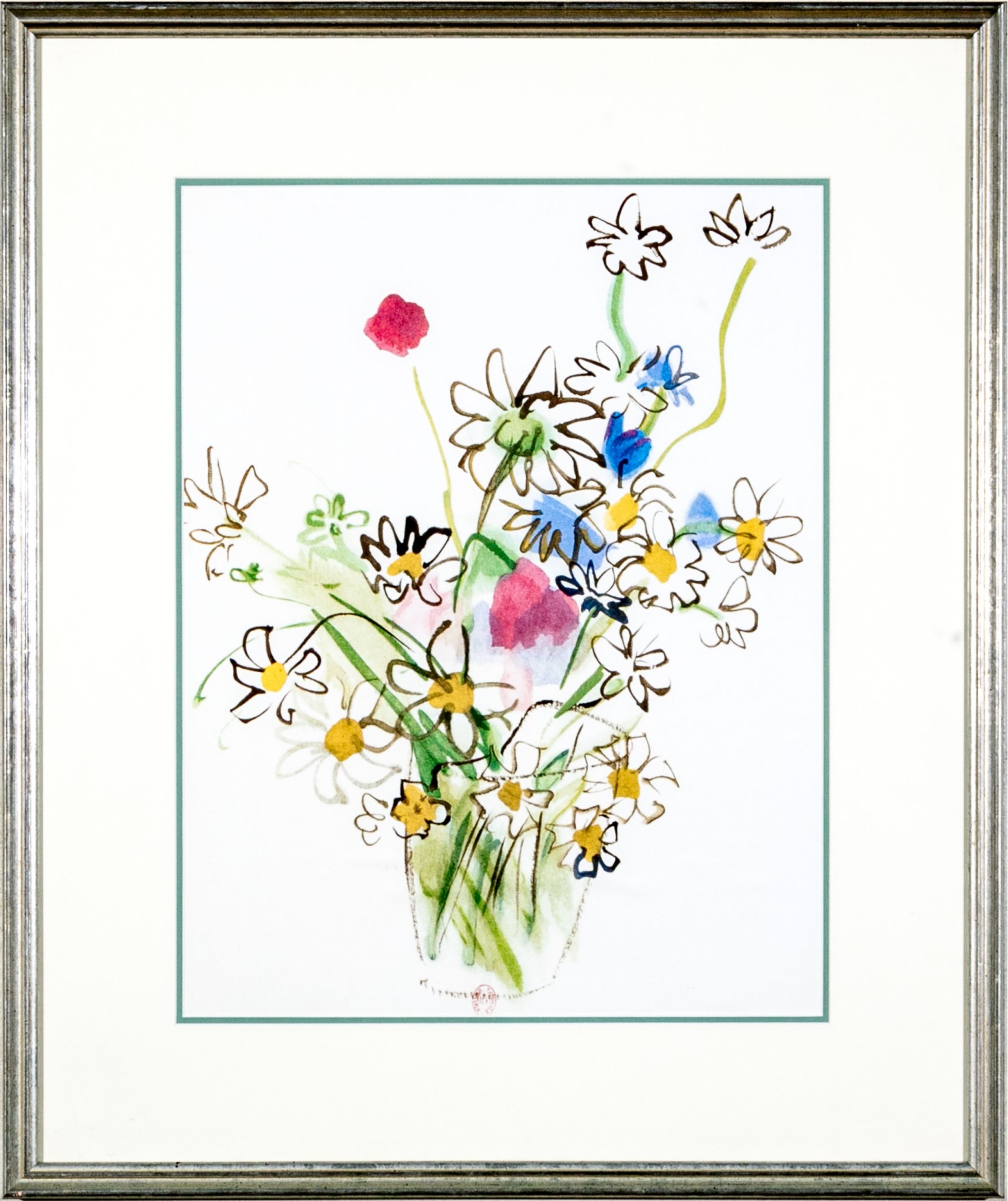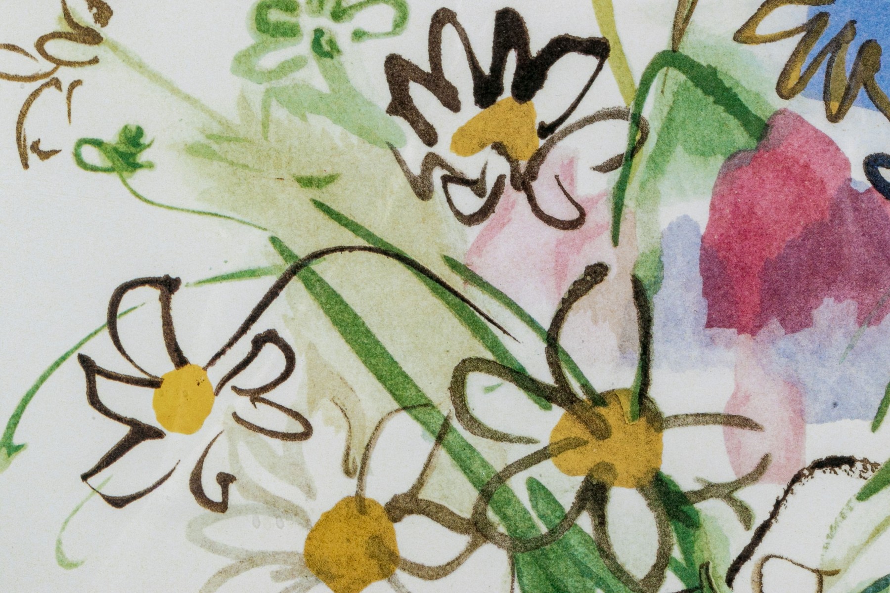 After Raoul Dufy (French, 1877-1953) "Bunch of daisies, Pour un Herbier, Colette" and "Bouquet, Pour un Herbier, Colette" prints produced by Bibliotheque Nationale depicting watercolor style bouquets of flowers rendered in vibrant color with gestural brushstrokes for a charming, easy aesthetic. Both stamped lower center.