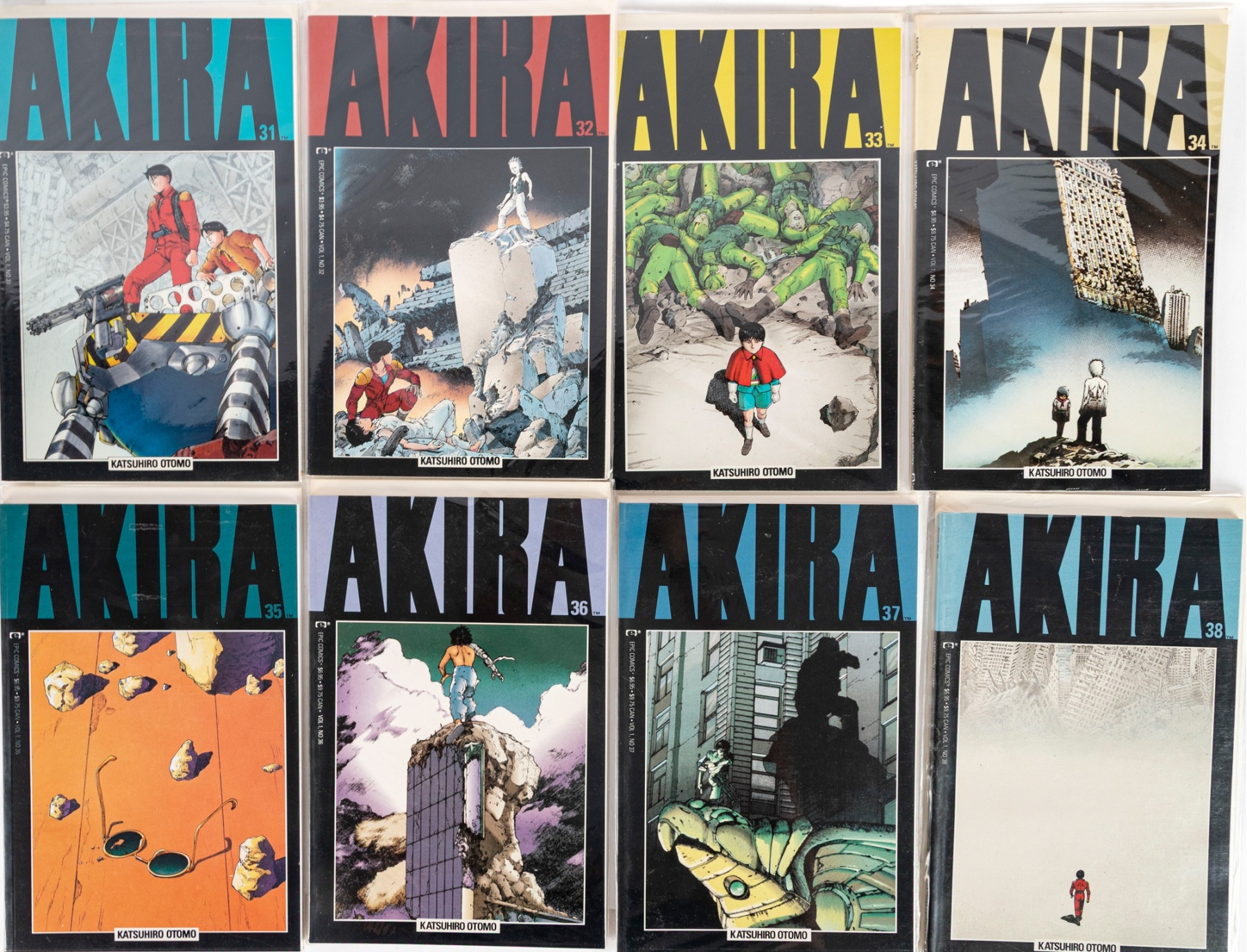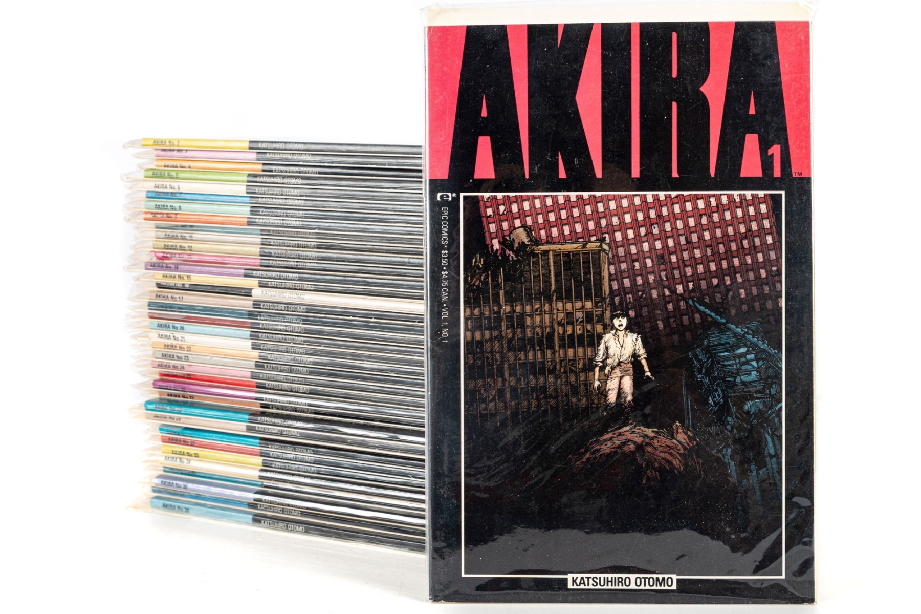 Complete English-language comic book run of Akira issues #1 through #38, written and illustrated by Katsuhiro Otomo, published by Epic Comics (Marvel) between 1988 and 1995. This groundbreaking series introduced Western readers to Otomo’s iconic cyberpunk masterpiece that inspired the landmark 1988 animated film.