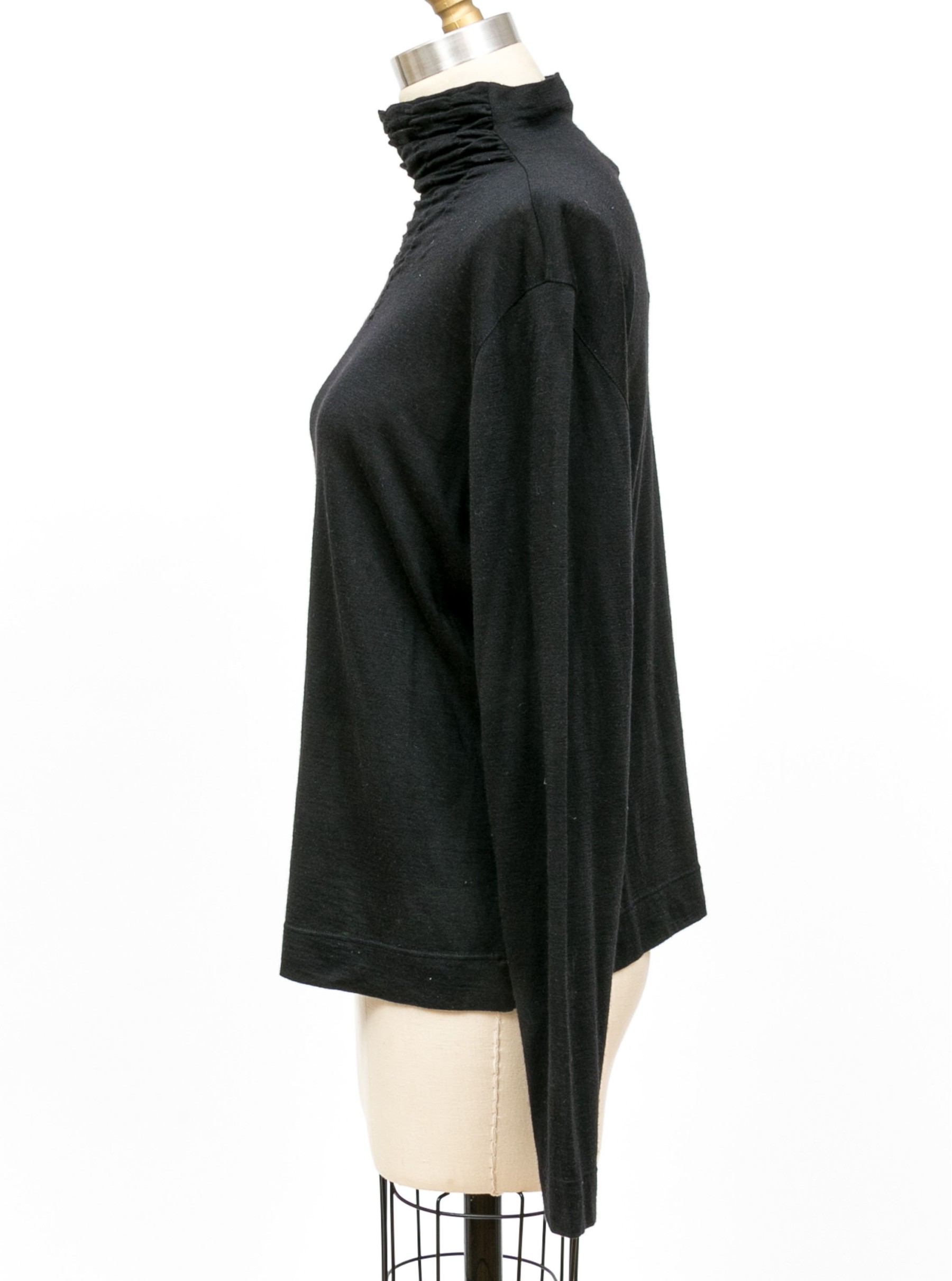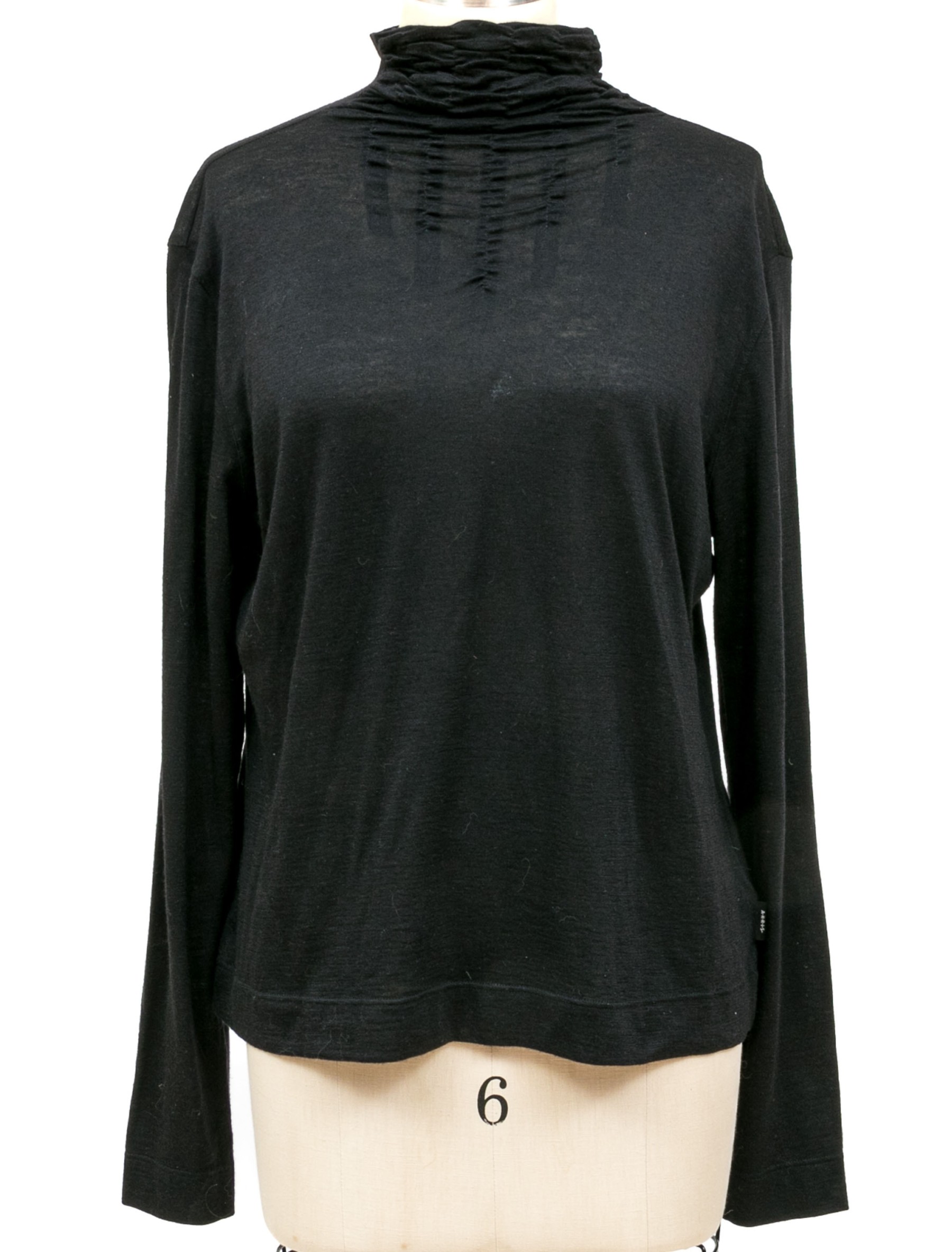 Black Akris cashmere long sleeved shirt. Tags indicate original retail price was $880.00.