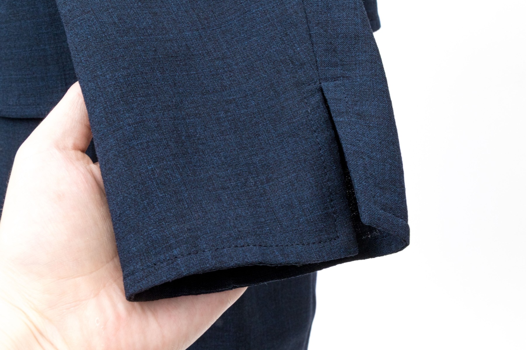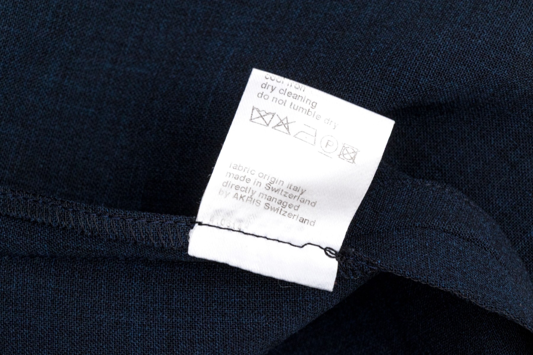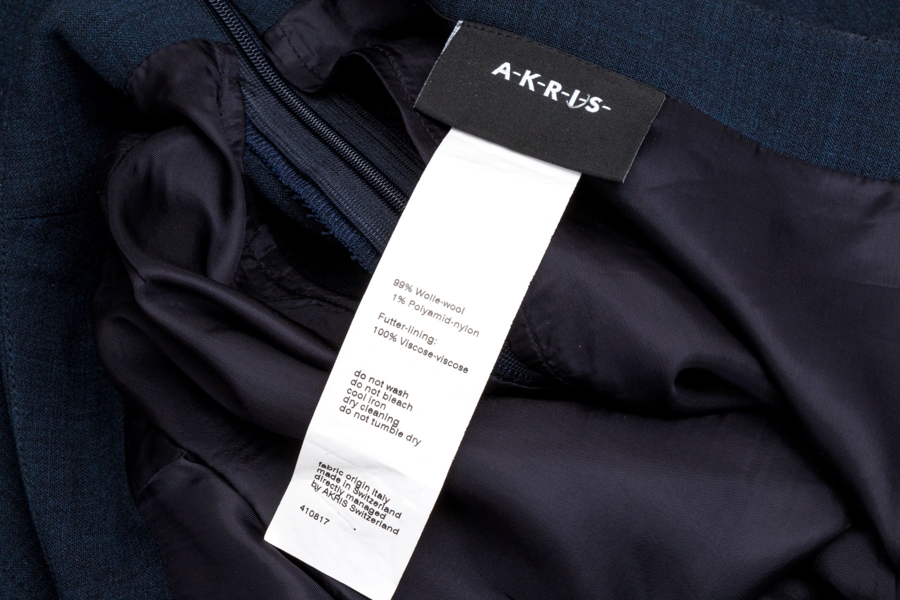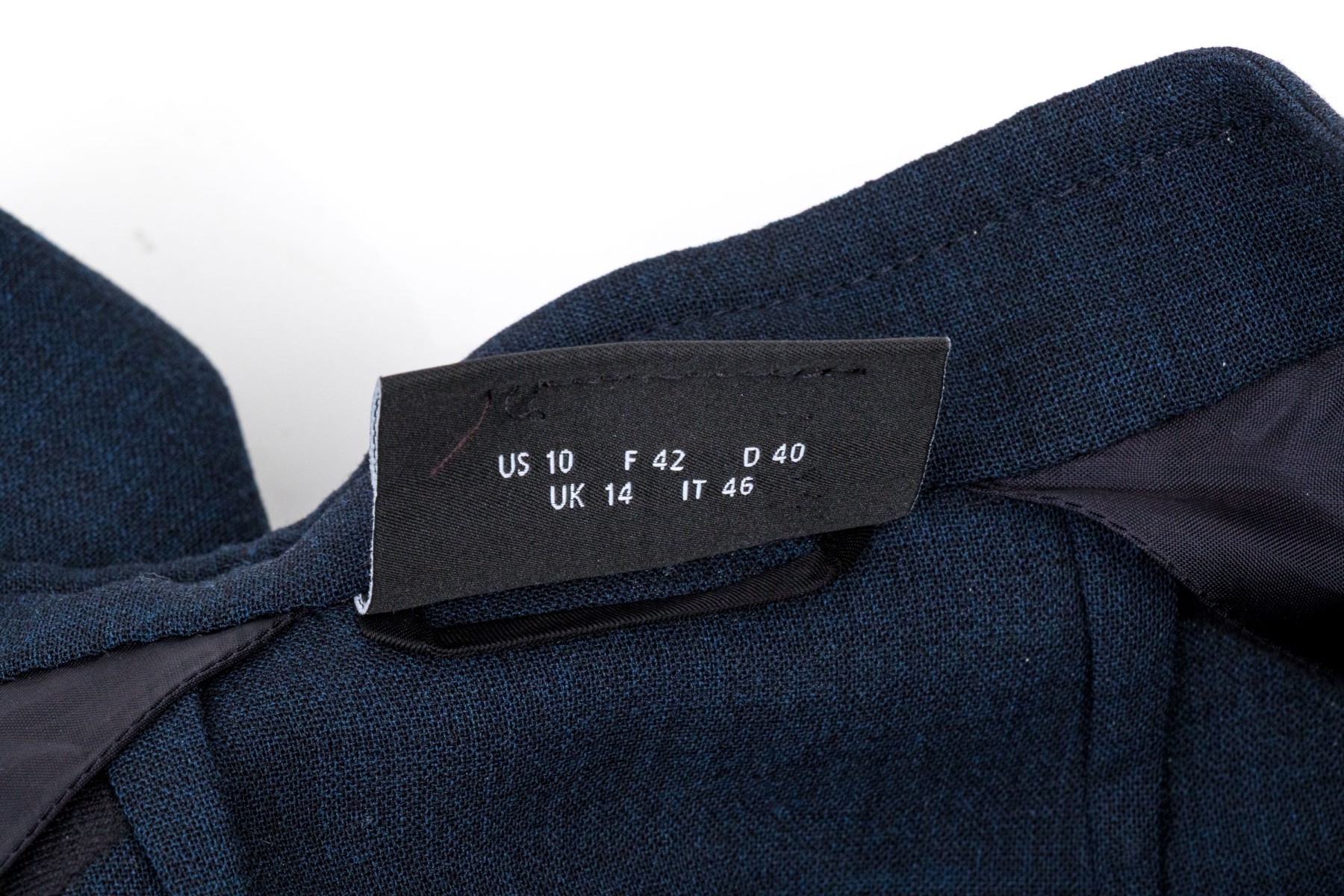 Akris blackish blue wool mandarin collared skirt suit, size 10