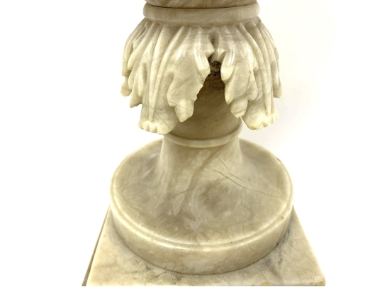 An Italian Renaissance-style alabaster ewer with lid, likely from the late 19th or early 20th century.