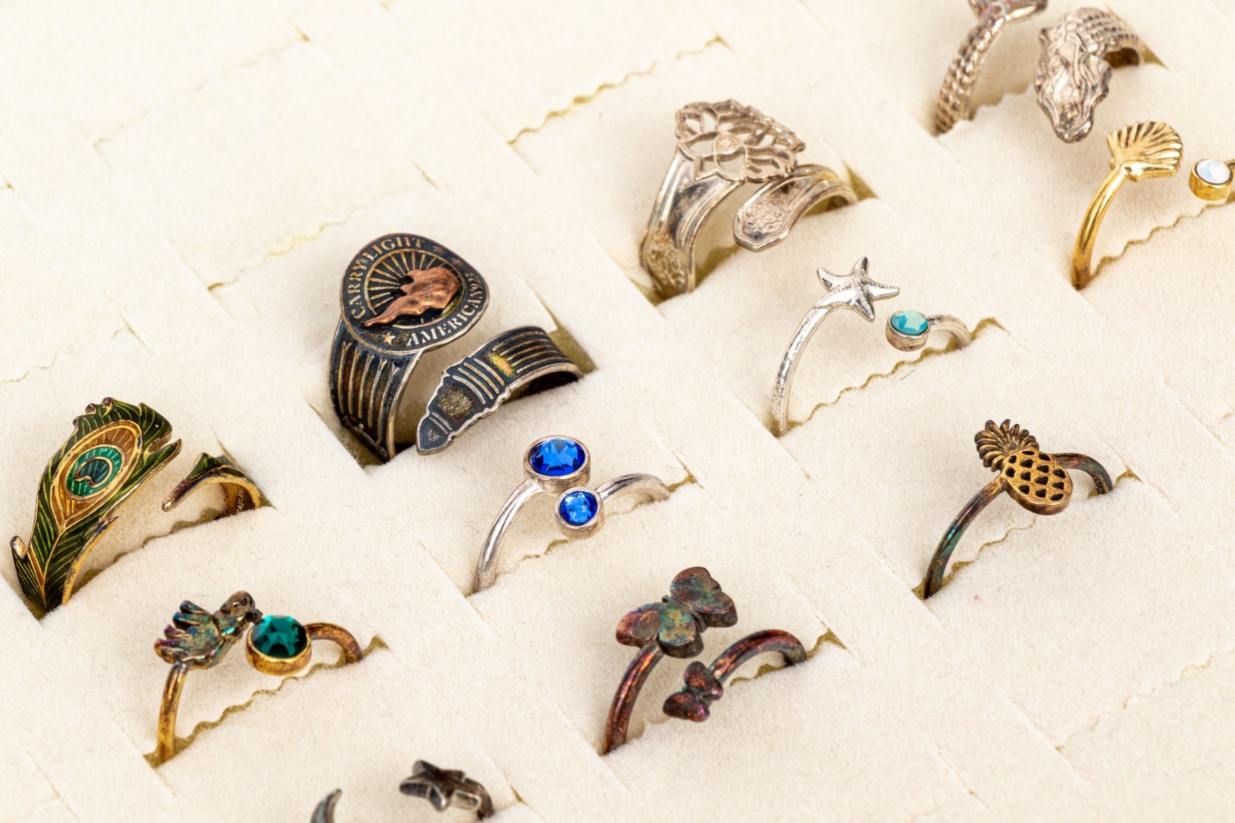 Condition: Ranging from tarnished and worn, to lightly wear. One ring also is copper accented