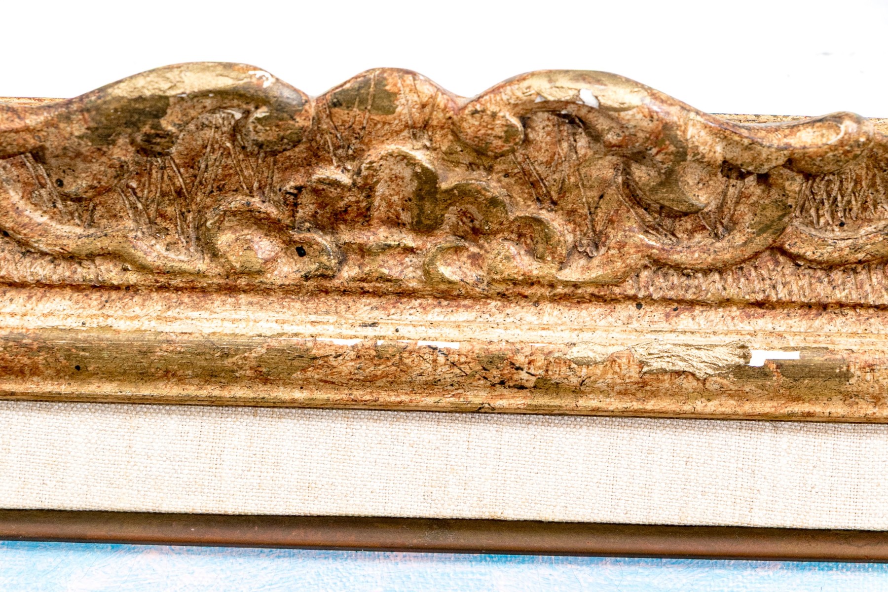 Good overall, the frame liner makes the signature not completely visible with gentle wear and spot staining to the filet with minor chips to the gesso and gilt finish on frame.