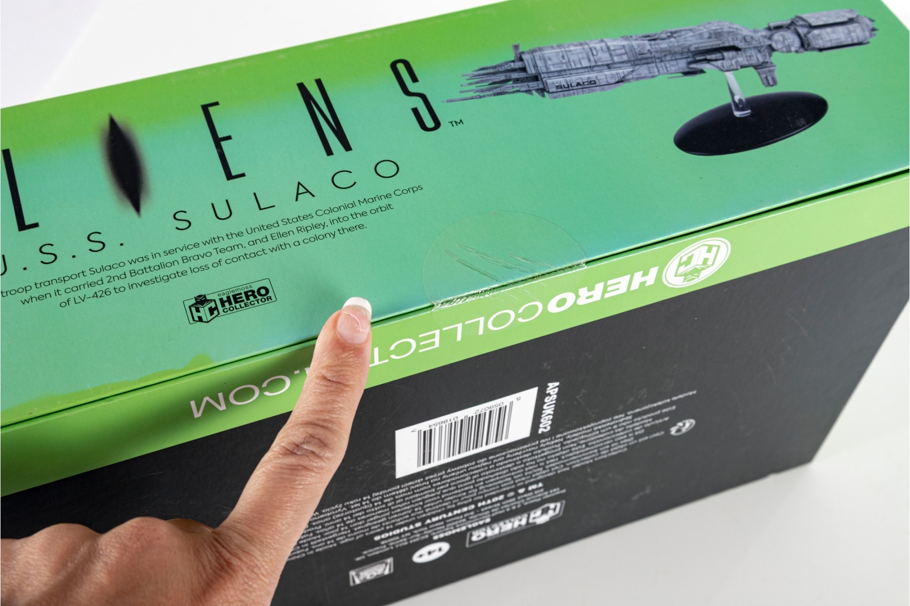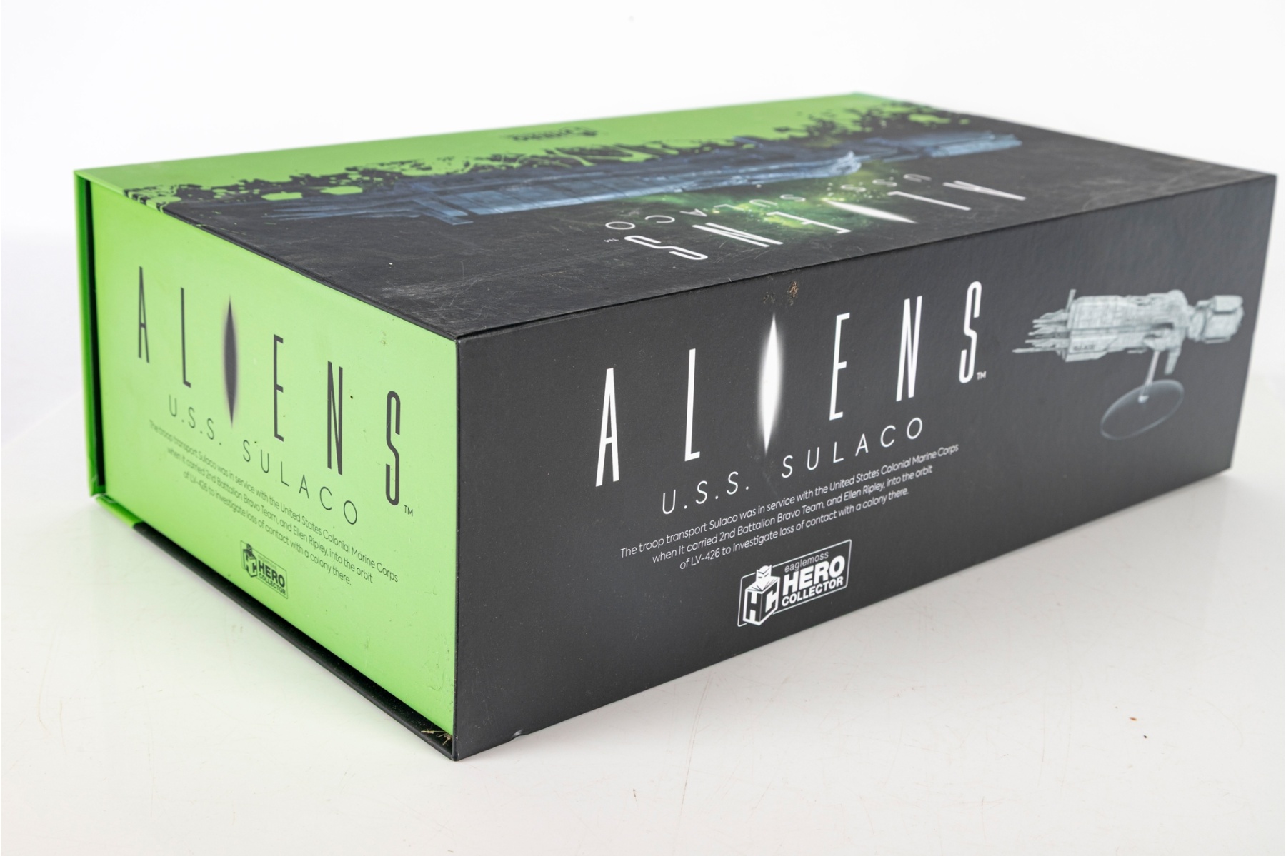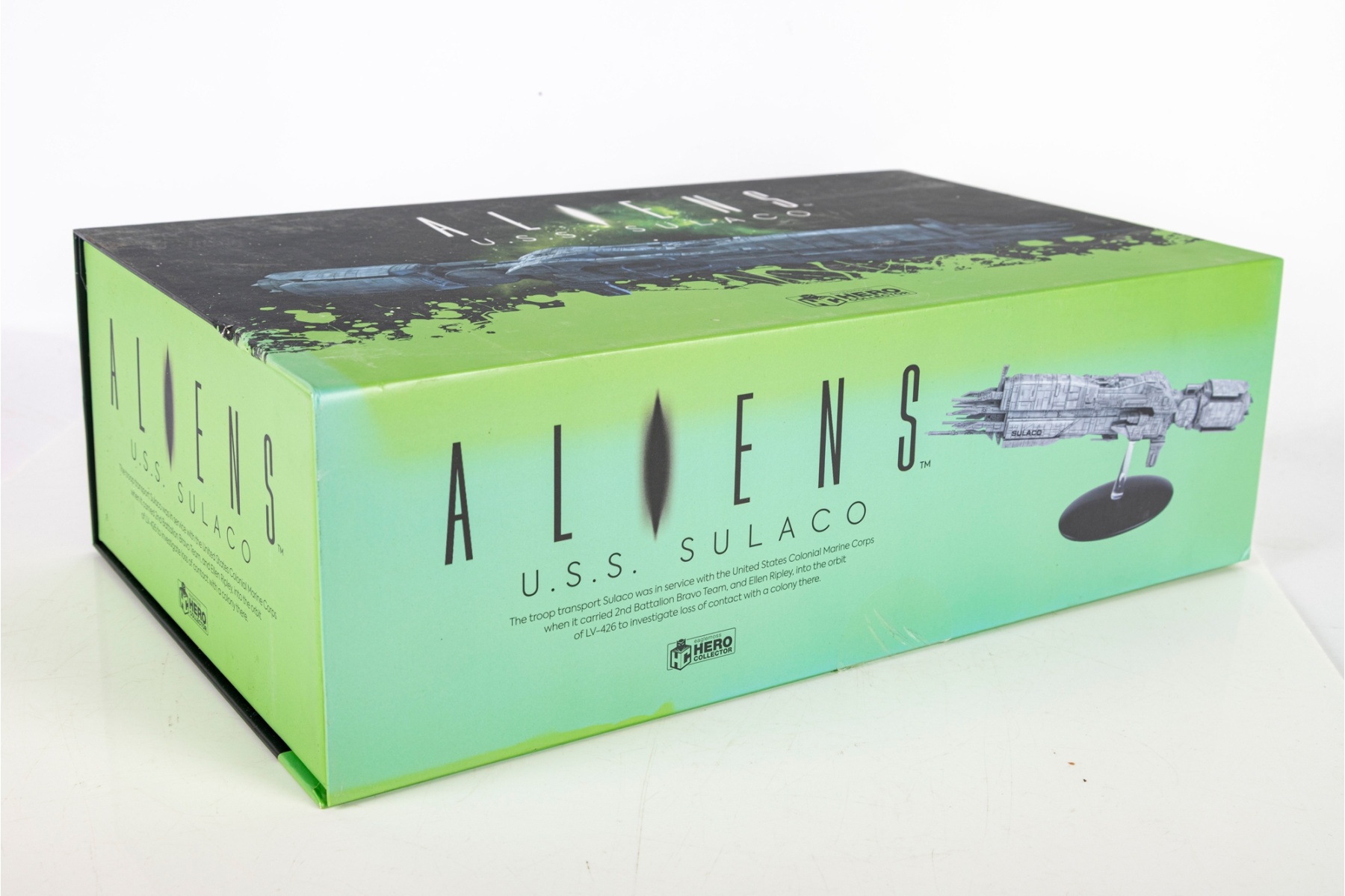 A highly detailed collectible model of the U.S.S. Sulaco, the iconic troop transport ship from James Cameron’s Aliens (1986). Produced by Eaglemoss Hero Collector, this officially licensed model authentically replicates the military spacecraft used by the United States Colonial Marine Corps, which transported Ellen Ripley and her team to LV-426.