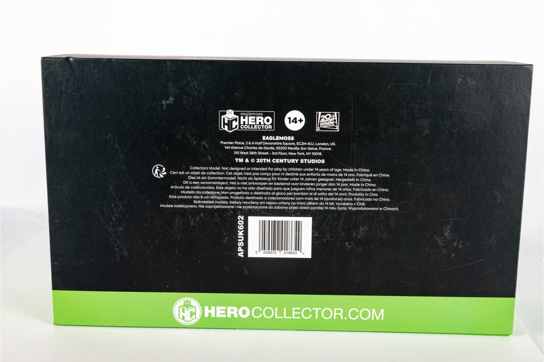 Model remains new and unused in original sealed packaging. The box shows moderate surface wear and scuffing from storage, including a small tear and creasing along the top edge near the seal (see photos). Factory seal tape remains intact.